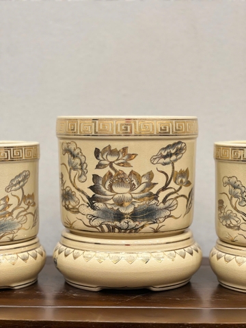 Bát Hương F24 Hoạ Tiết Hoa Sen Vẽ Vàng 24K