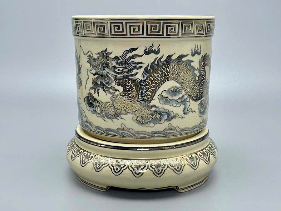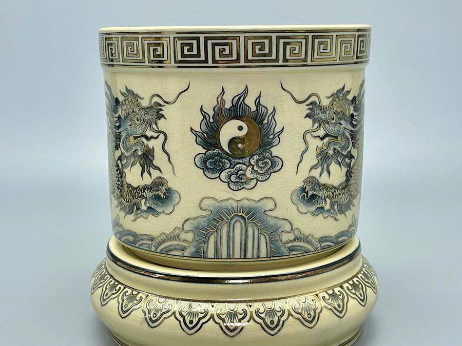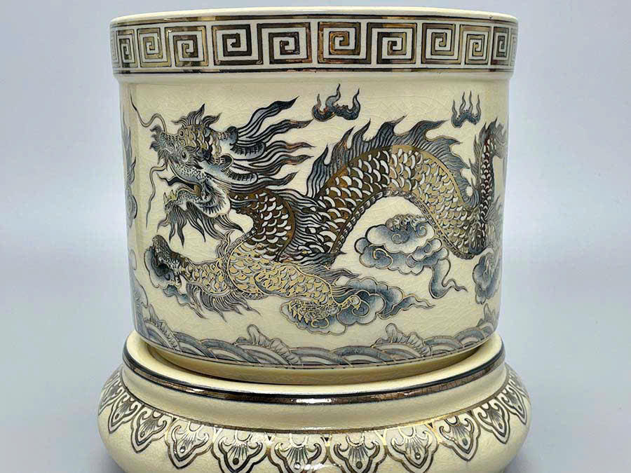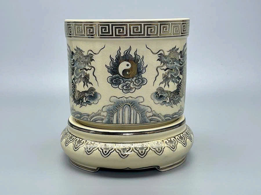 Bát Hương F24 Hoạ Tiết Rồng Vẽ Vàng 24K