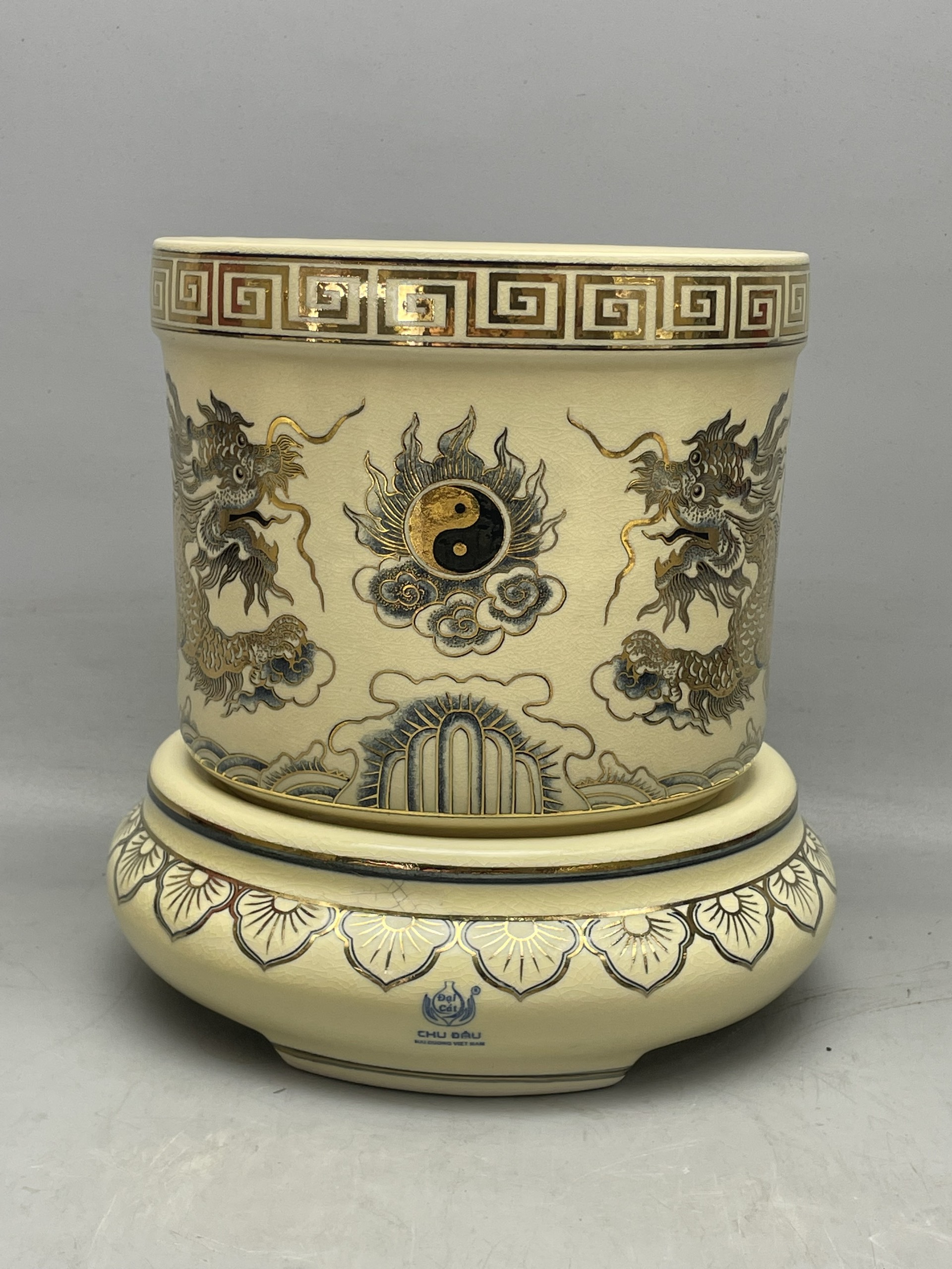 Bát Hương Họa Tiết Rồng F24 Vẽ Vàng 24K