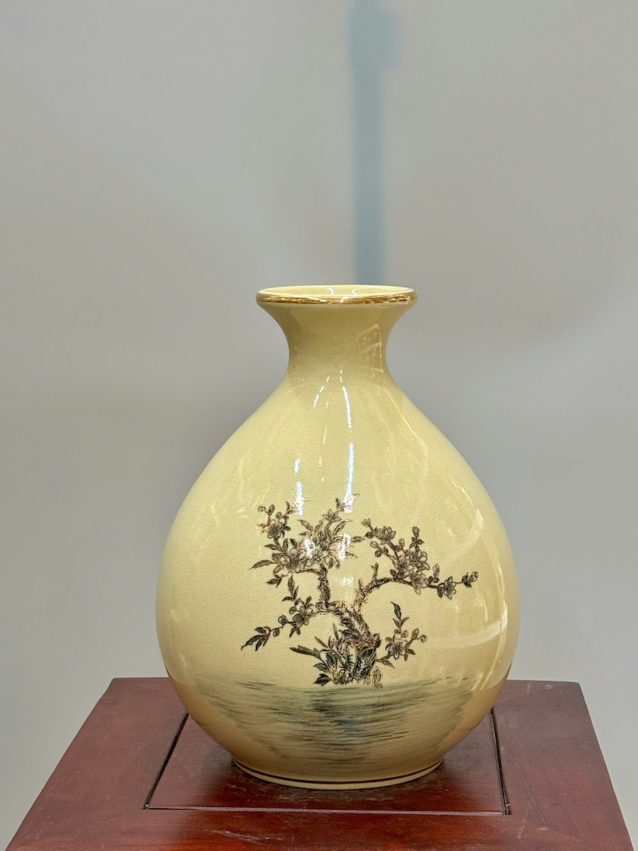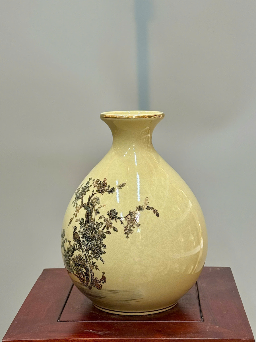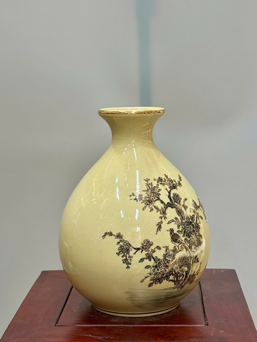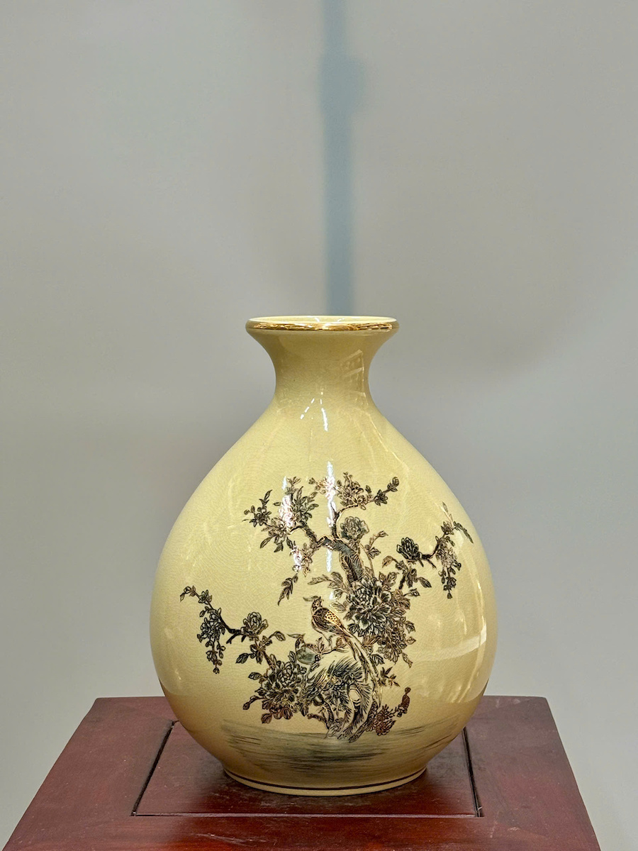 Bình Bảo Ngọc Chim Hoa Cúc Cao 28cm Gốm Vẽ Vàng
