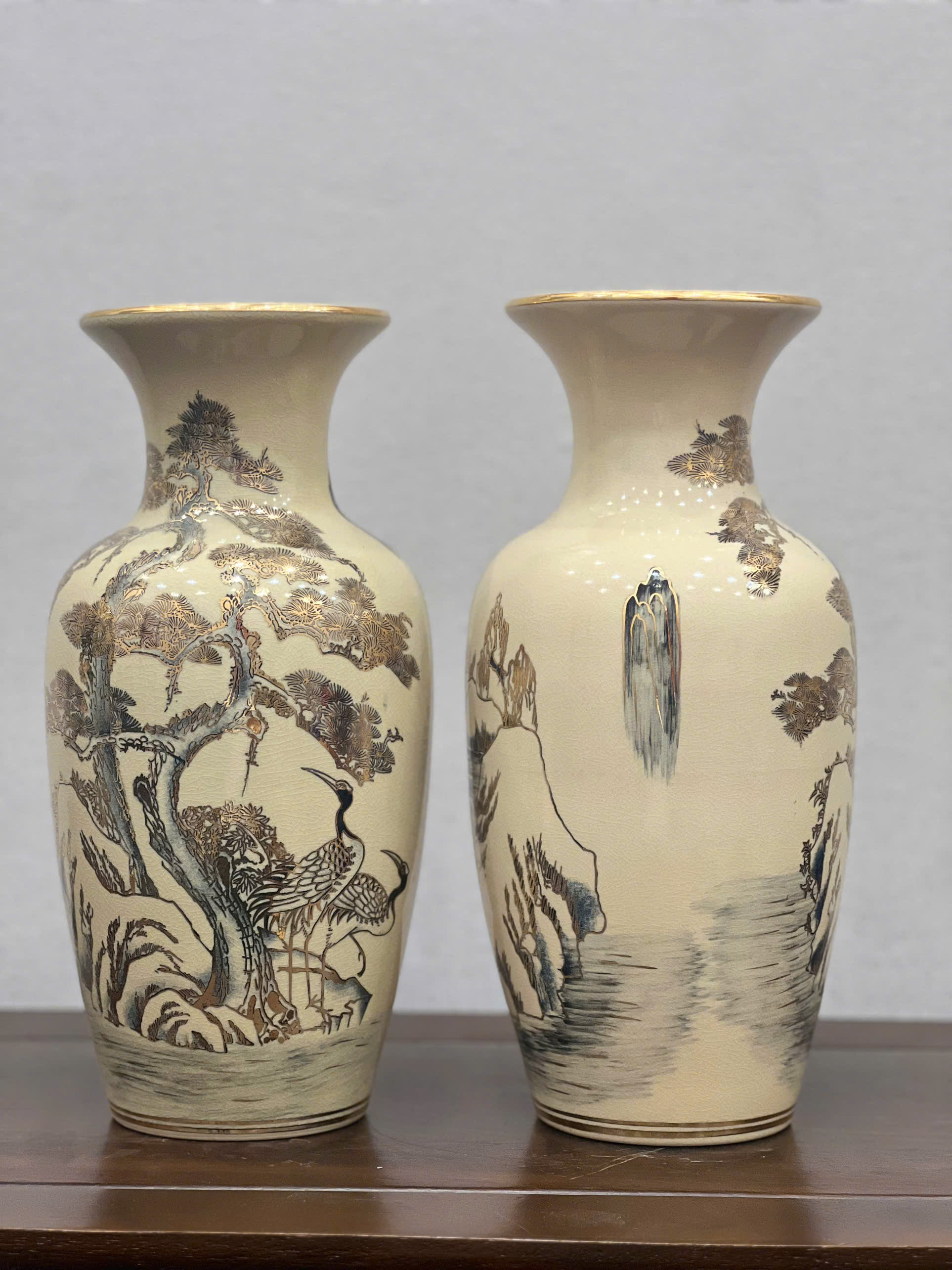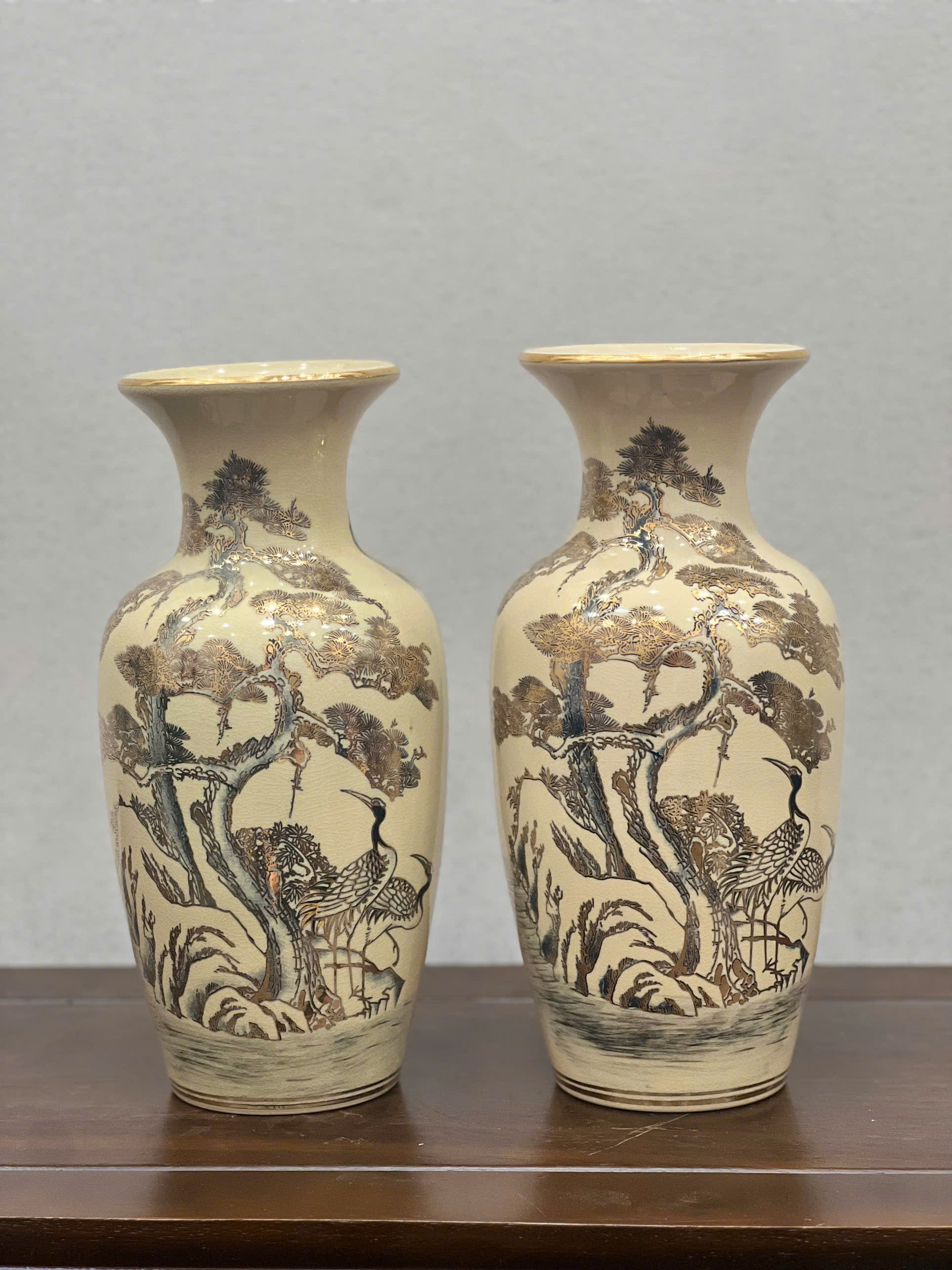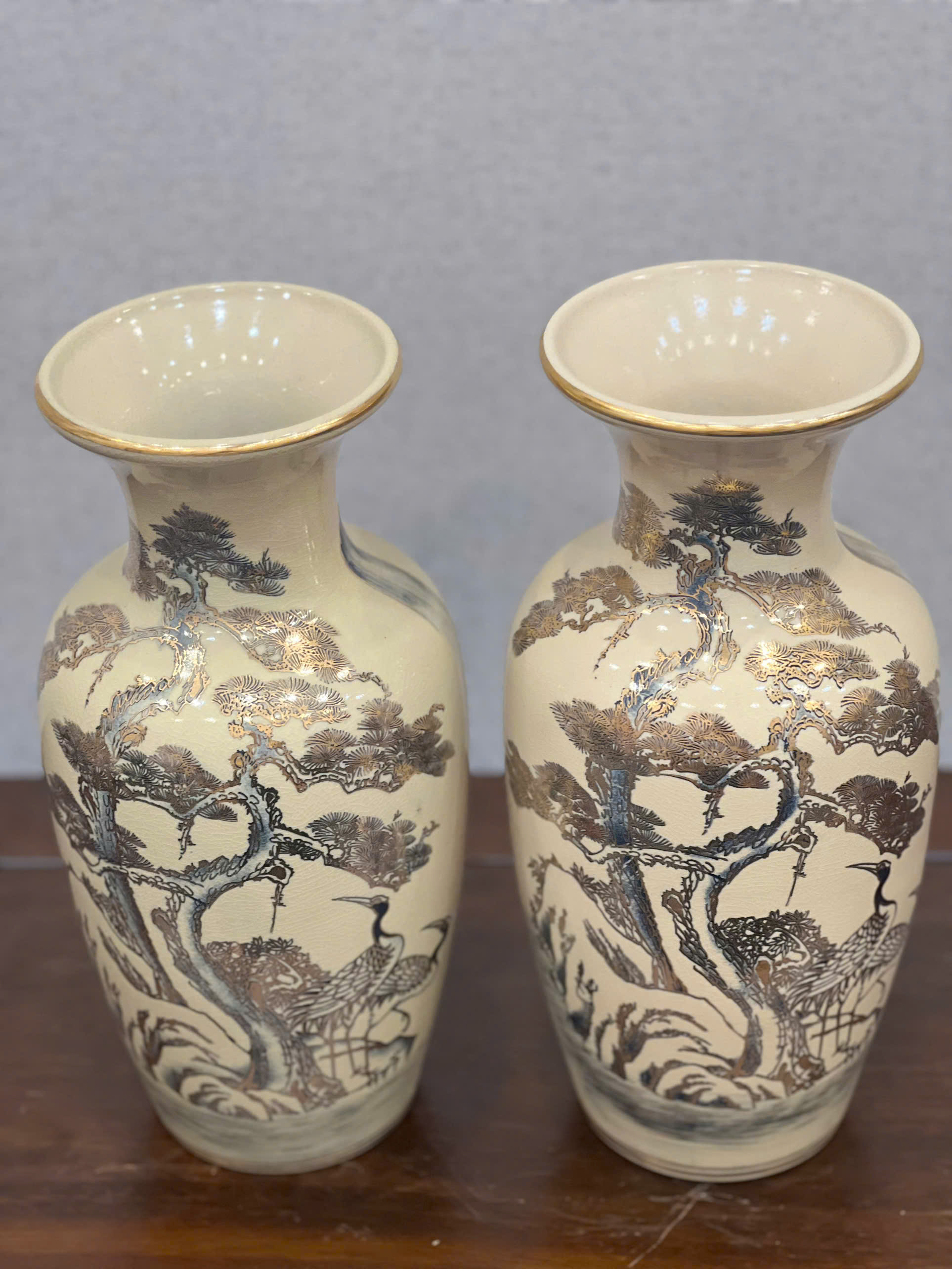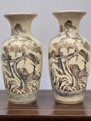 Bình Cắm Hoa Hoạ Tiết Tùng Hạc H33 vẽ vàng 24k