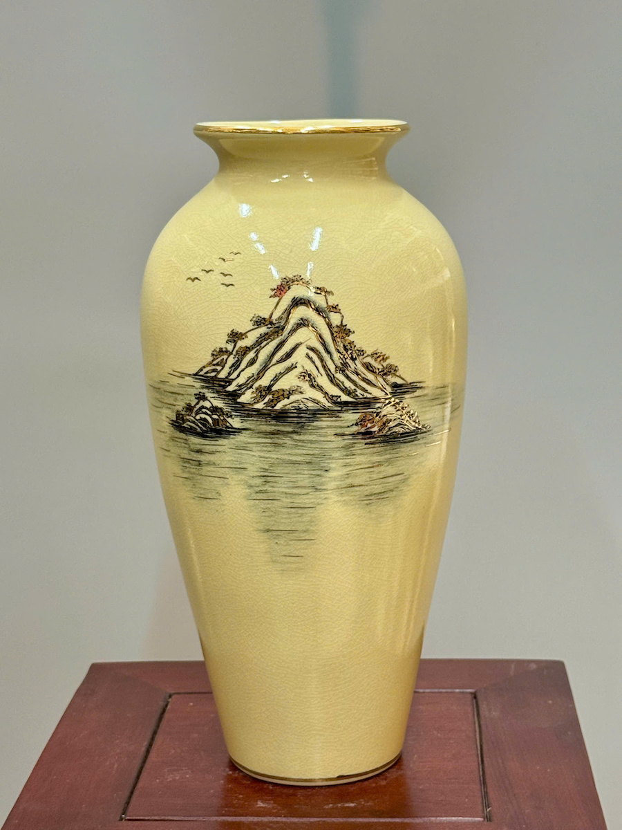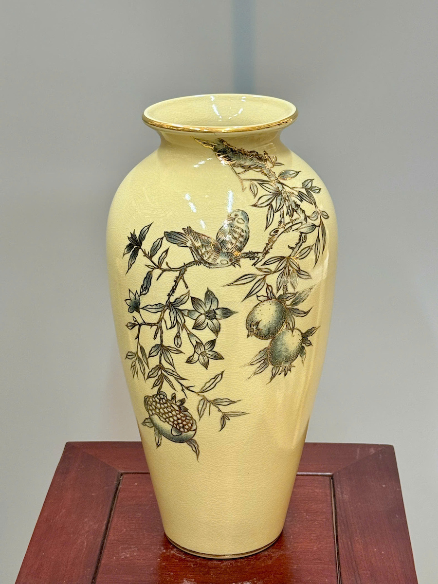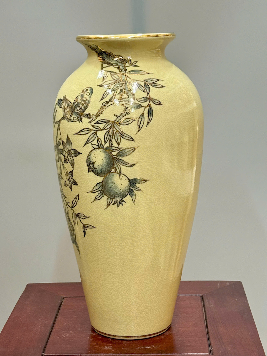 Bình Hoa Như Ý Chim Đào Cao 35cm Gốm Chu Đậu Vẽ Vàng