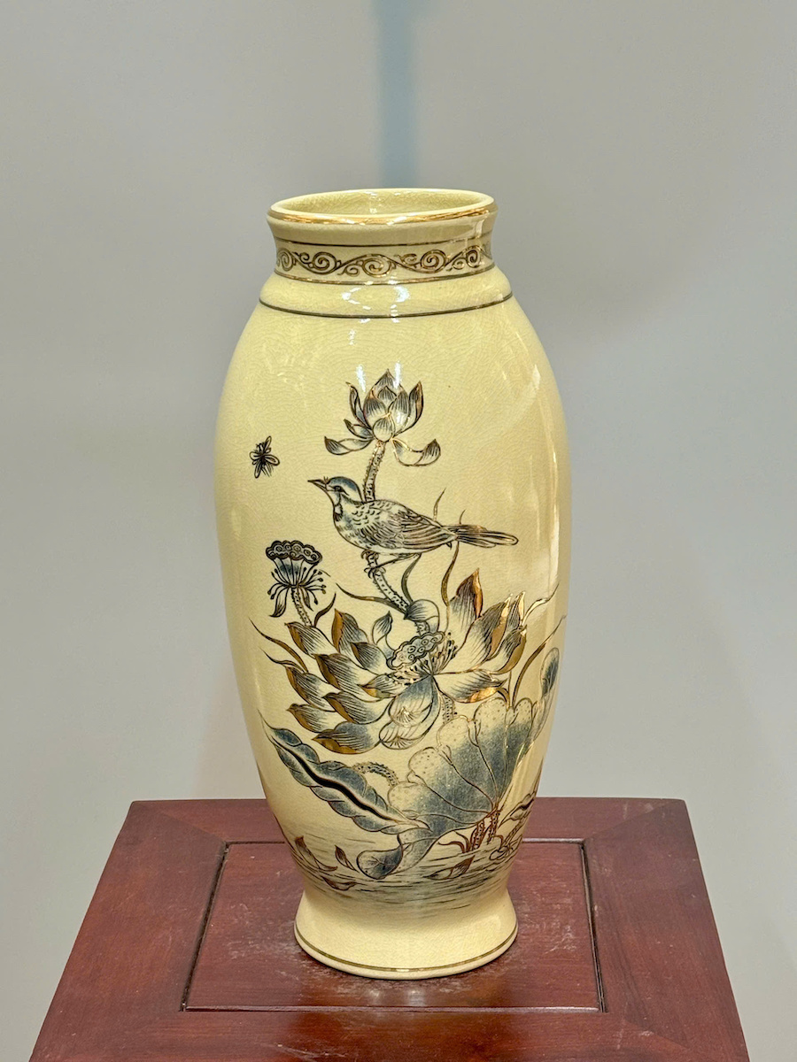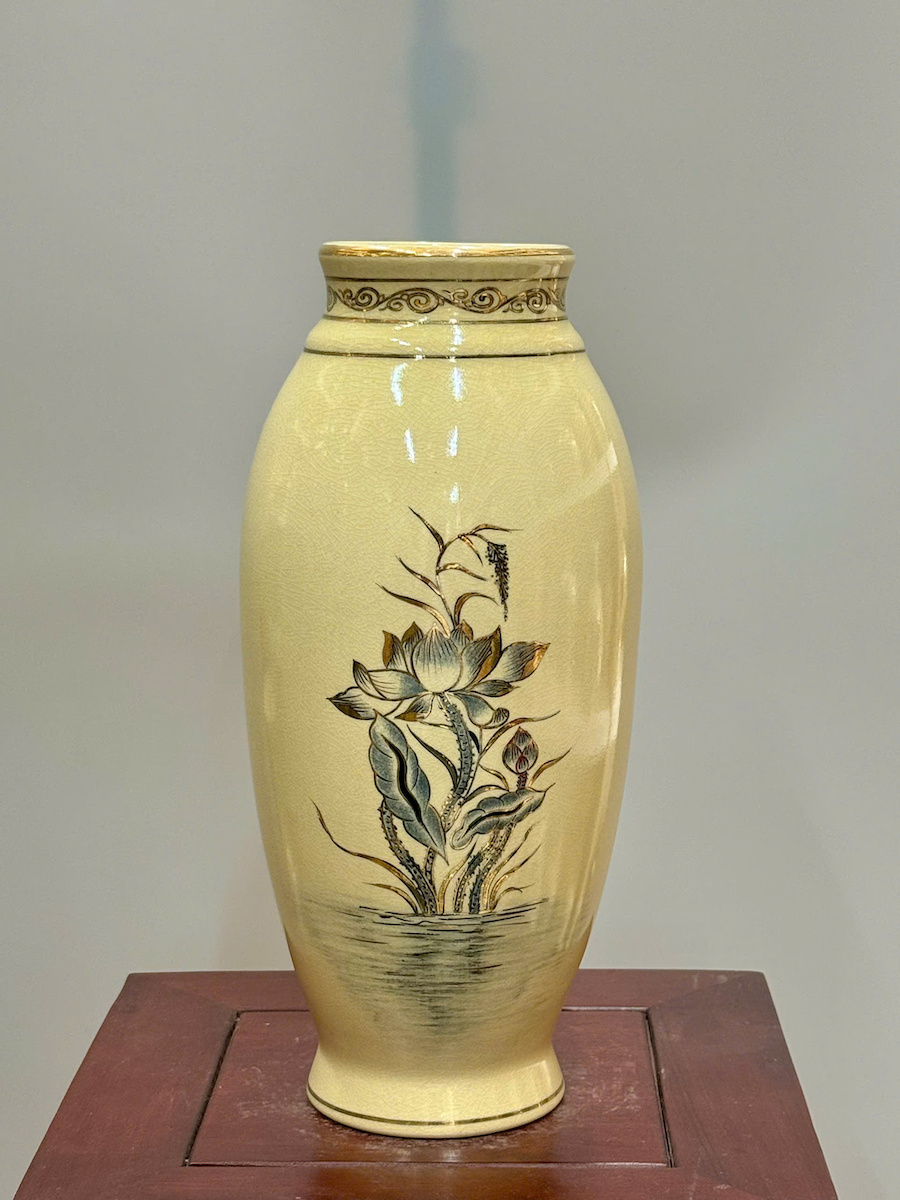 Bình Hoa Phi Yến Hoạ Tiết Hoa Sen Cao 35cm Gốm Vẽ Vàng