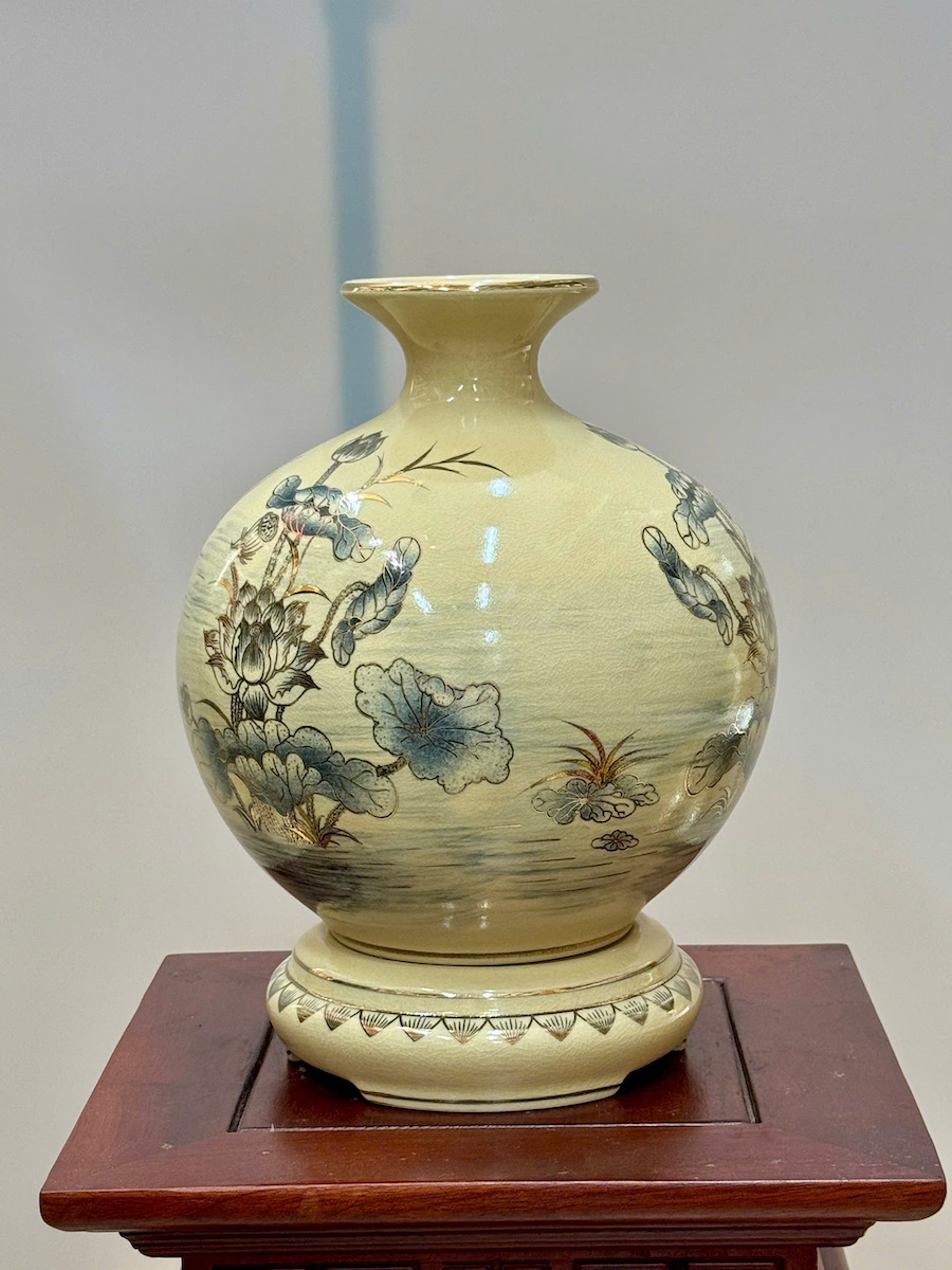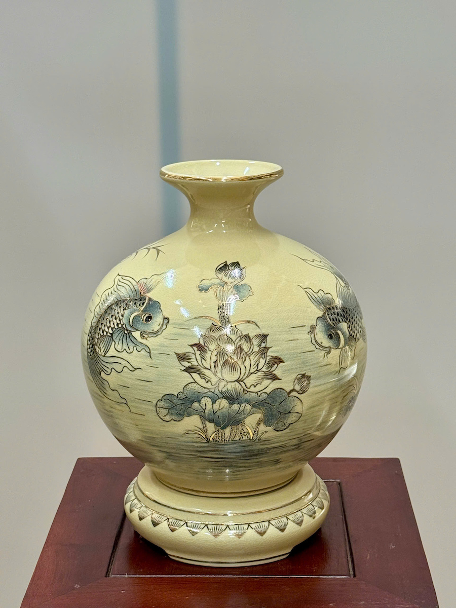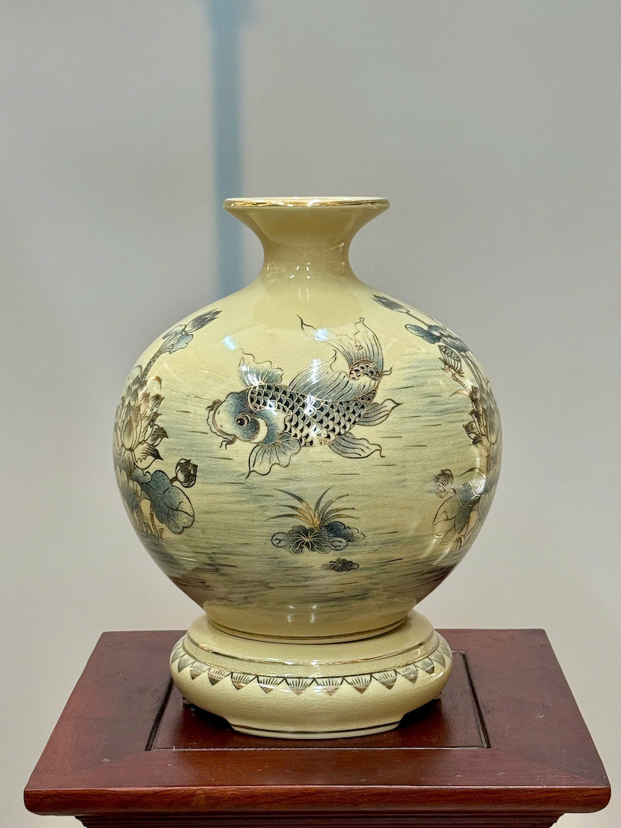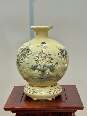 Bình Hút Lộc Cá Chép Hoa Sen Cao 29cm Gốm Chu Đậu Vẽ Vàng