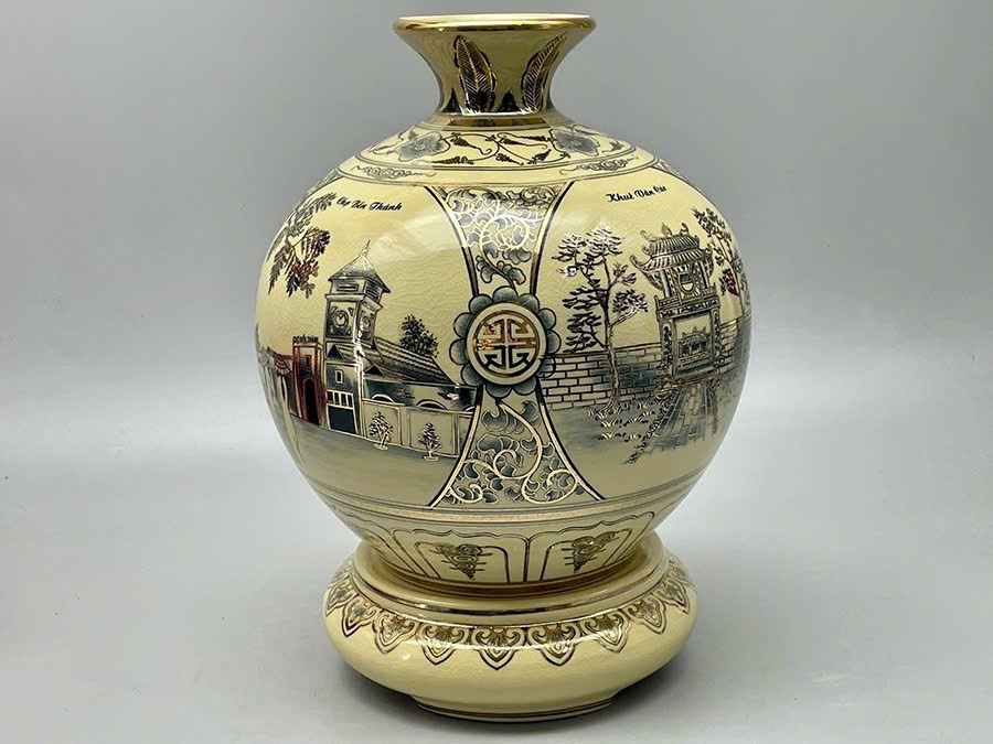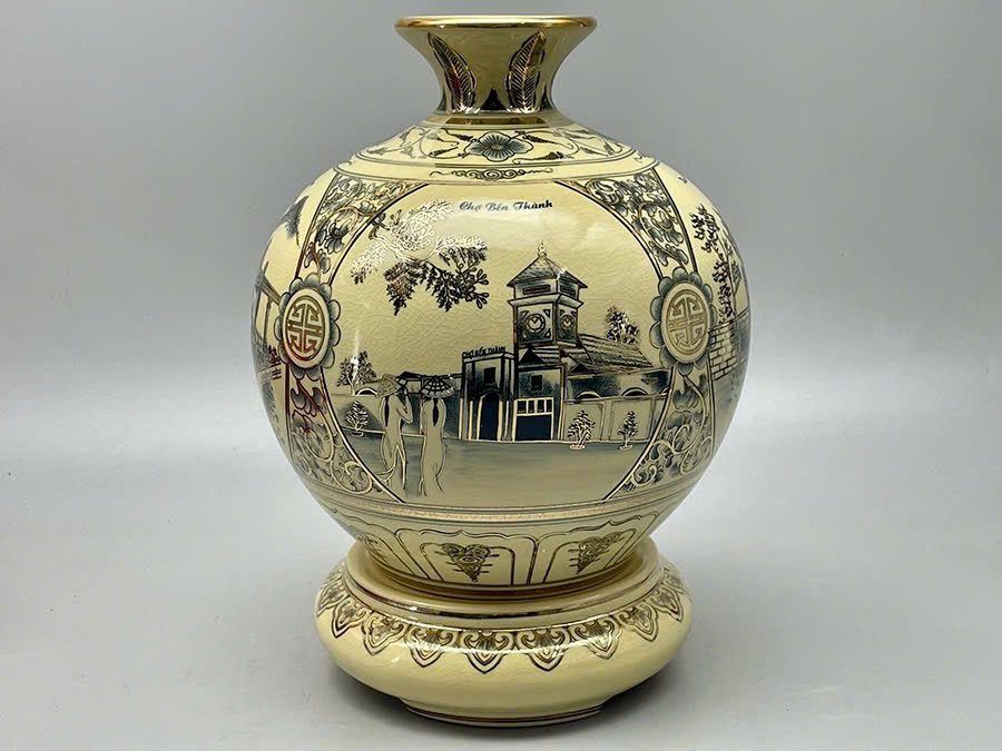 4. **Sang trọng và đẳng cấp**: Sự kết hợp giữa gốm cổ truyền và vàng 24k tạo nên một sản phẩm độc đáo, phù hợp để trưng bày hoặc làm quà tặng cao cấp.### Công dụng: