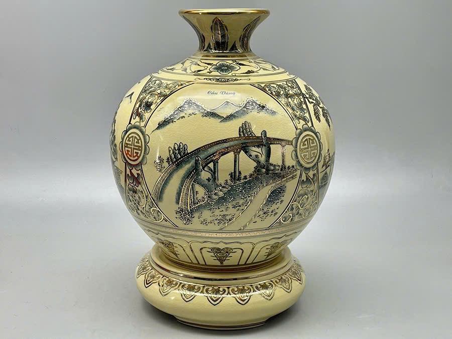 ### Đặc điểm nổi bật của bình gốm Chu Đậu vẽ vàng 24k: