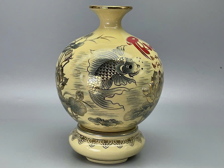 Bình Hút Lộc Chép Sen chữ PHÚC H30 vẽ vàng