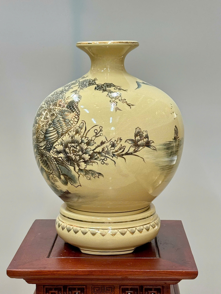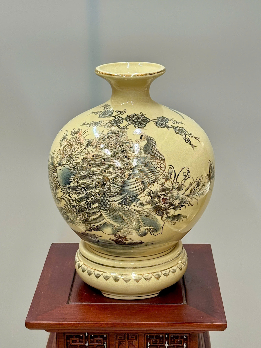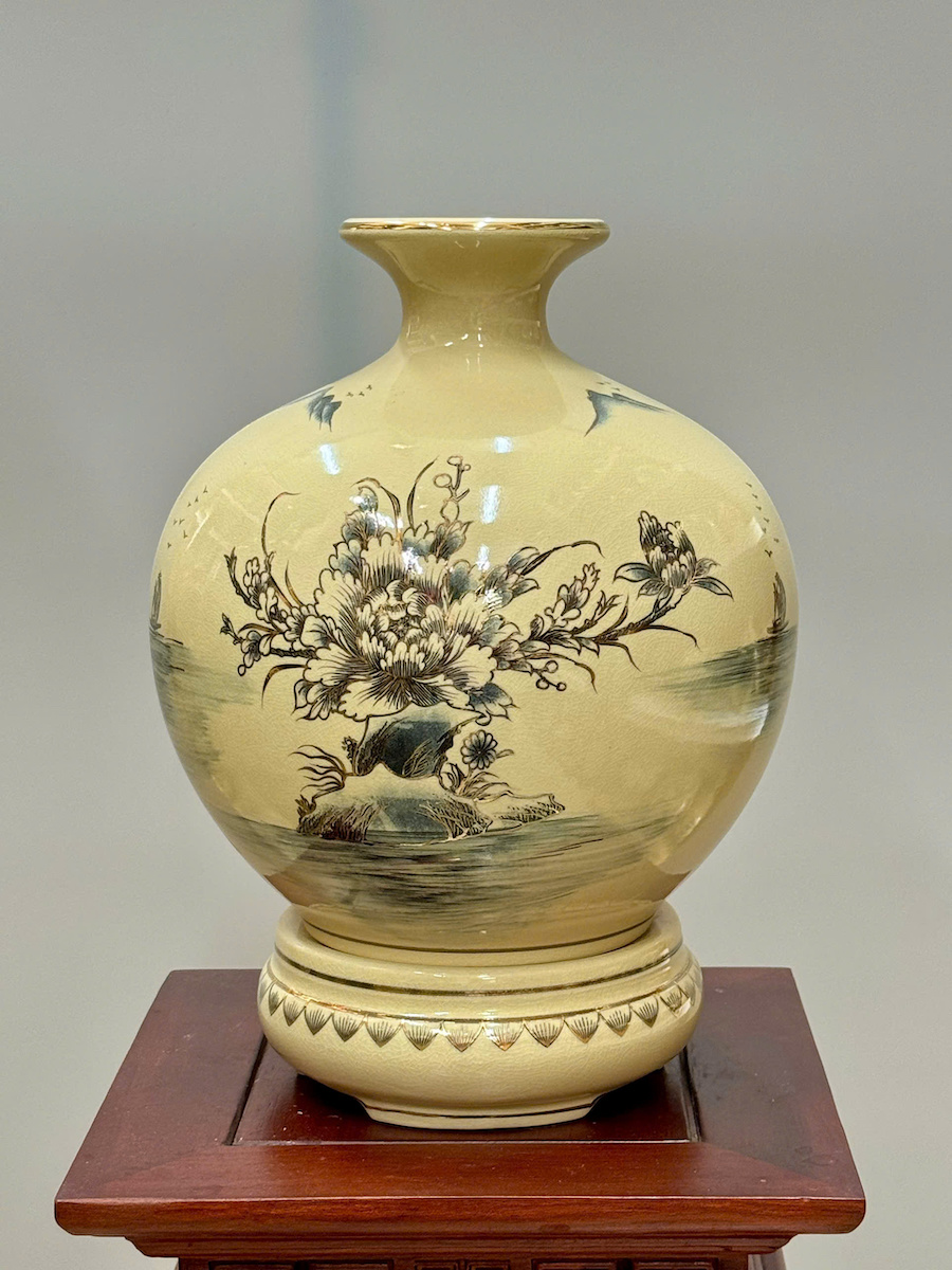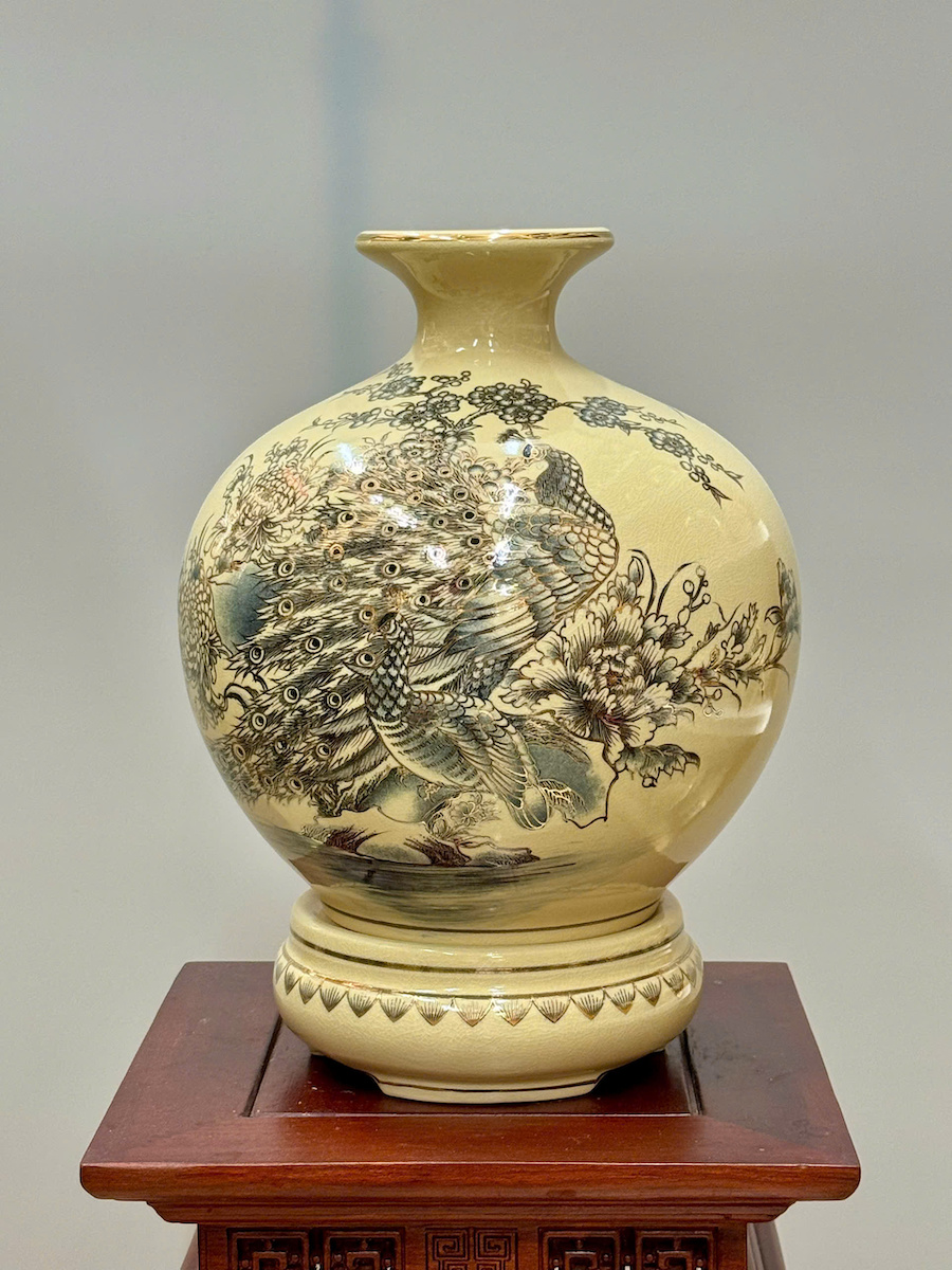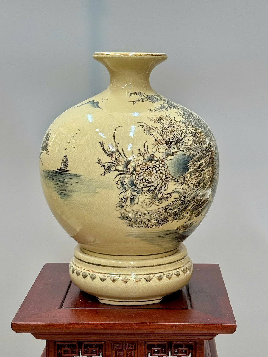 Bình Hút Lộc Công Đào Cao 36cm Gốm Chu Đậu Vẽ Vàng