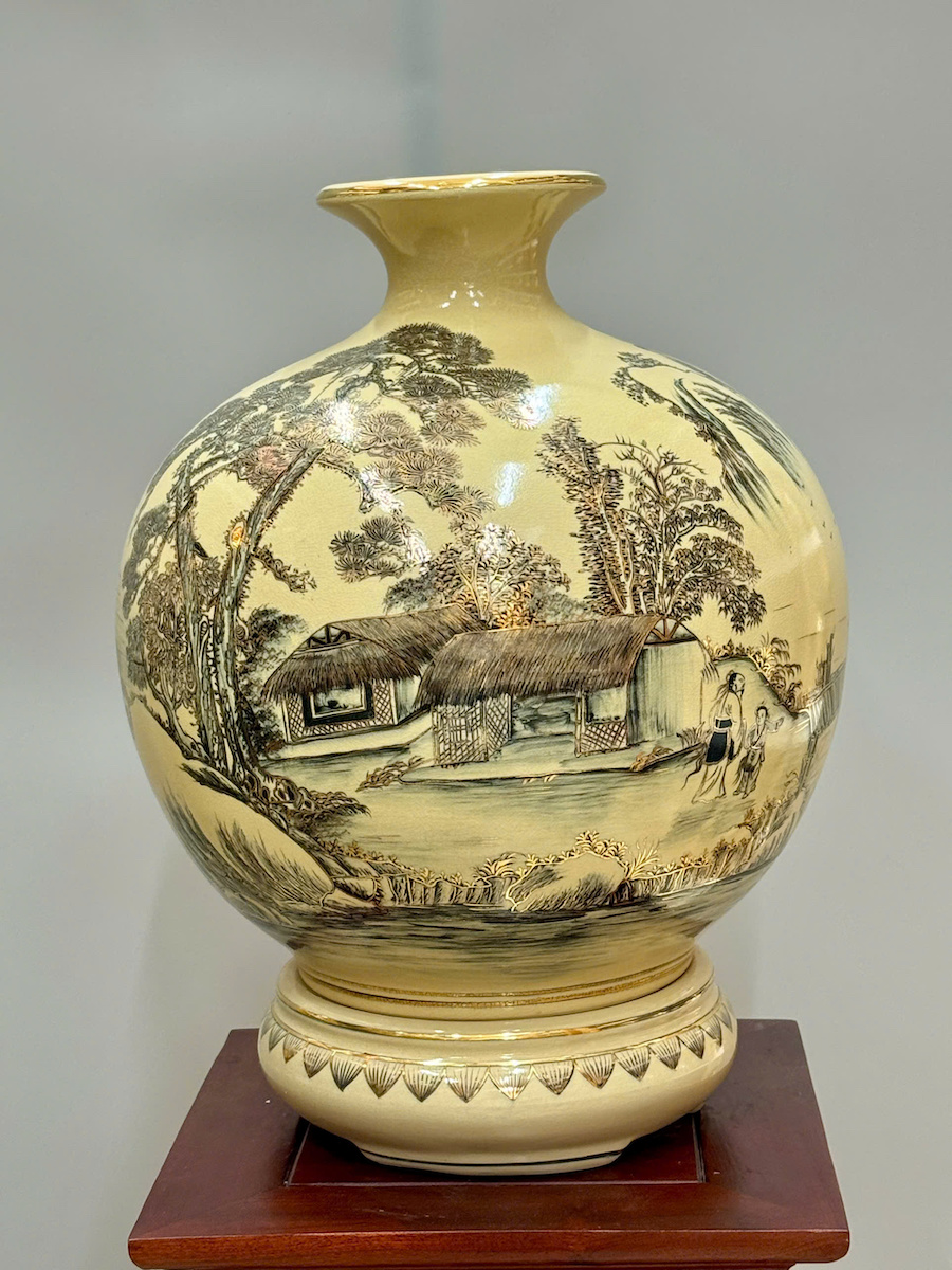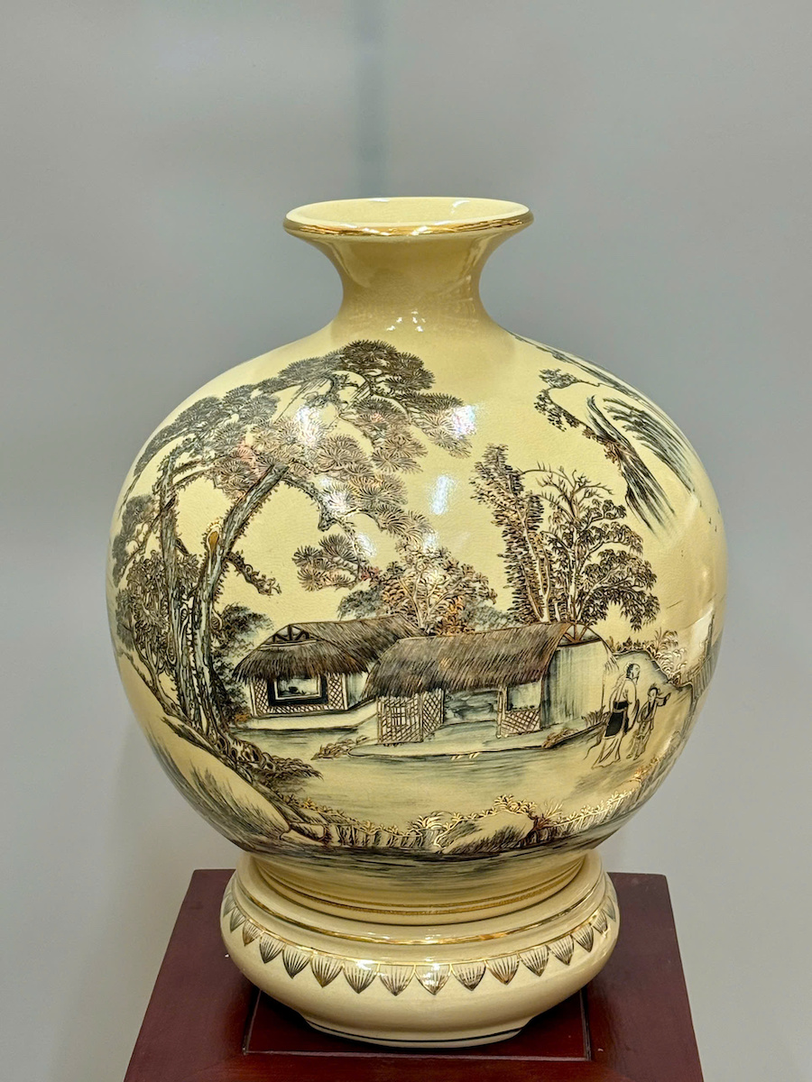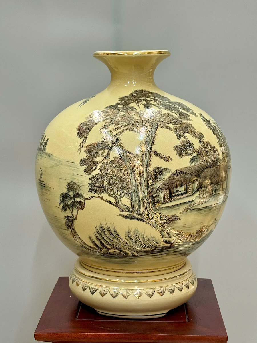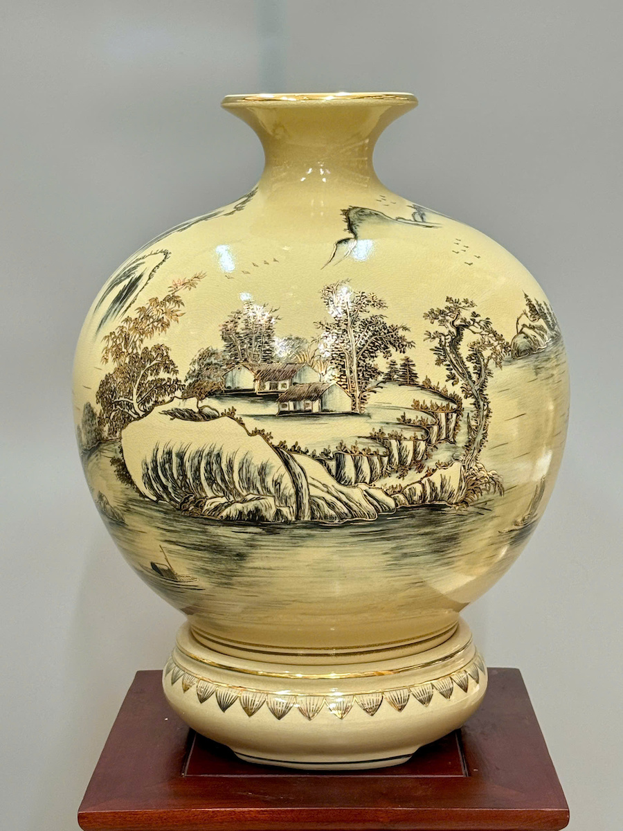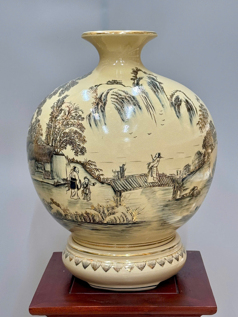 Bình Hút Lộc Hoạ Tiết Sơn Thuỷ Hữu Tình Cao 42cm Gốm Chu Đậu Vẽ Vàng