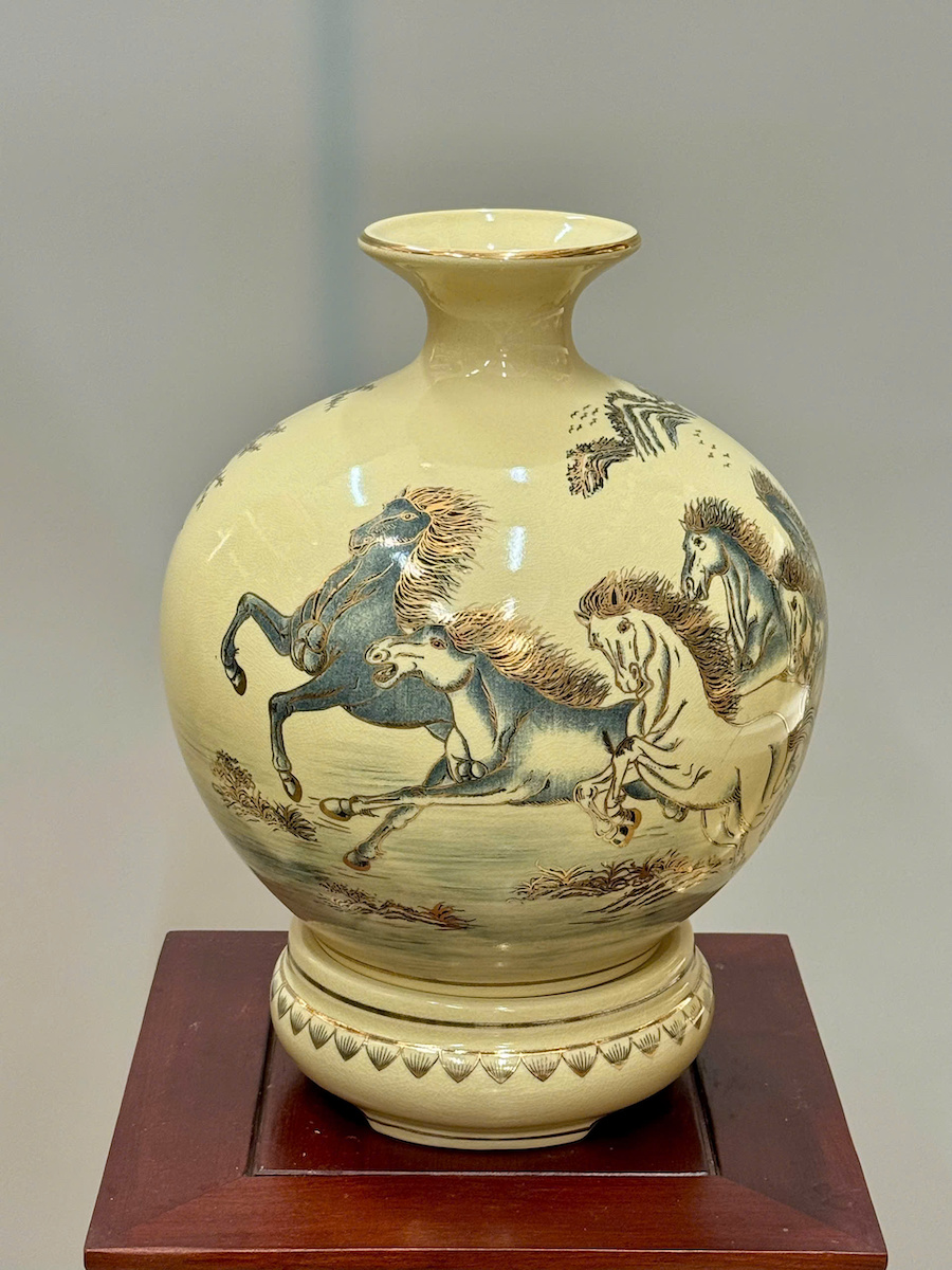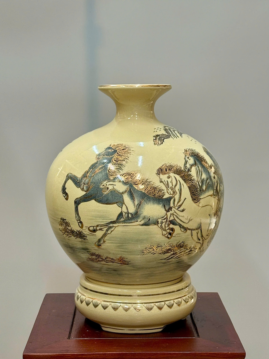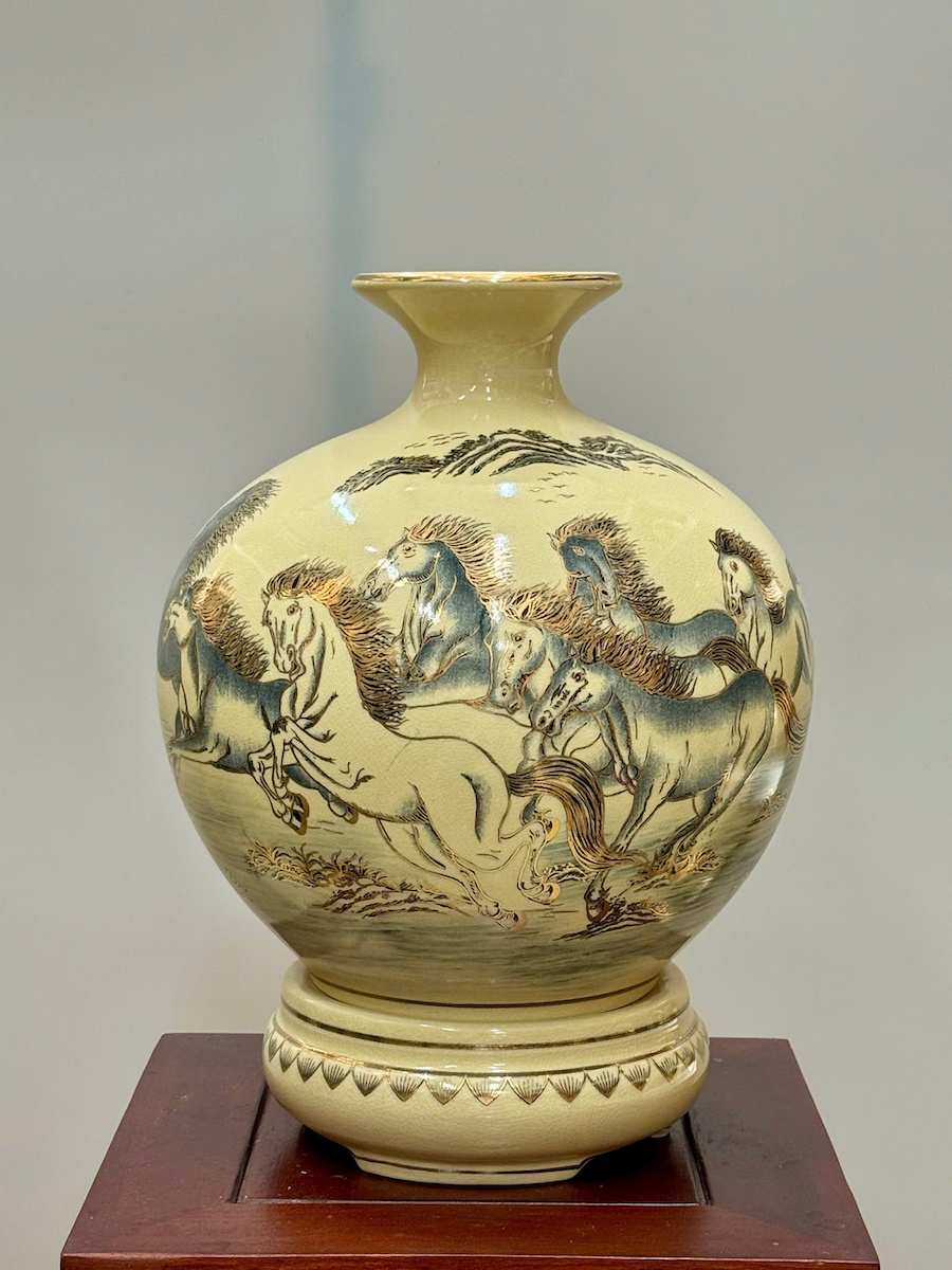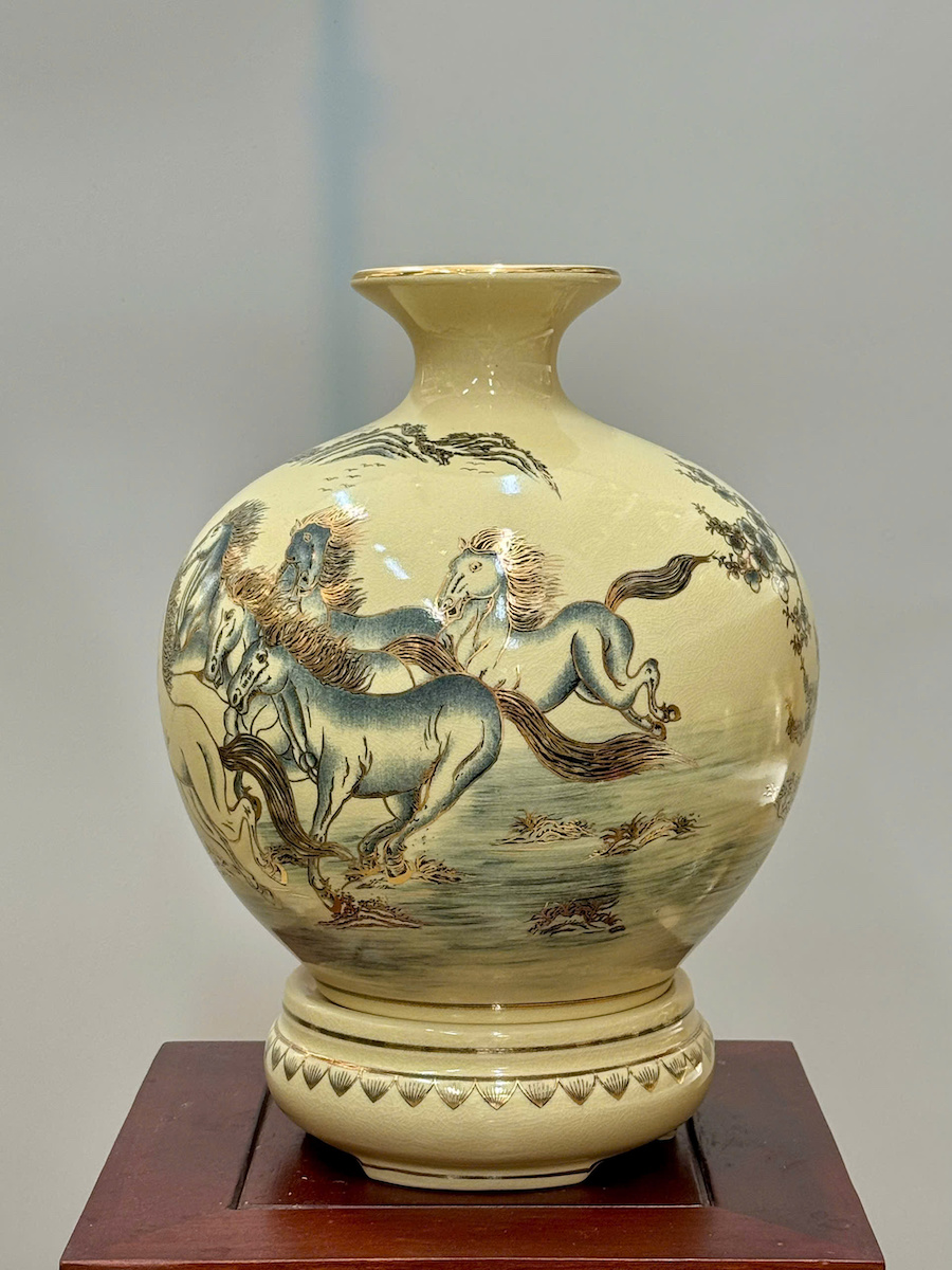 Bình Hút Lộc Mã Đáo Thành Công Cao 36cm Gốm Chu Đậu Vẽ Vàng