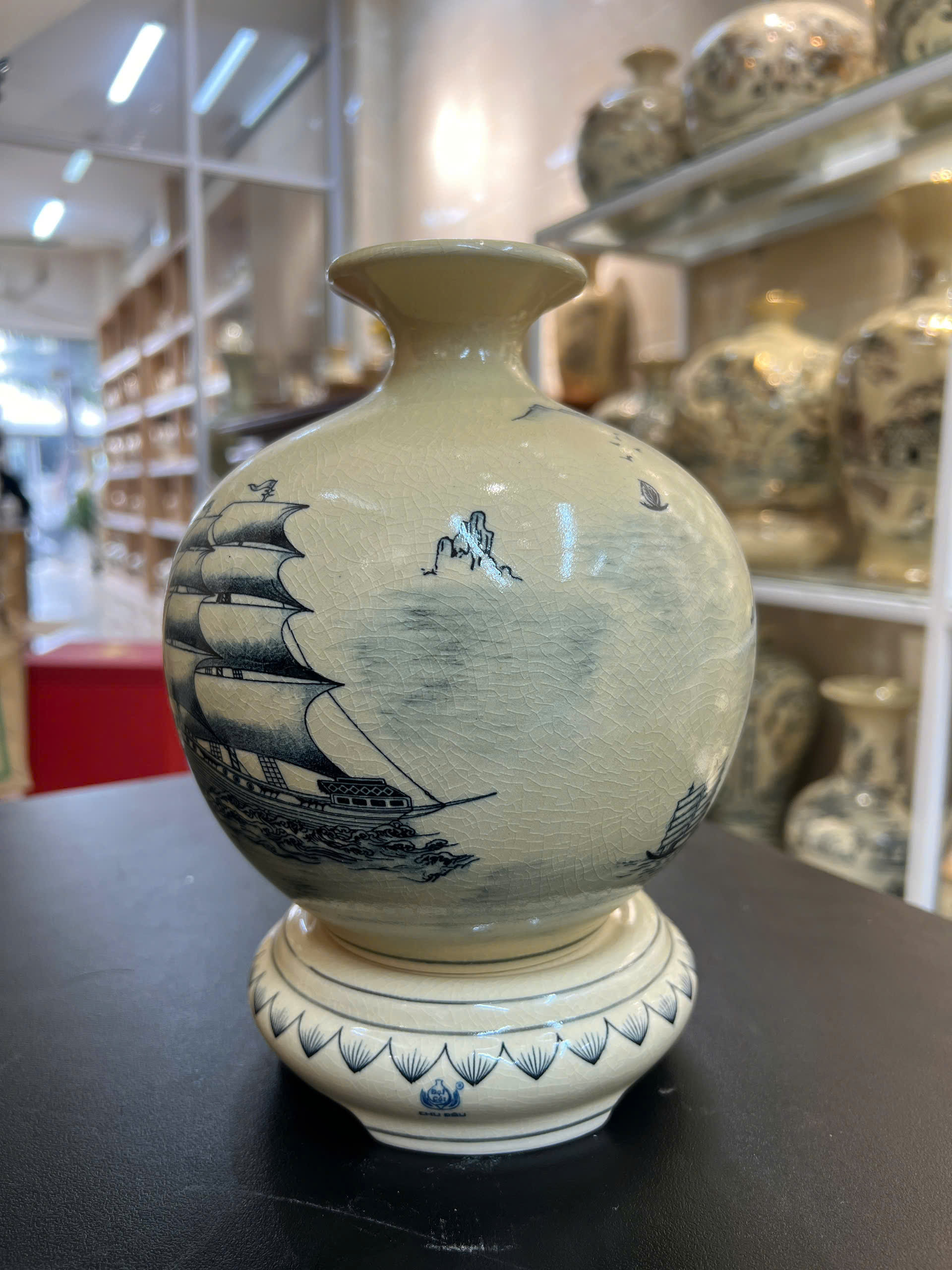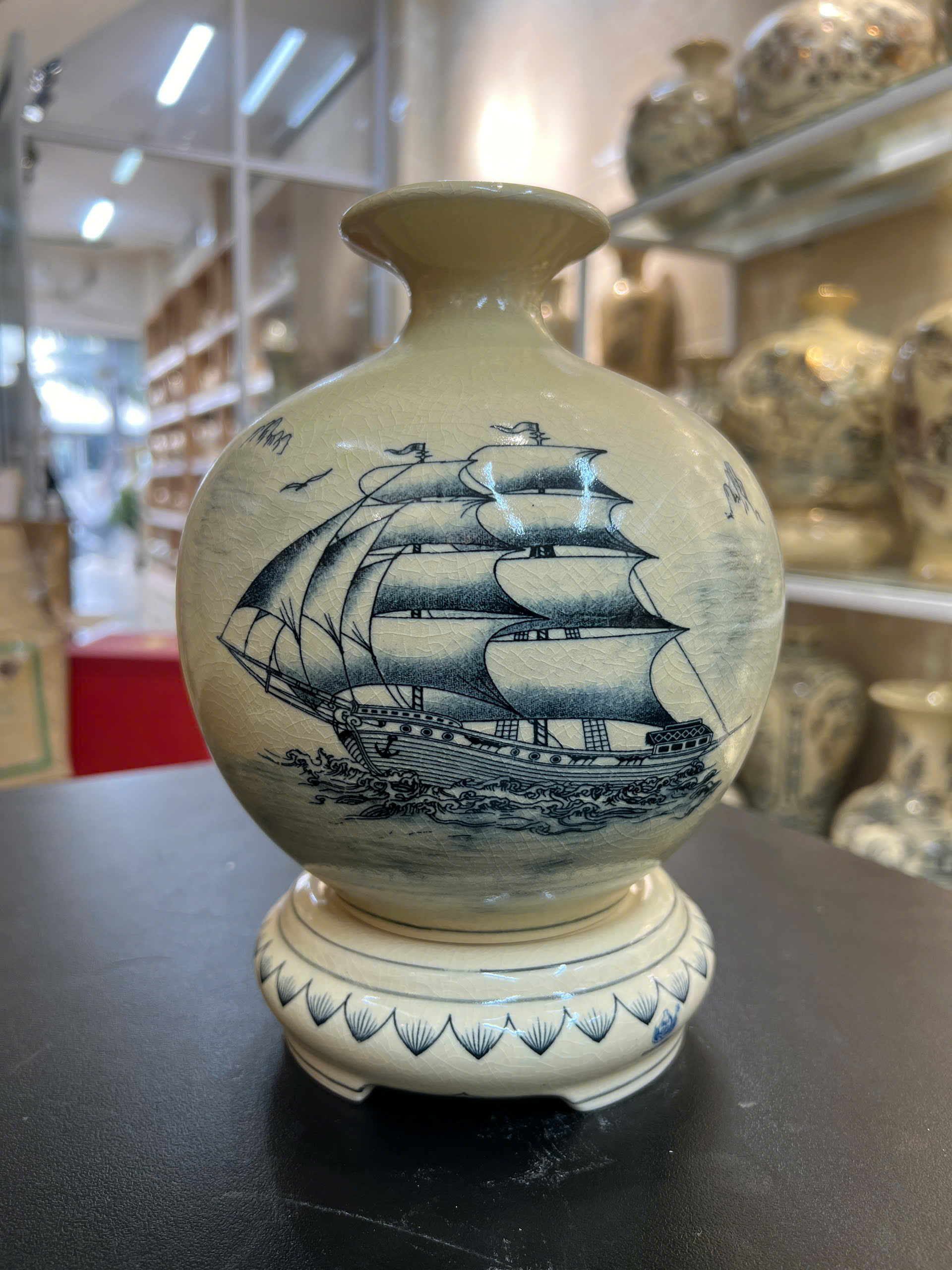 Tóm lại, bình hút lộc hoạ tiết **"Thuận buồm xuôi gió"** bằng gốm Chu Đậu là sự kết hợp hoàn hảo giữa nghệ thuật, phong thủy và văn hóa, mang lại giá trị tinh thần và thẩm mỹ cao cho người sở hữu.
