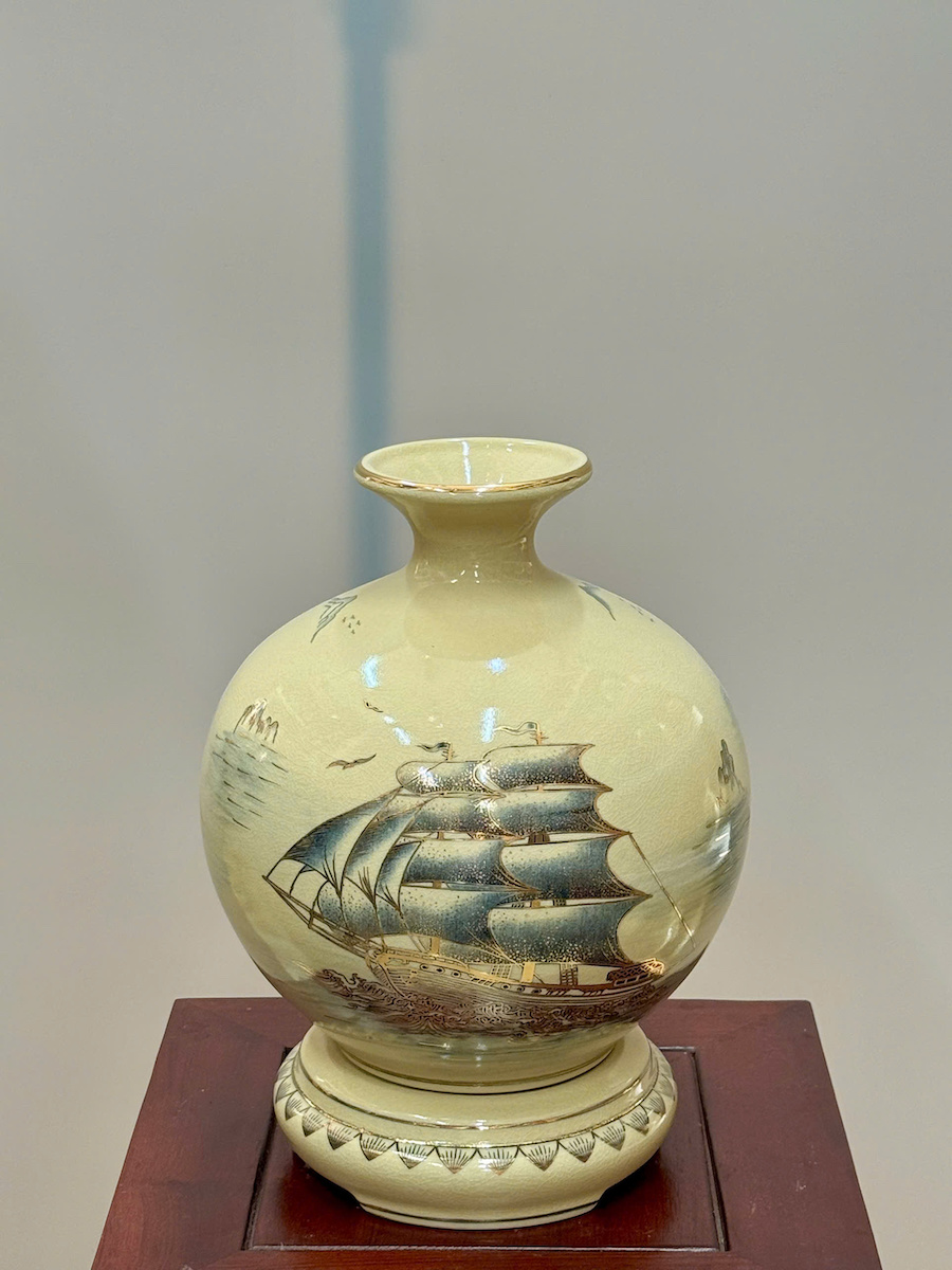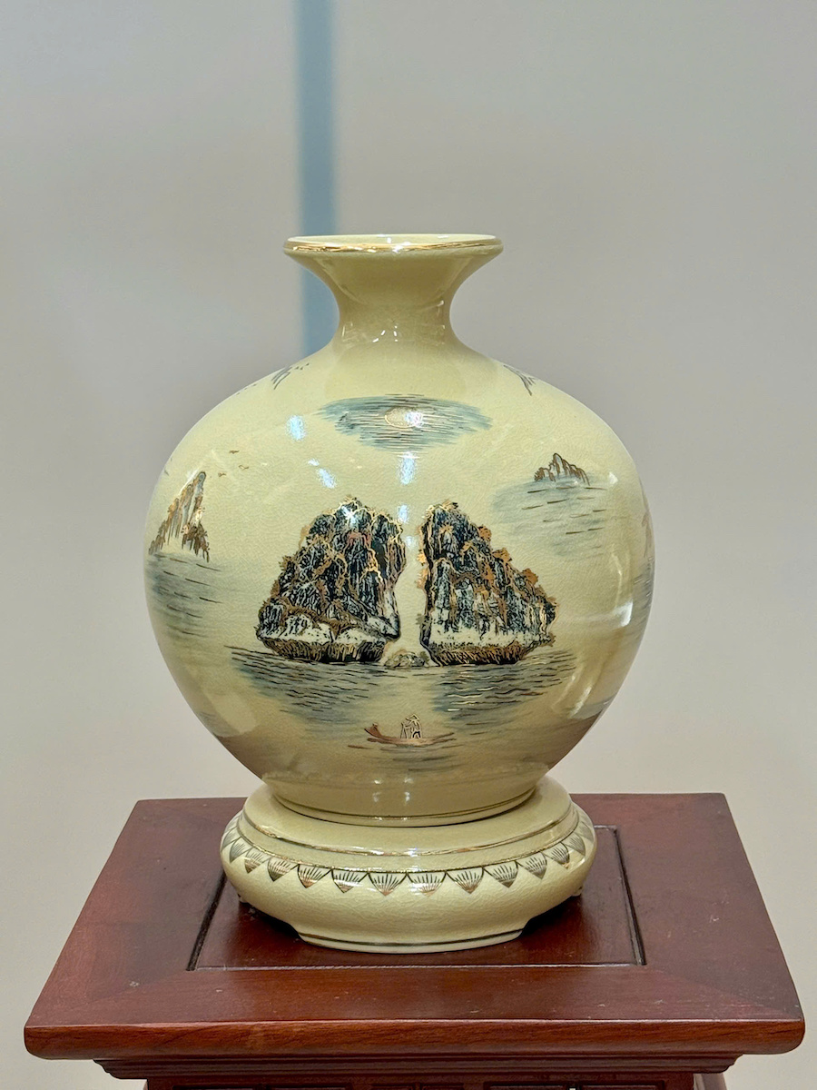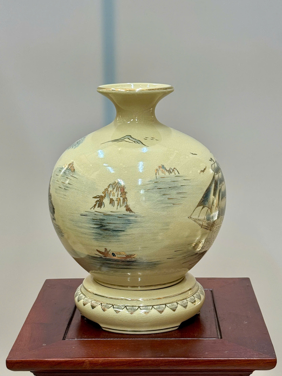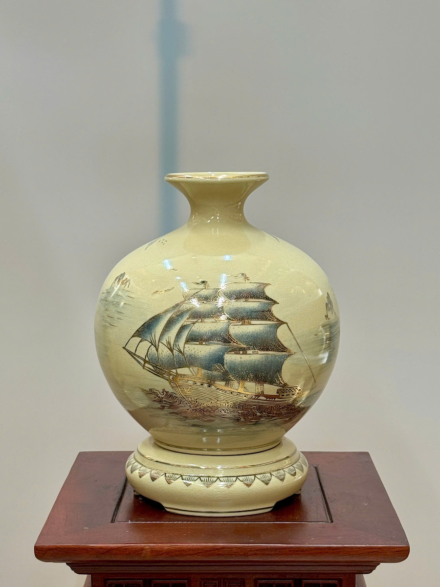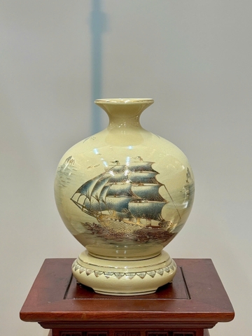 Bình Hút Lộc Thuận Buồm Xuôi Gió Cao 29cm Gốm Chu Đậu Vẽ Vàng
