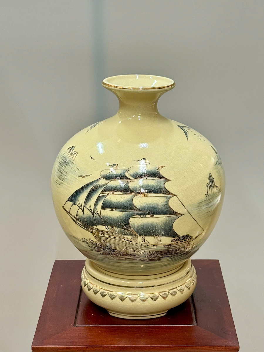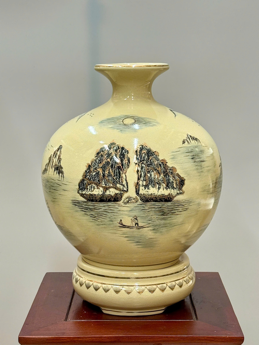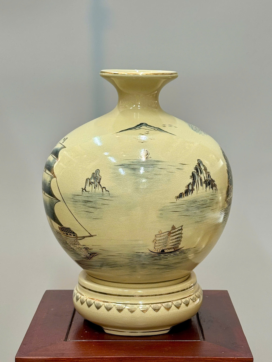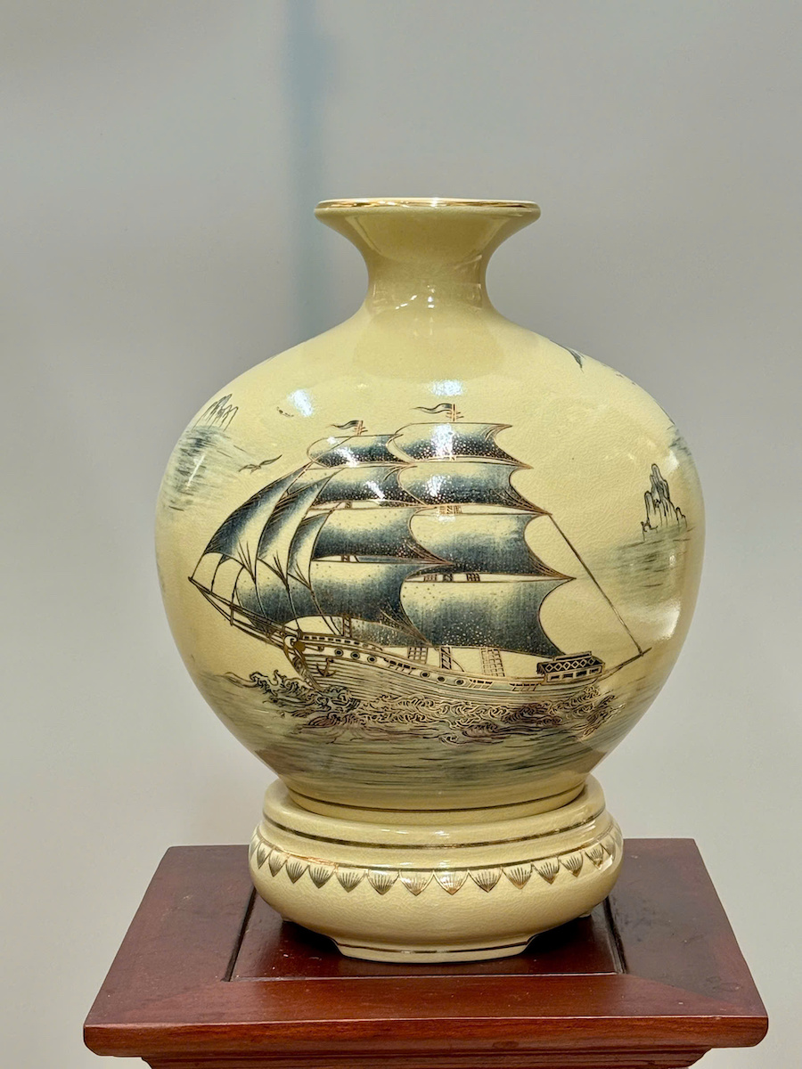 Bình Hút Lộc Thuận Buồm Xuôi Gió Cao 36cm Gốm Chu Đậu Vẽ Vàng