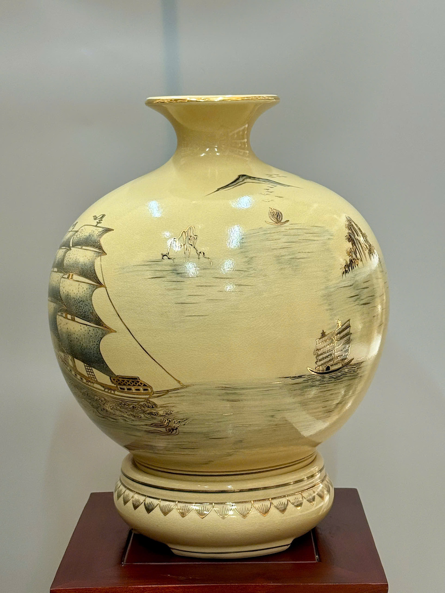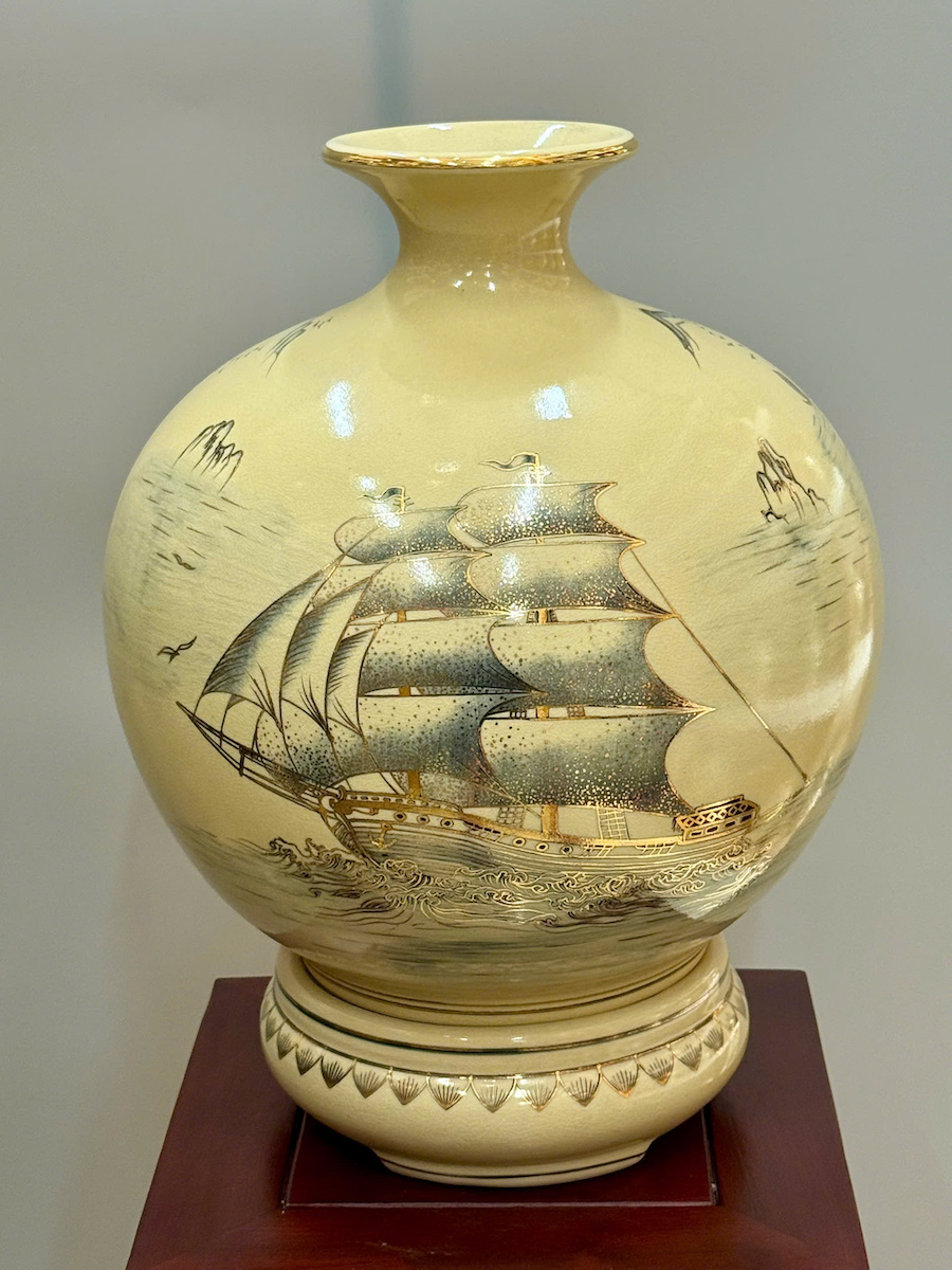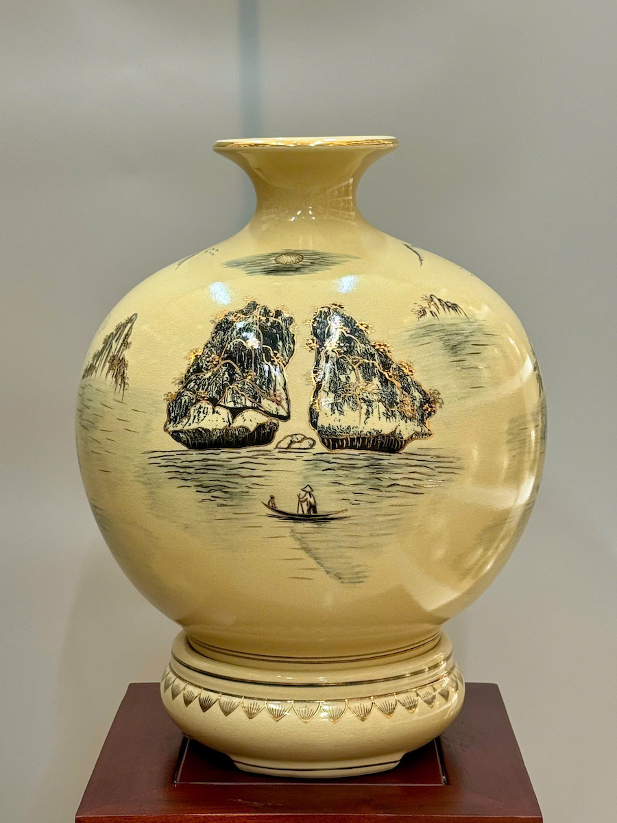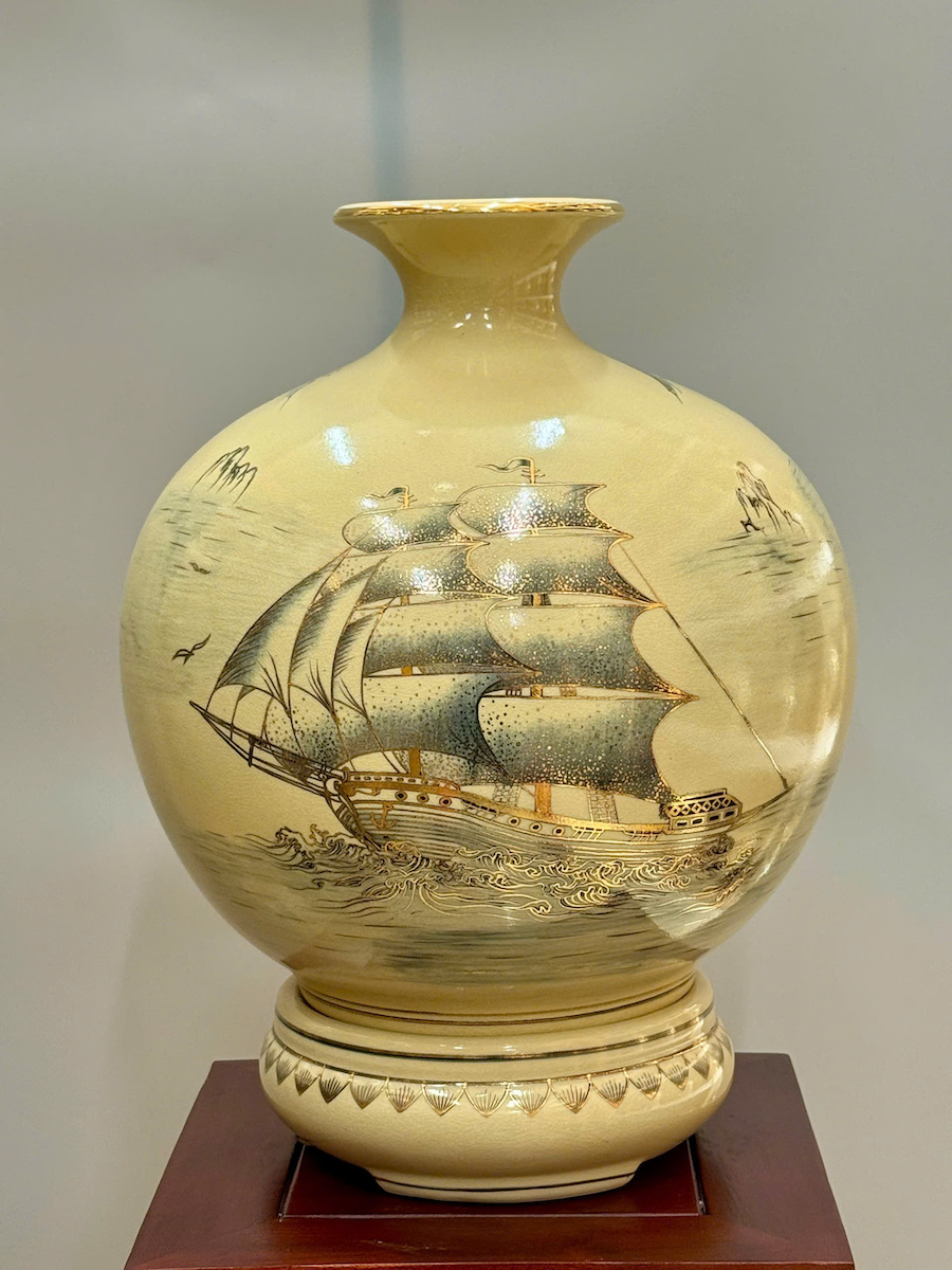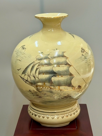 Bình Hút Lộc Thuận Buồm Xuôi Gió Cao 42cm Gốm Chu Đậu Vẽ Vàng