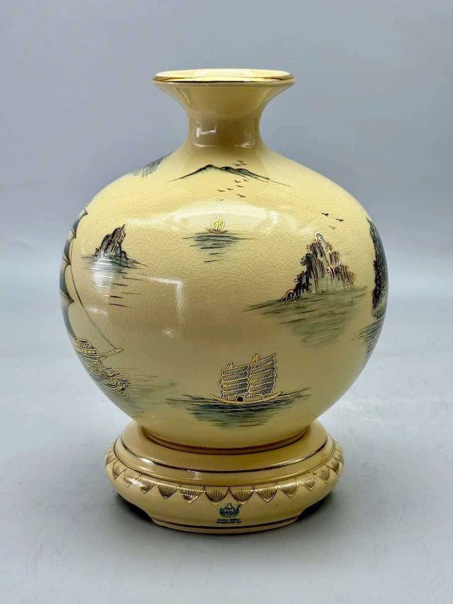 • Bình gốm Chu Đậu vẽ vàng 24k là một sản phẩm gốm sứ cao cấp, mang đậm nét tinh hoa của làng gốm Chu Đậu - một trong những làng gốm cổ nổi tiếng của Việt Nam. Sản phẩm này không chỉ thể hiện sự tinh xảo trong kỹ thuật chế tác gốm mà còn được điểm xuyết bằng những họa tiết vẽ tay tinh tế với vàng 24k, tạo nên vẻ đẹp sang trọng và quý phái.