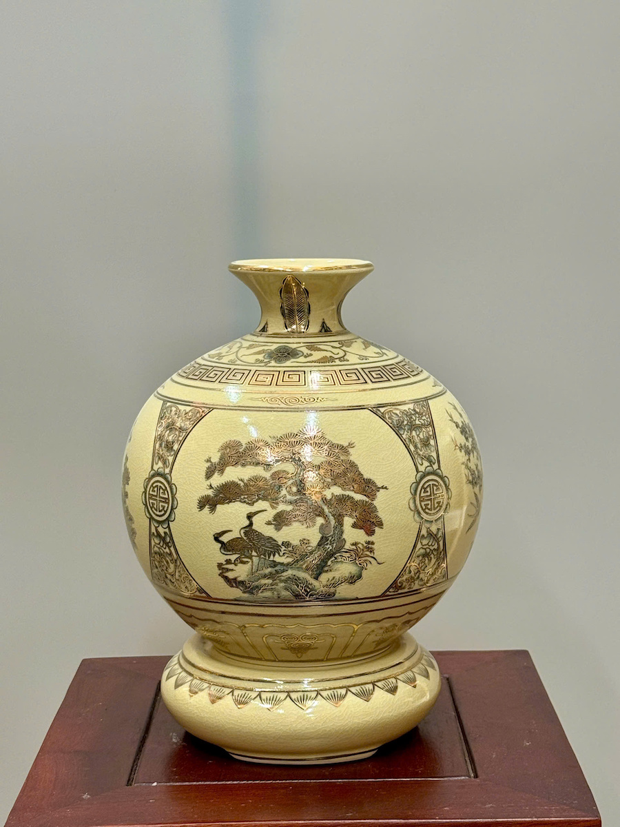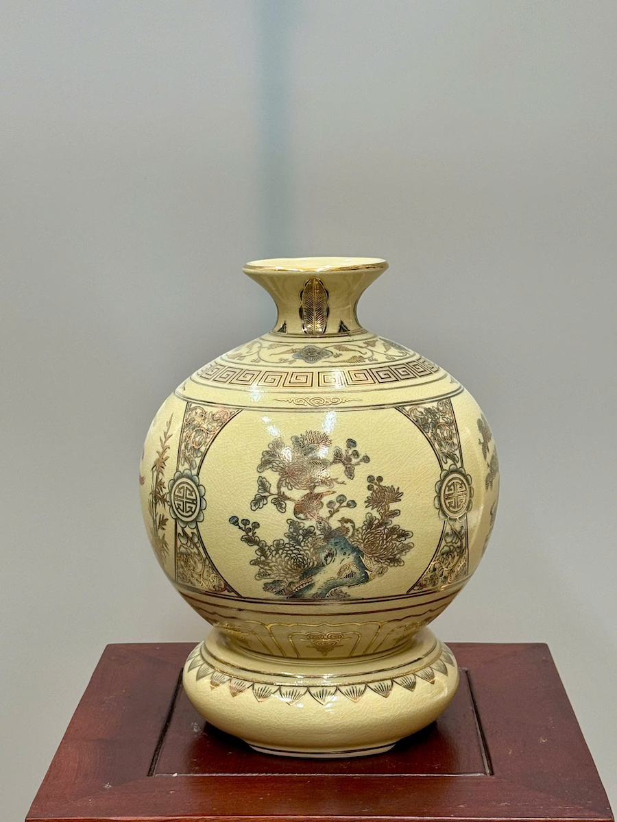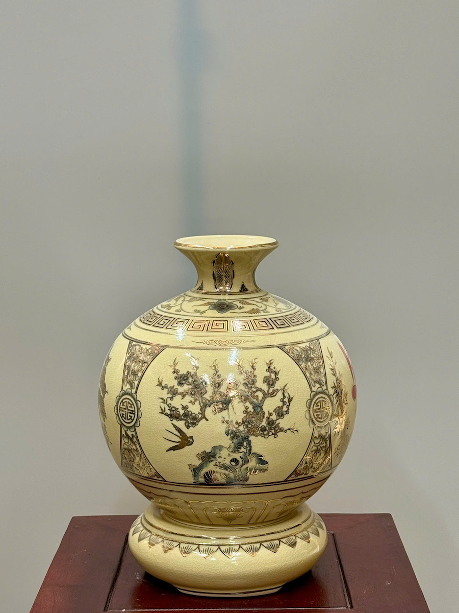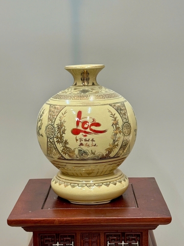 Bình Hút Lộc Tứ Cảnh Chữ Lộc Cao 27cm Gốm Chu Đậu Vẽ Vàng