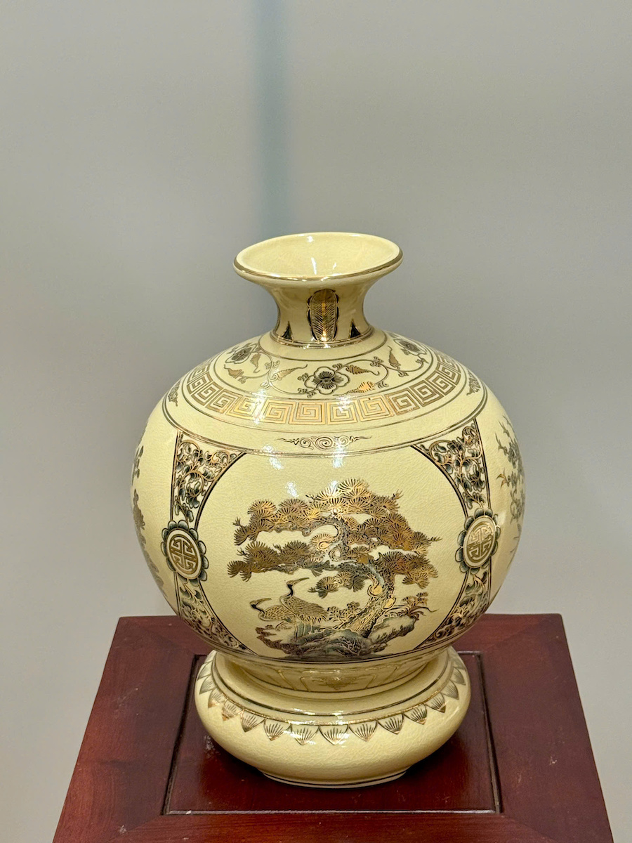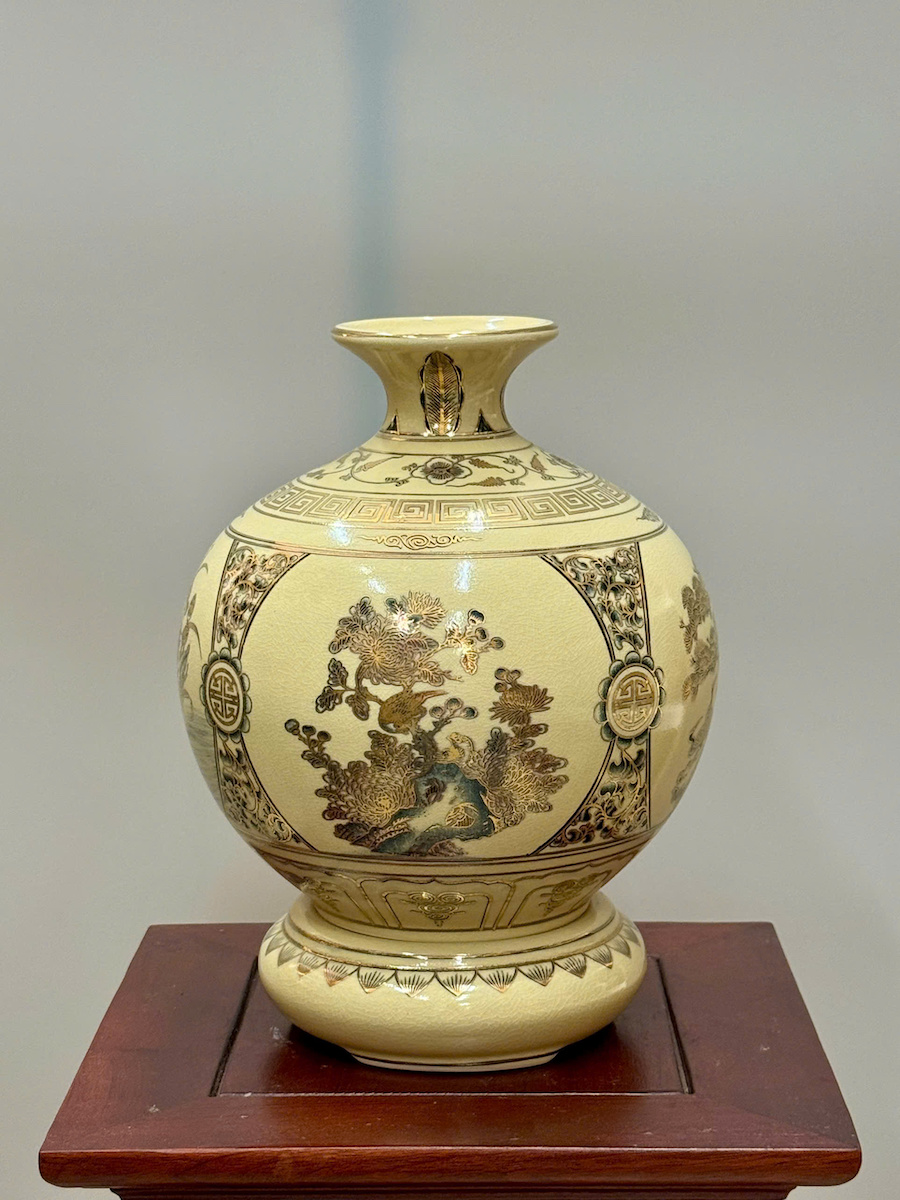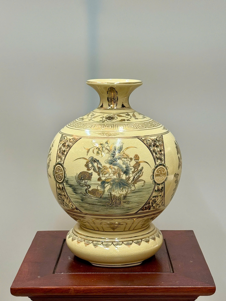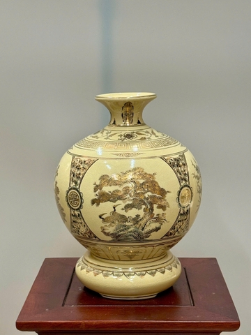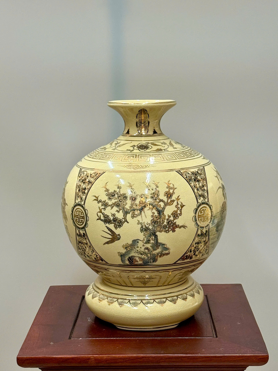 Bình Hút Lộc Tứ Cảnh Bốn Mùa Cao 27cm Gốm Chu Đậu Vẽ Vàng