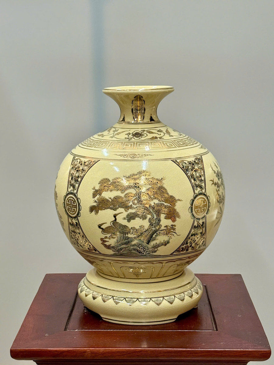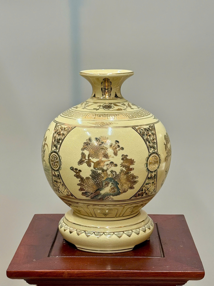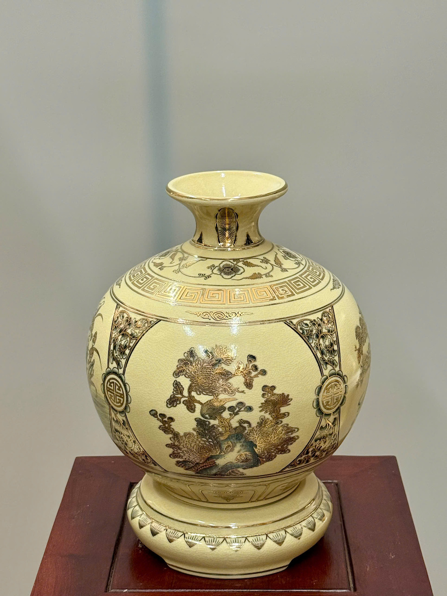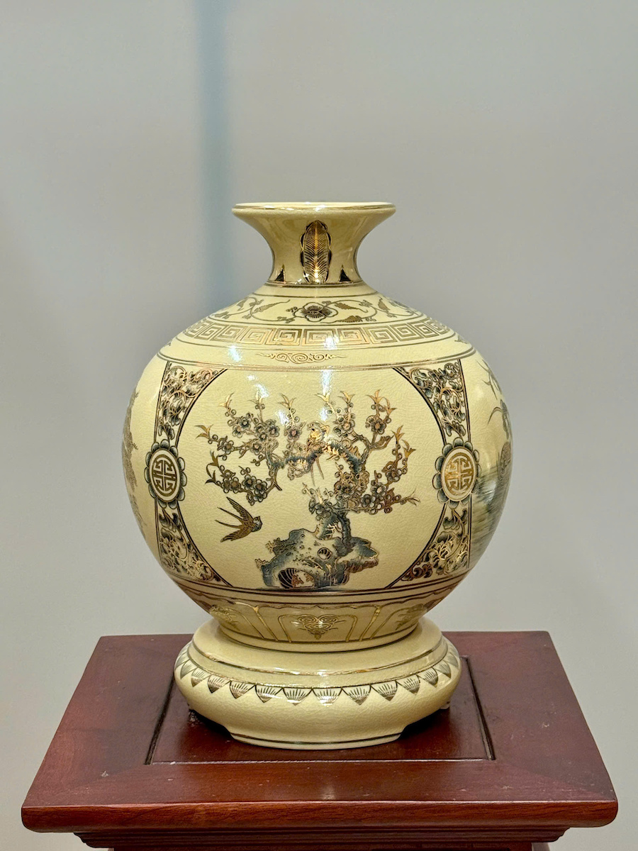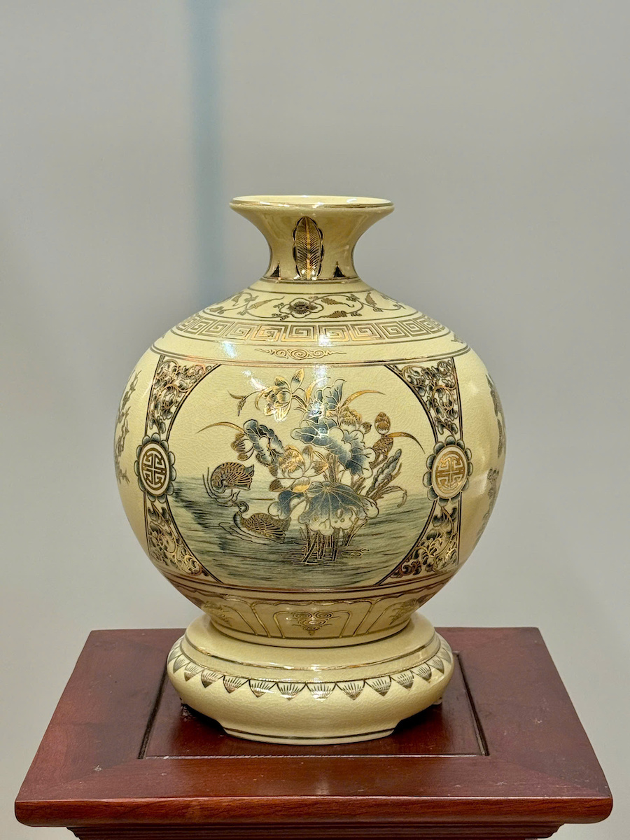 Bình Hút Lộc Tứ Cảnh Bốn Mùa Cao 29cm Gốm Chu Đậu Vẽ Vàng