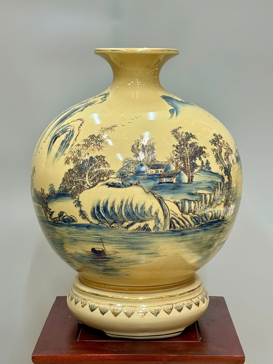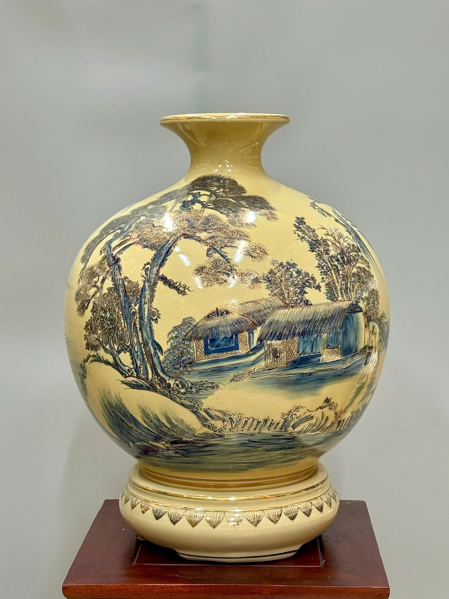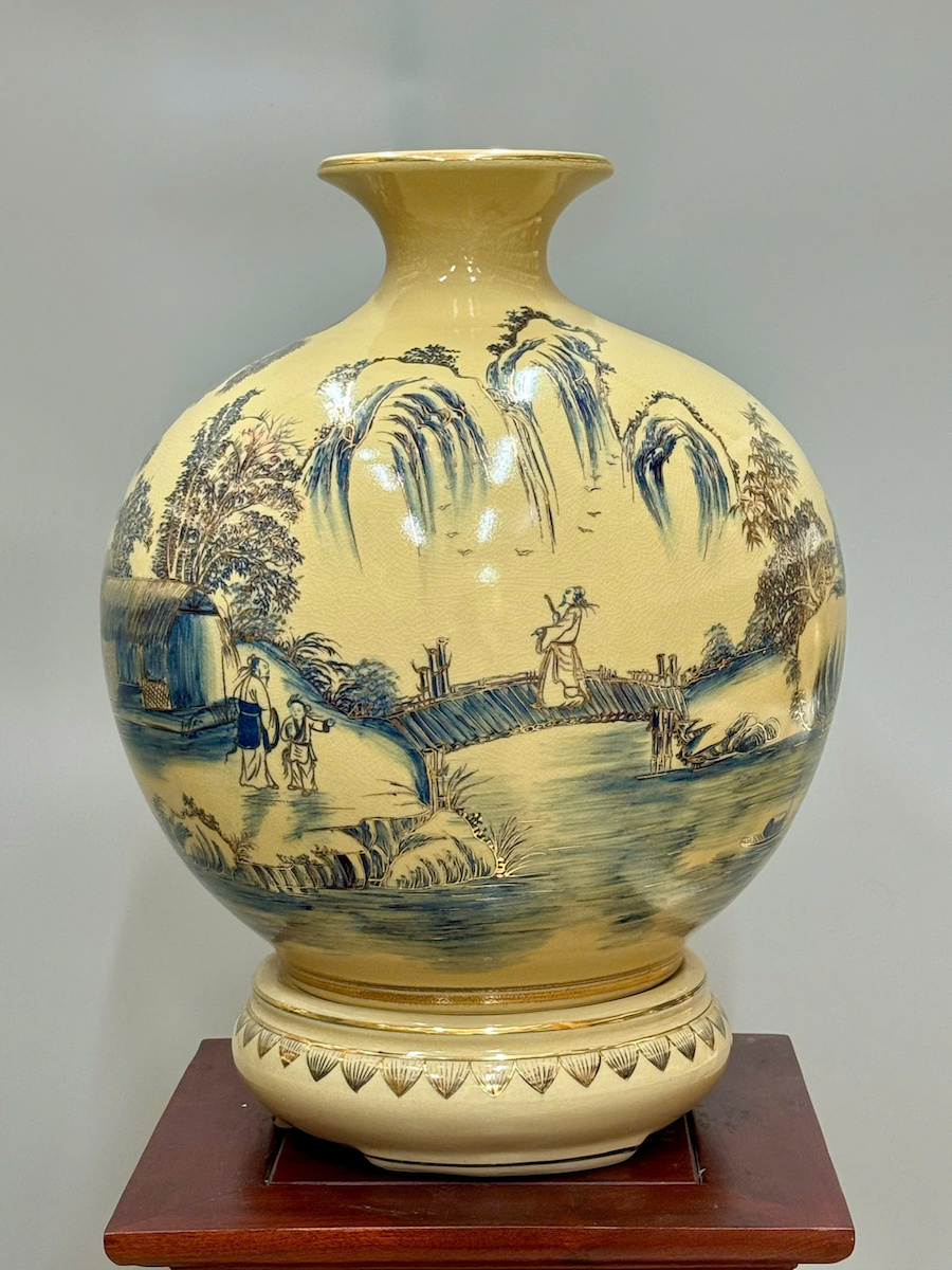 Bình Hút Tài Lộc Sơn Thuỷ Hữu Tình Cao 42cm Gốm Chu Đậu Vẽ Vàng