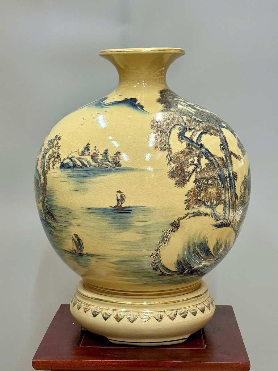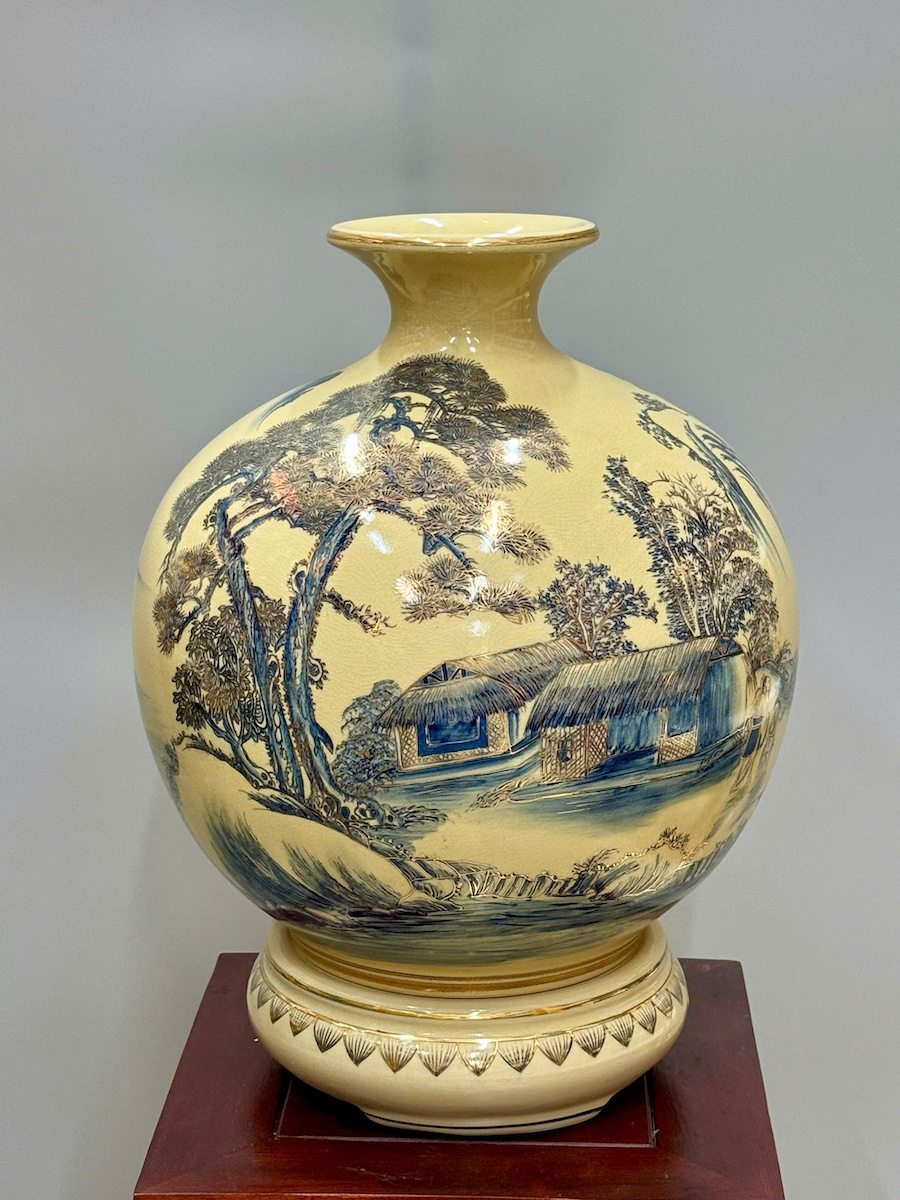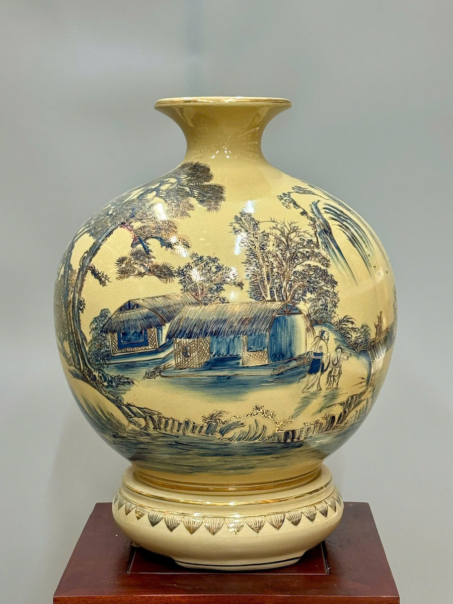 Bình Hút Tài Lộc Sơn Thuỷ Hữu Tình Cao 42cm Gốm Chu Đậu Vẽ Vàng