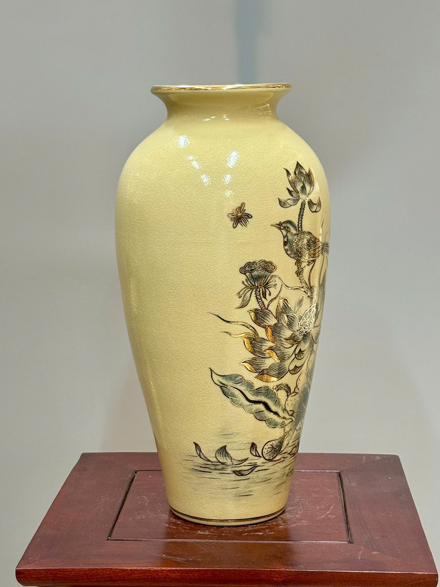 Bình Như Ý Hoa Sen Cao 35cm Gốm Chu Đậu Vẽ Vàng