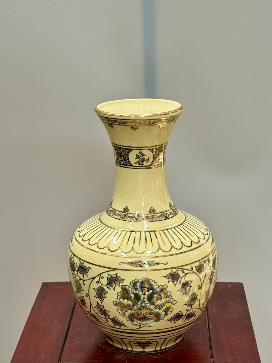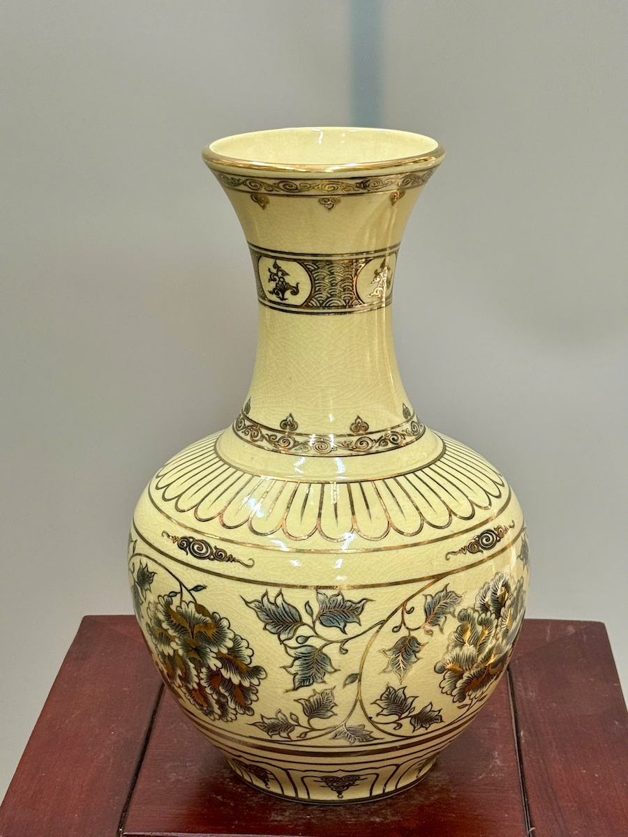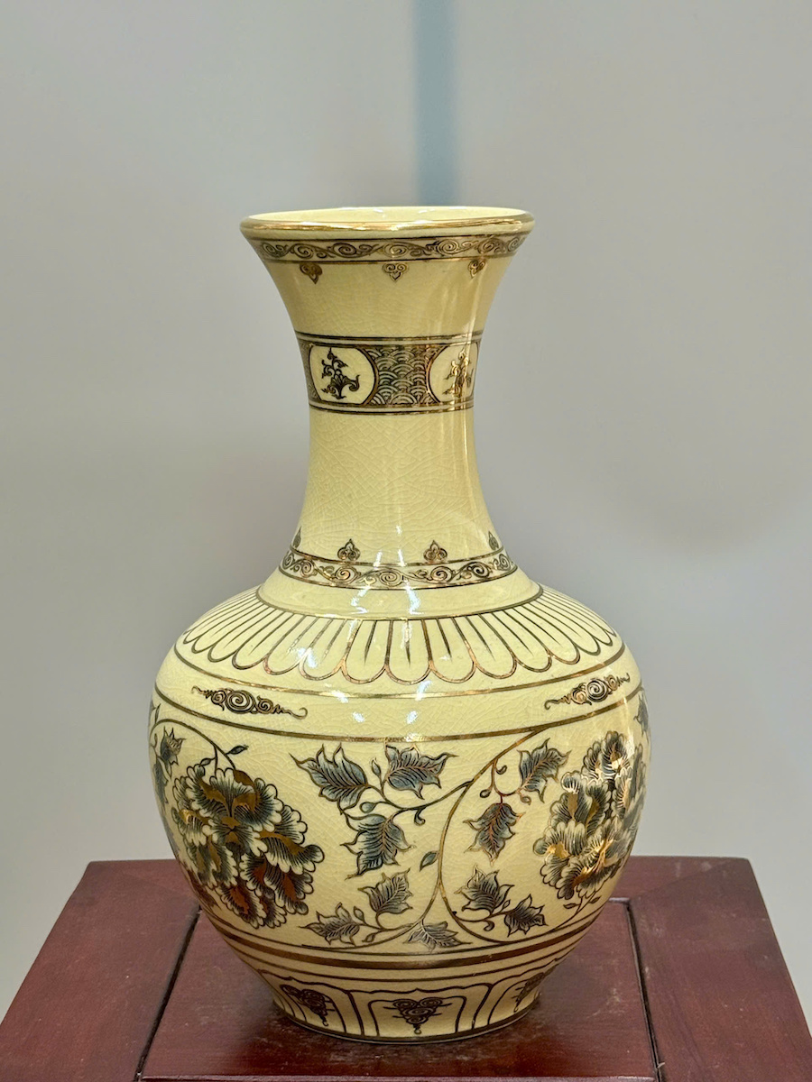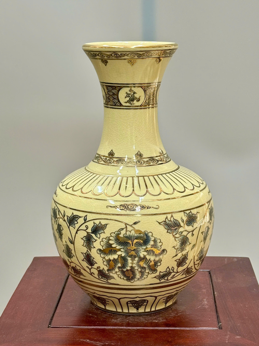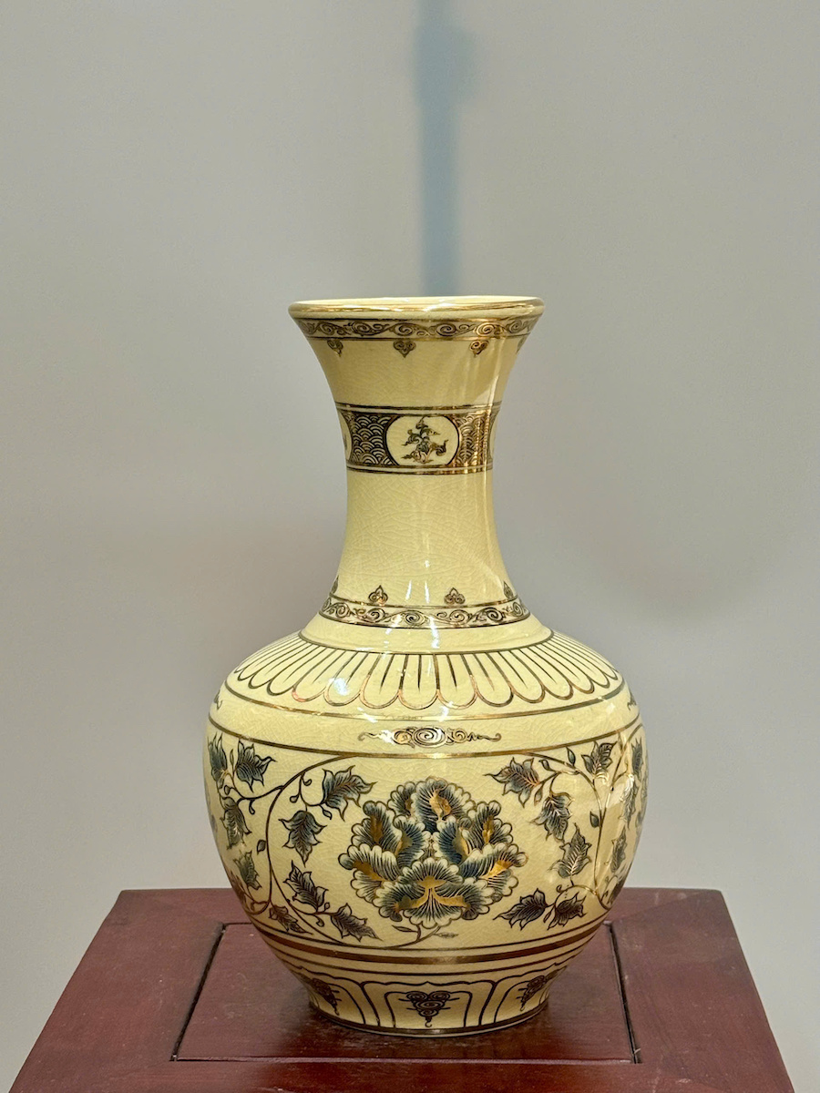 Bình Phú Quý Hoa Phù Dung Cao 30cm Gốm Chu Đậu Vẽ Vàng