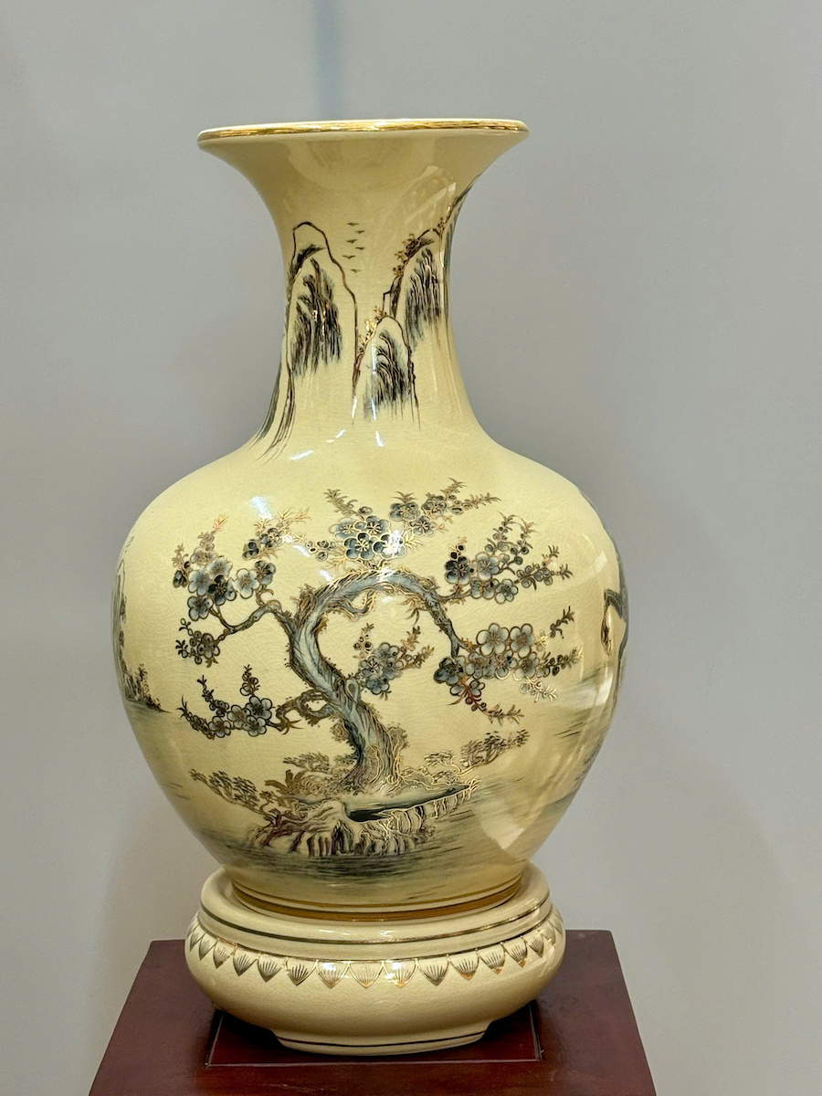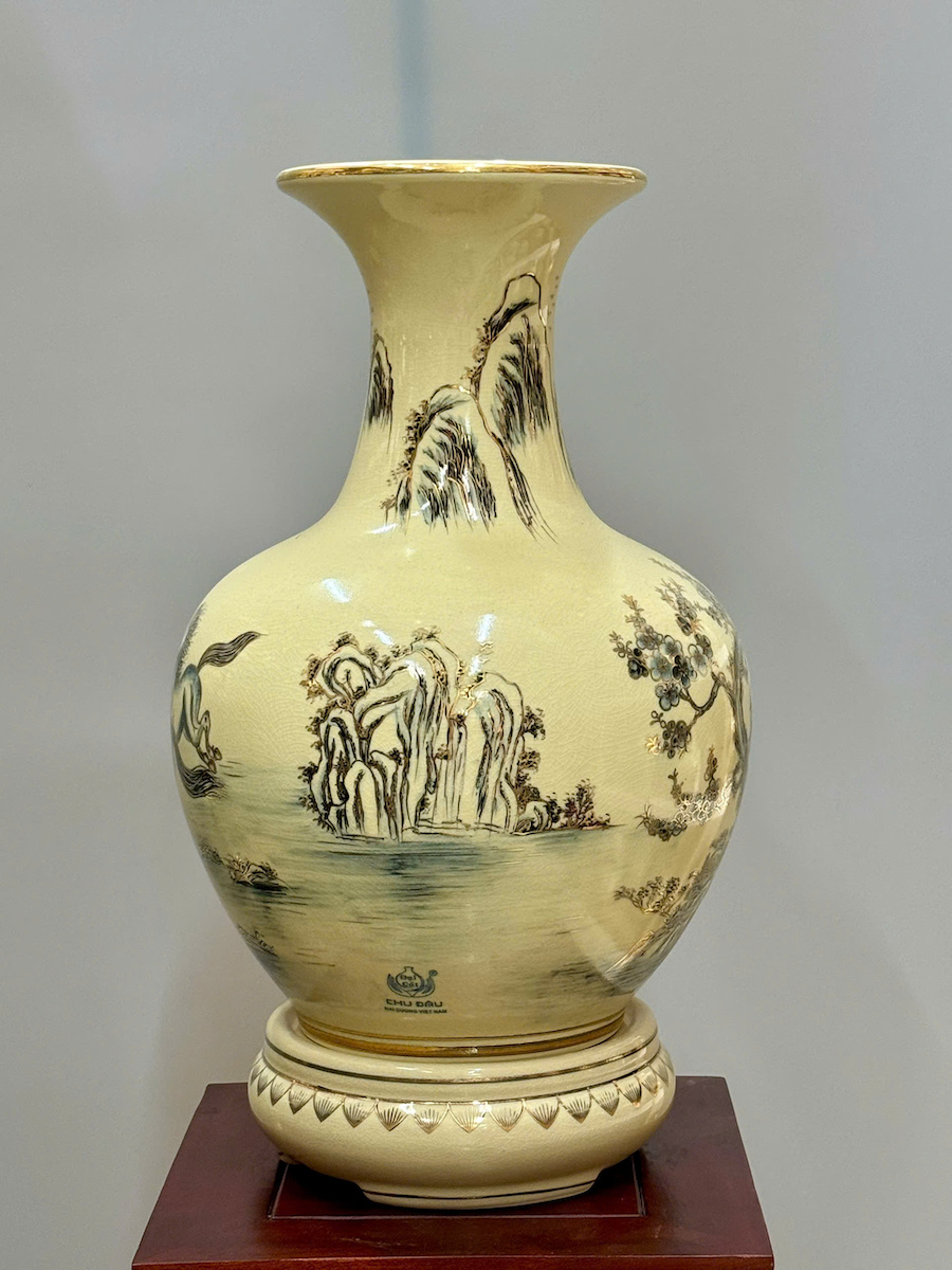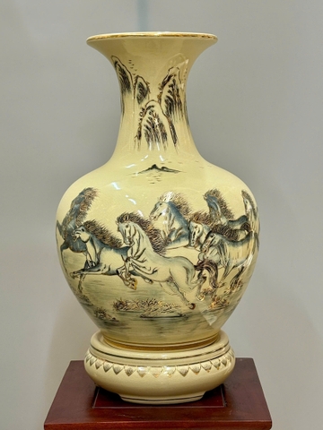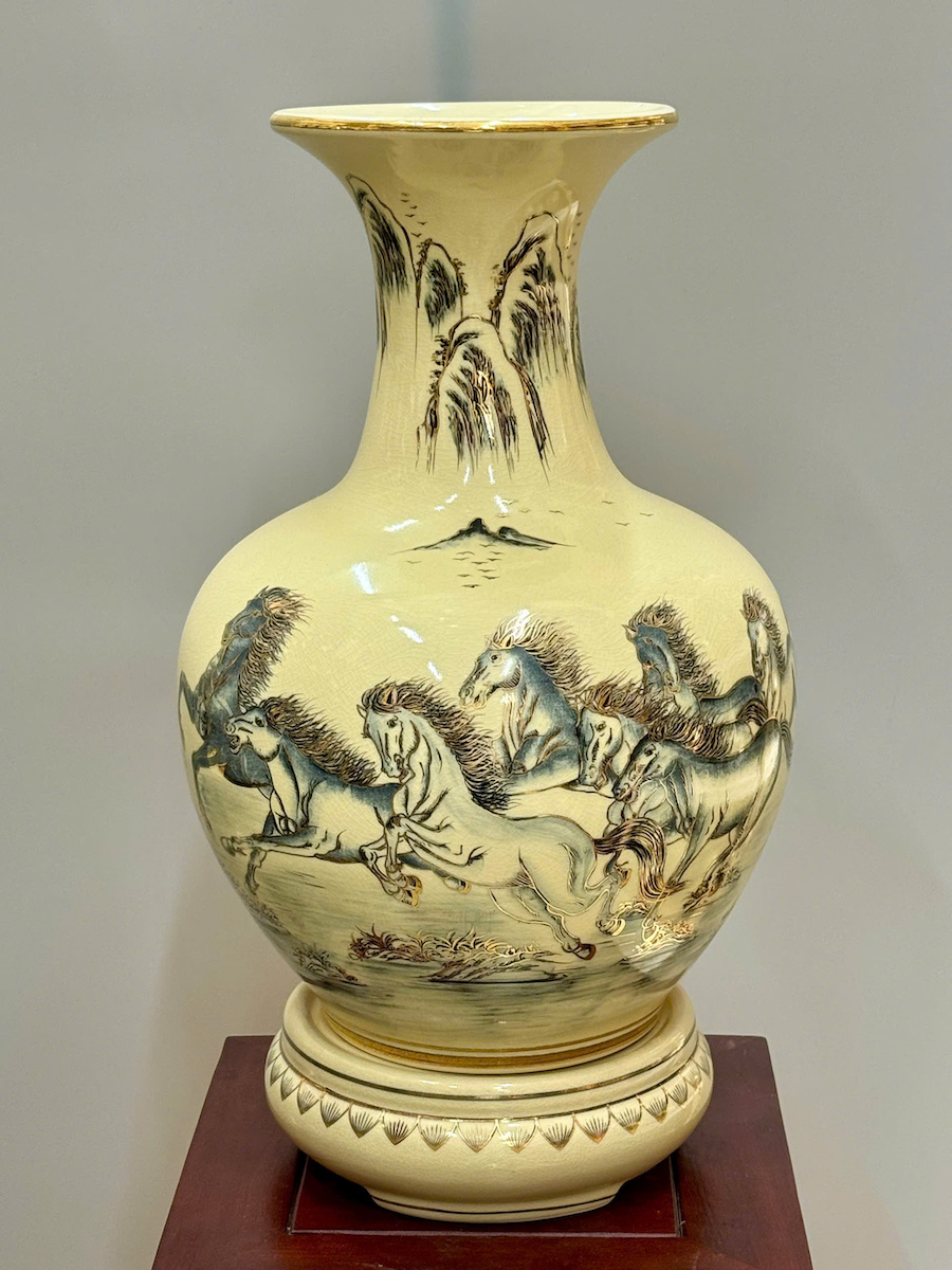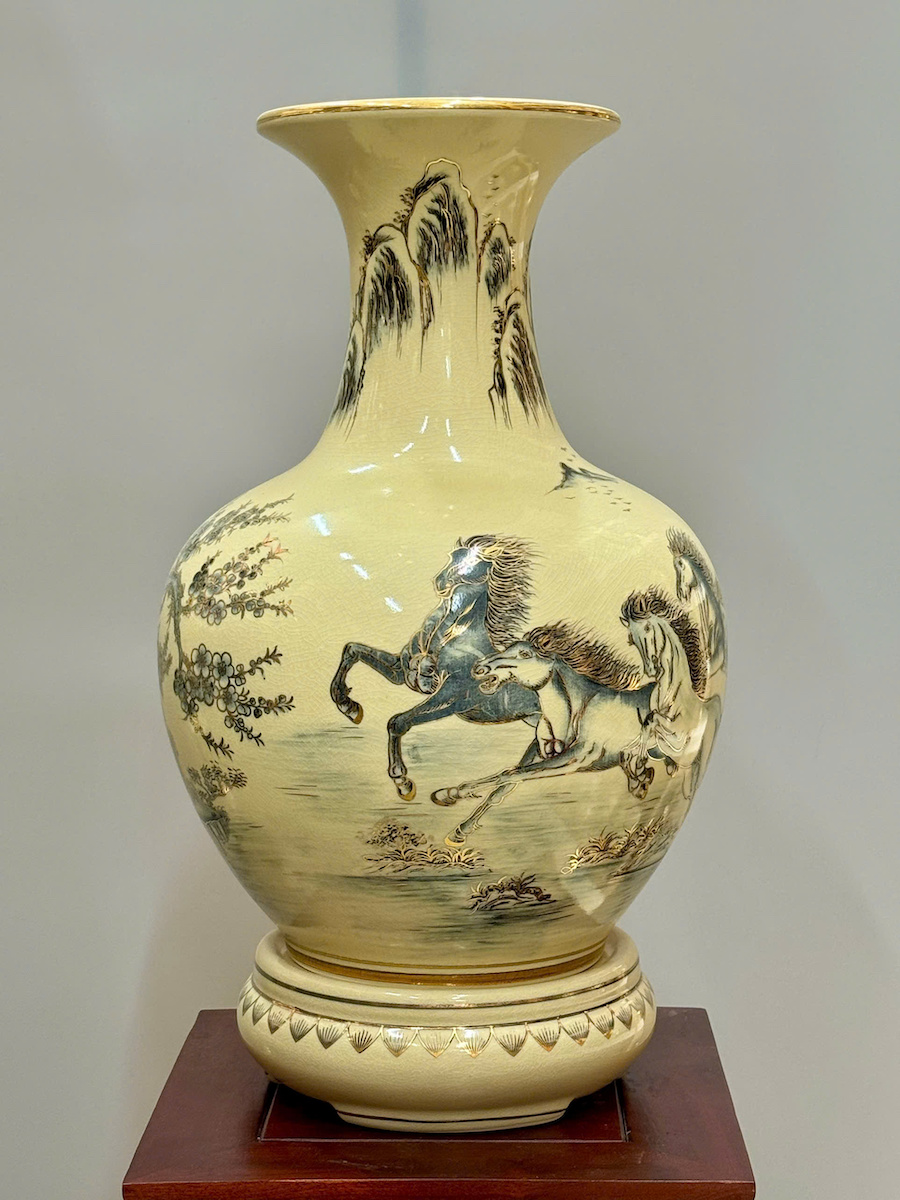 Bình Phú Quý Hoạ Tiết Bát Mã Cao 52cm Gốm Chu Đậu Vẽ Vàng