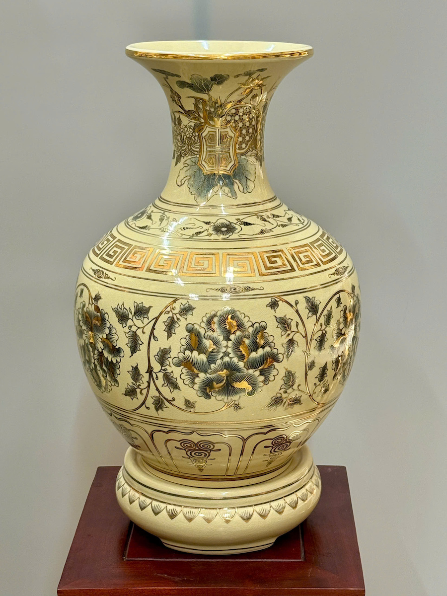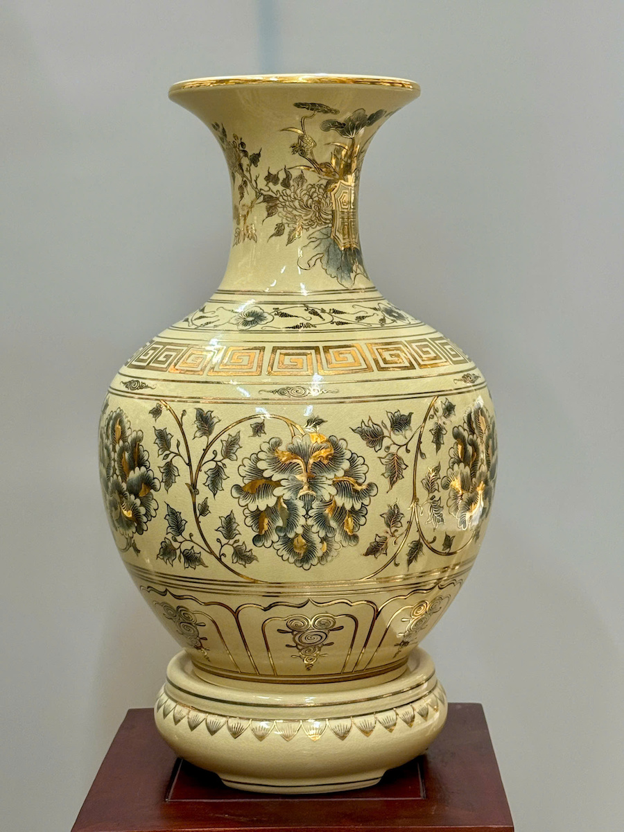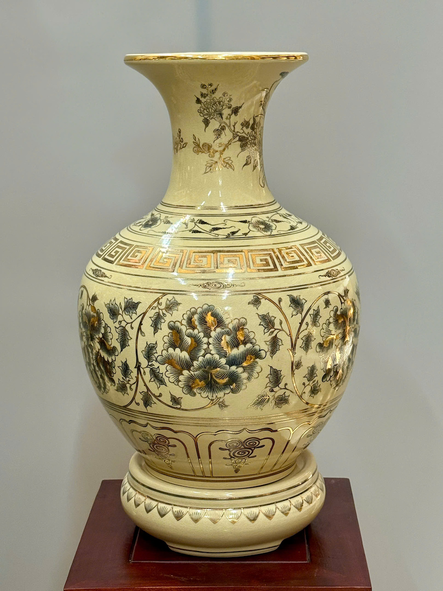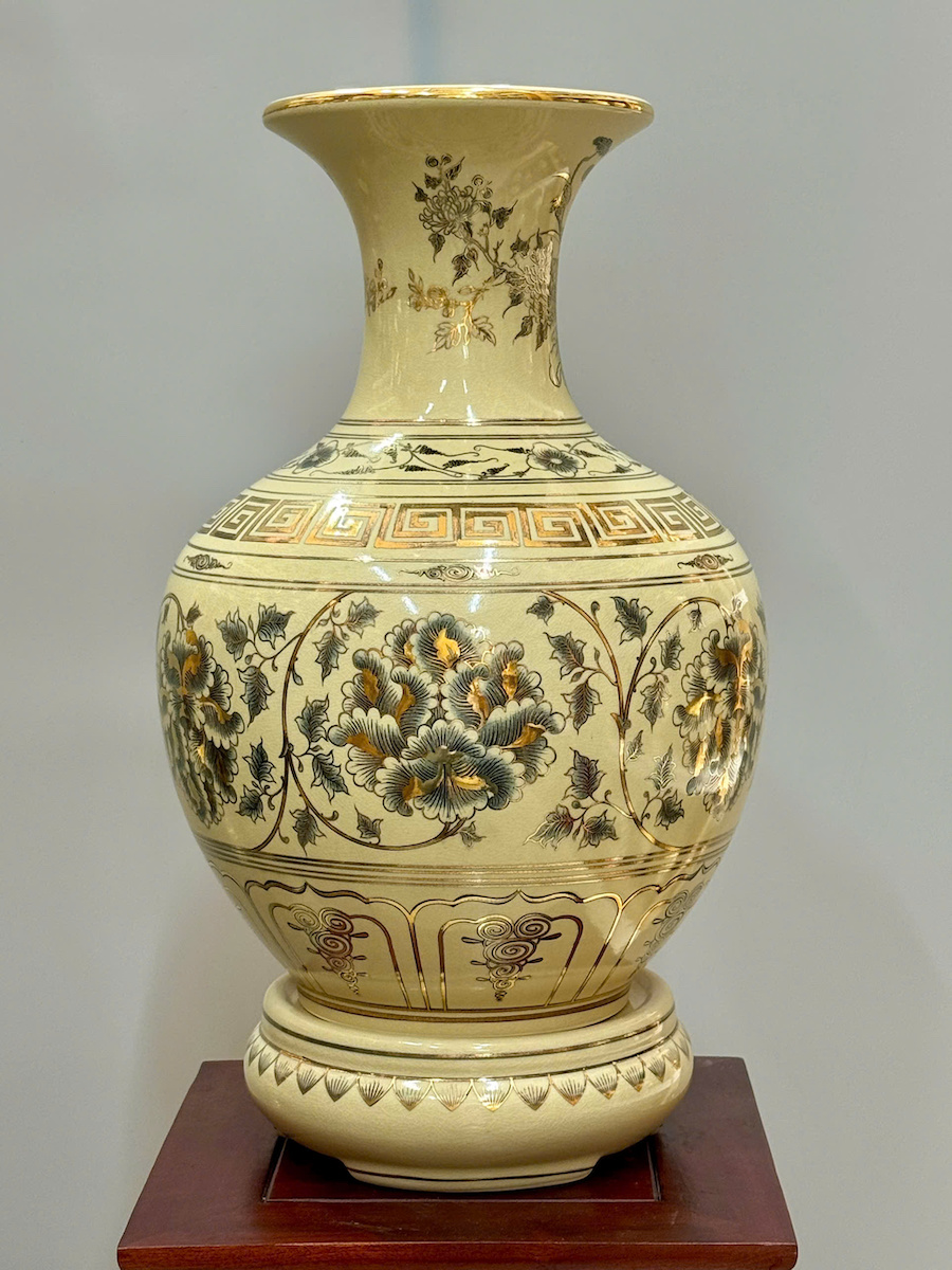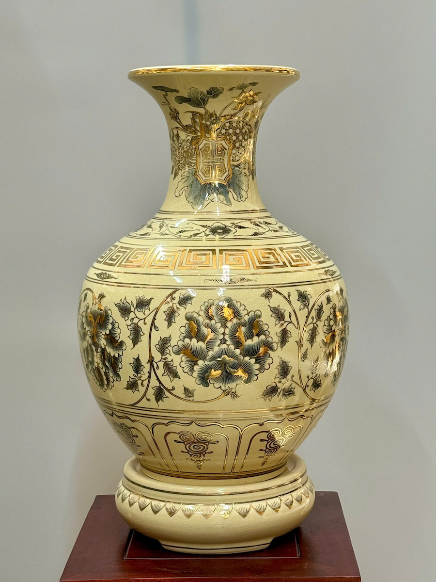 Bình Phú Quý Hoạ Tiết Phù Dung Cao 52cm Gốm Chu Đậu Vẽ Vàng