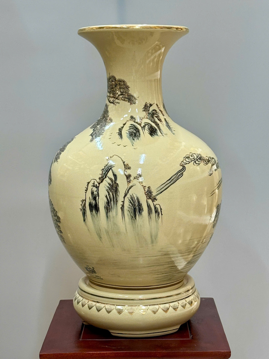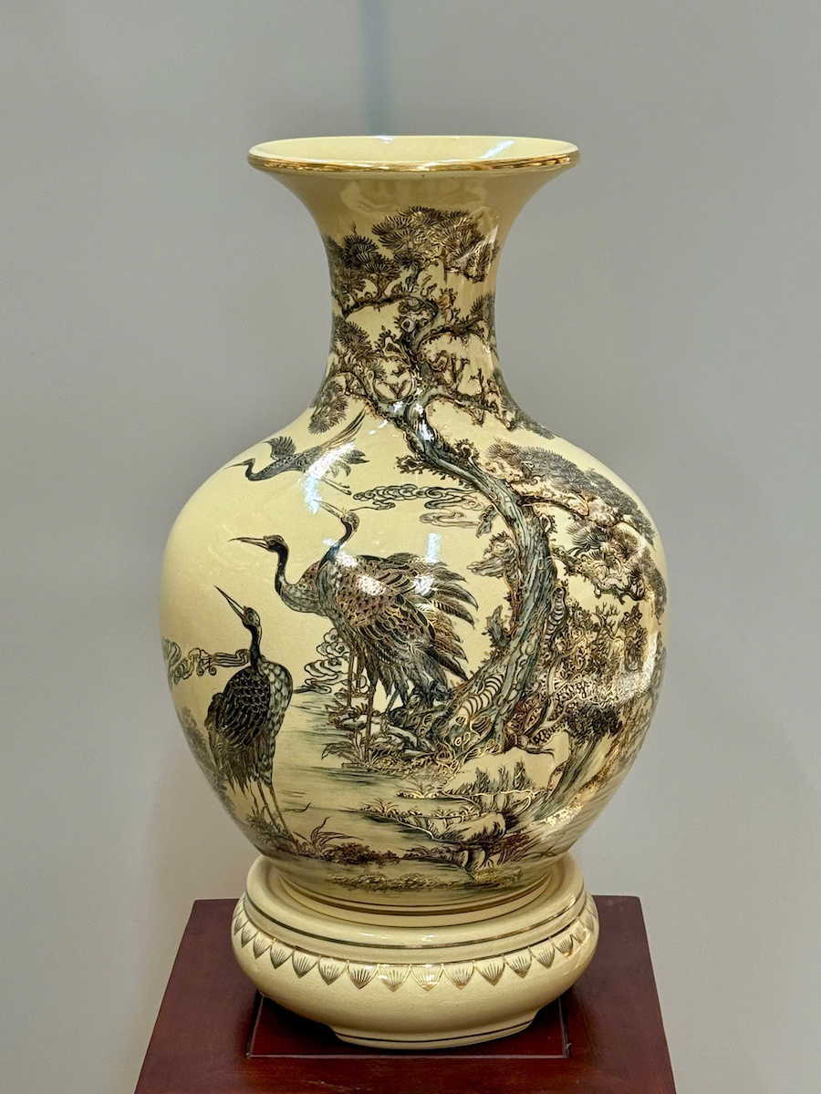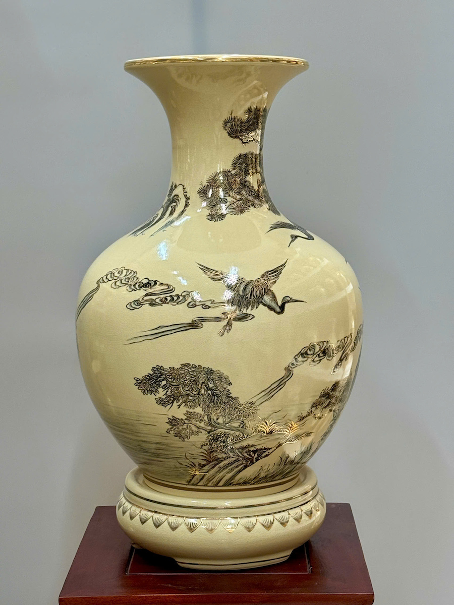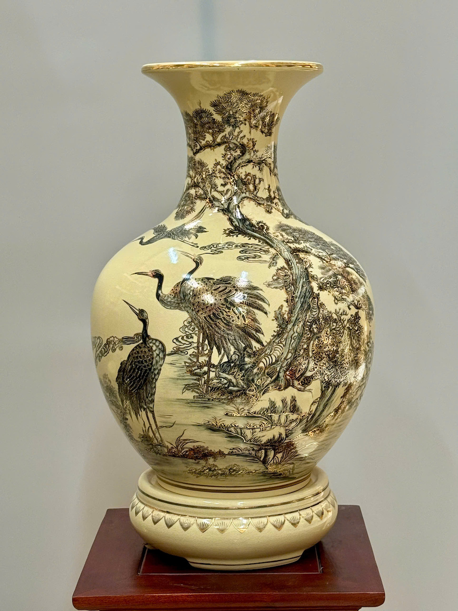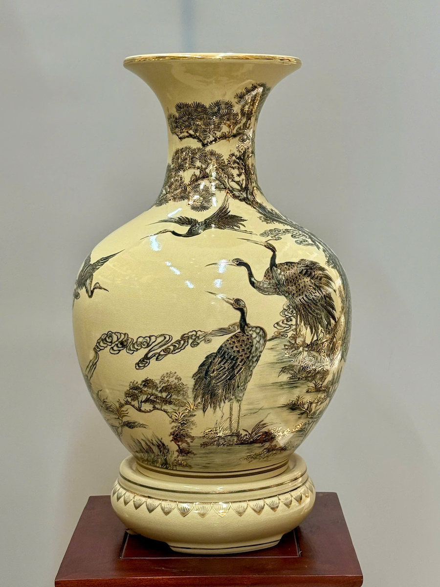 Bình Phú Quý Hoạ Tiết Tùng Hạc Cao 52cm Gốm Chu Đậu Vẽ Vàng