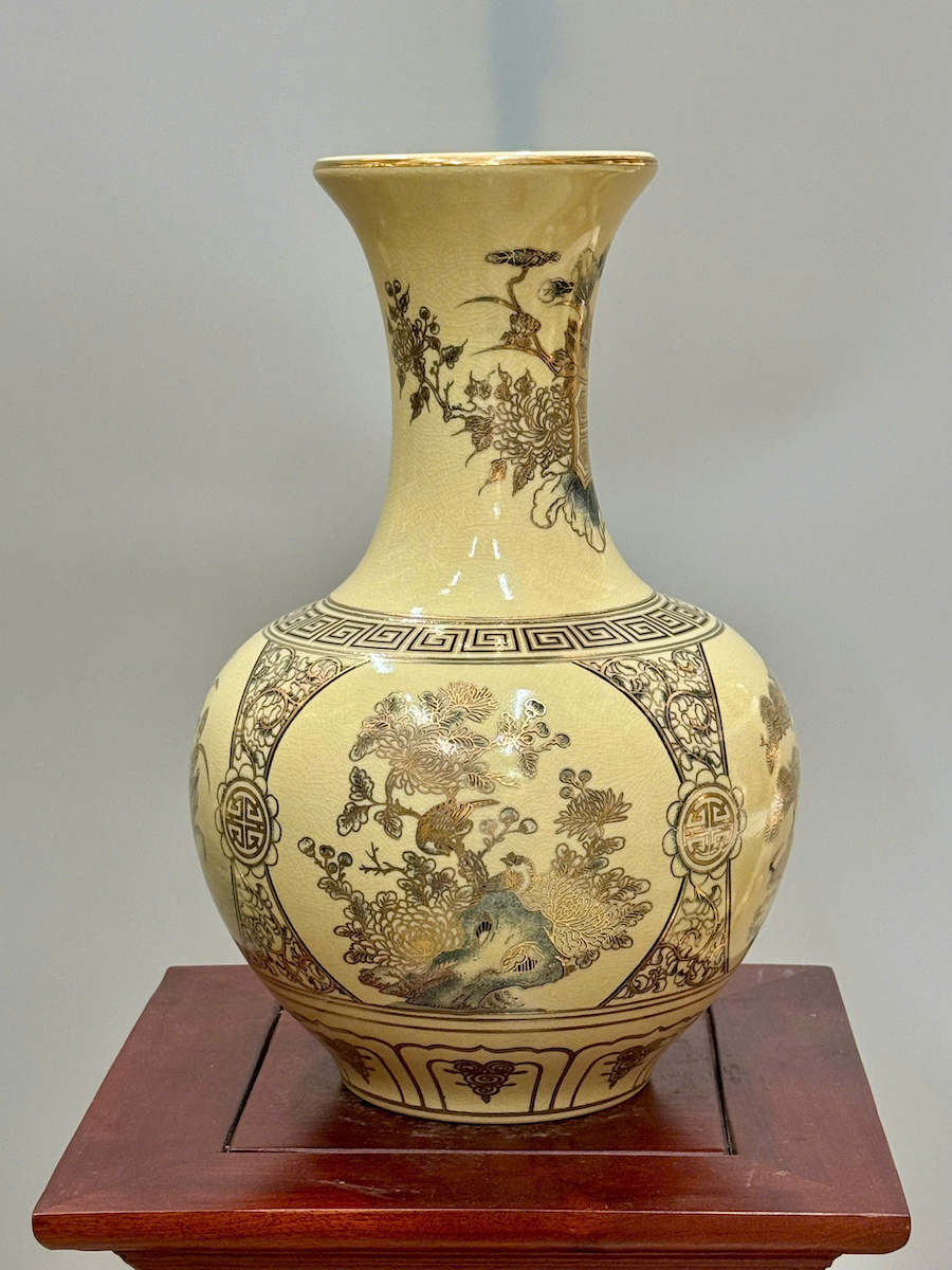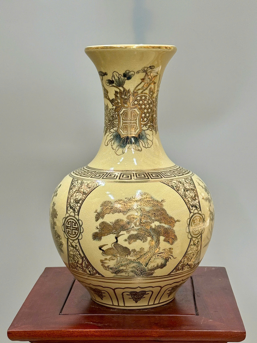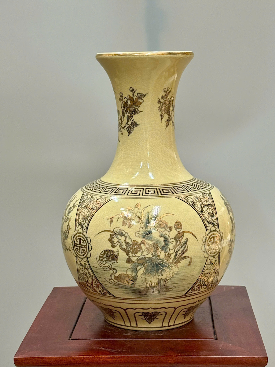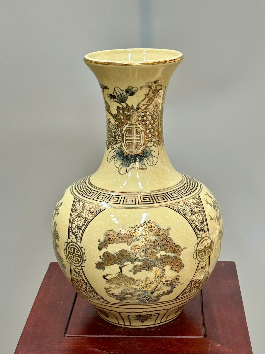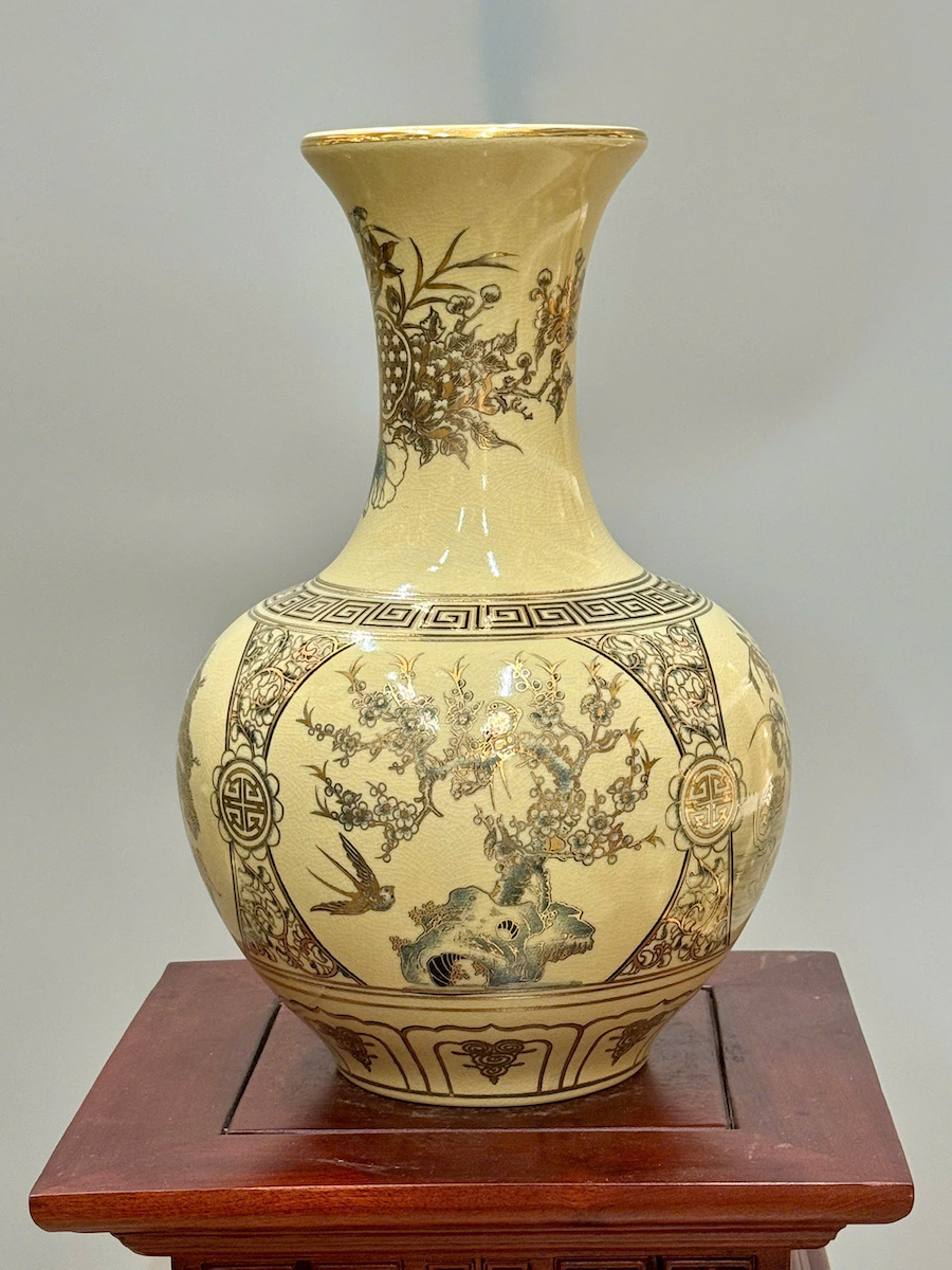 Bình Phú Quý Tứ Cảnh Bốn Mùa Cao 35cm Gốm Vẽ Vàng