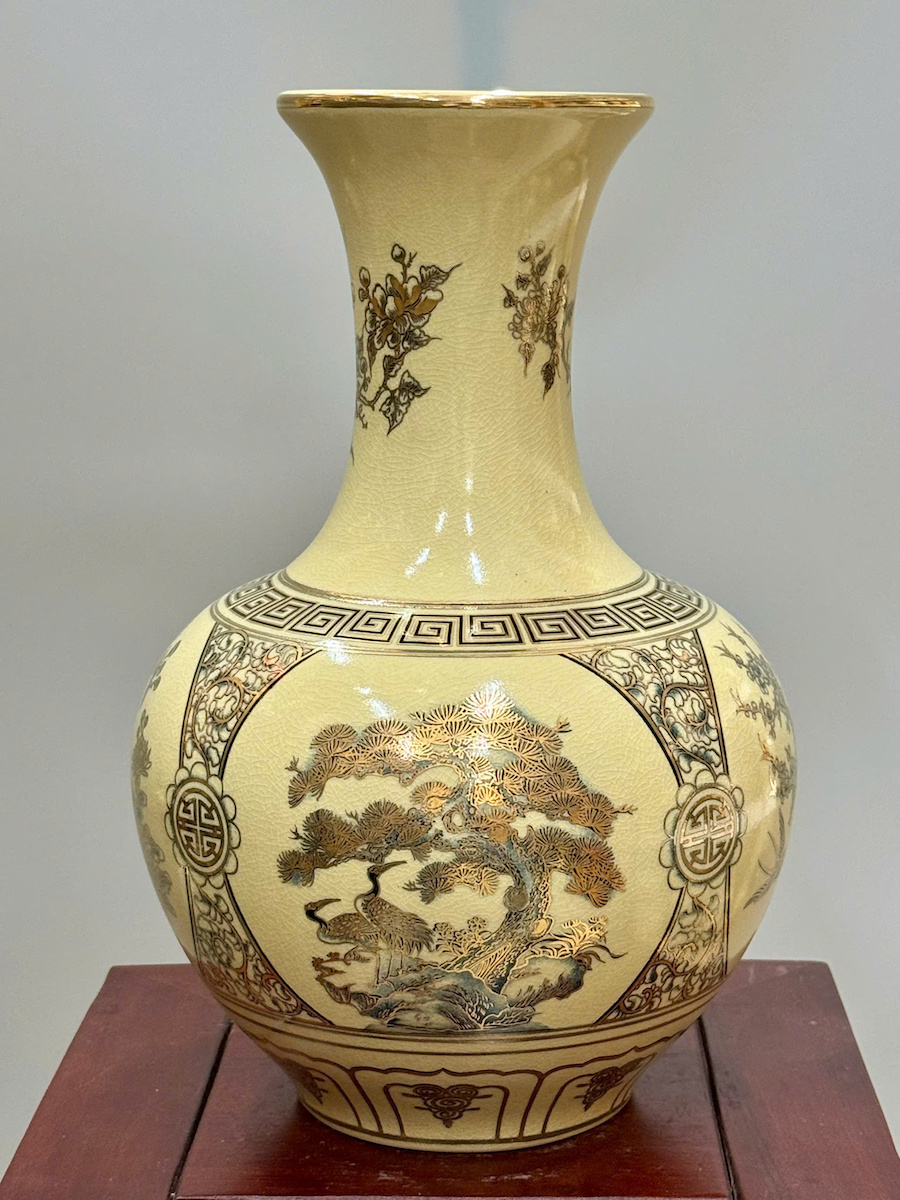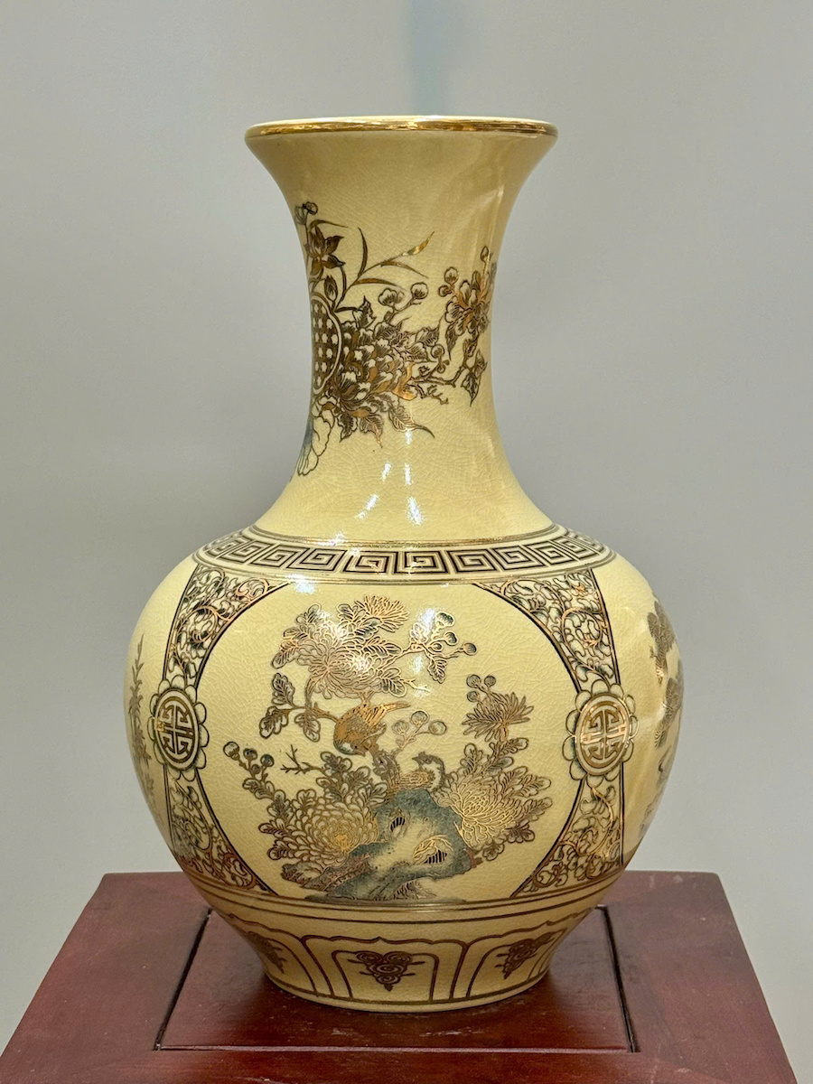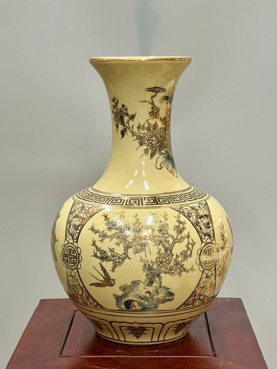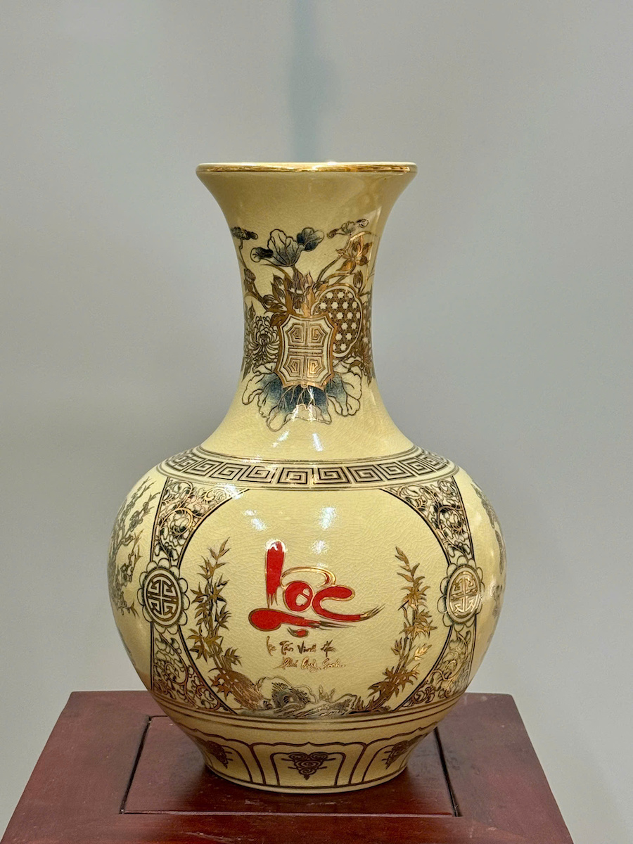 Bình Phú Quý Tứ Cảnh Chữ Phúc Cao 35cm Gốm Chu Đậu Vẽ Vàng