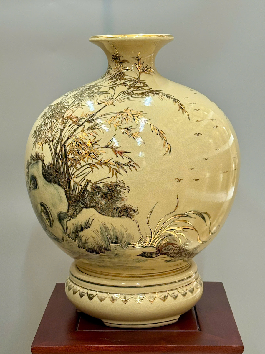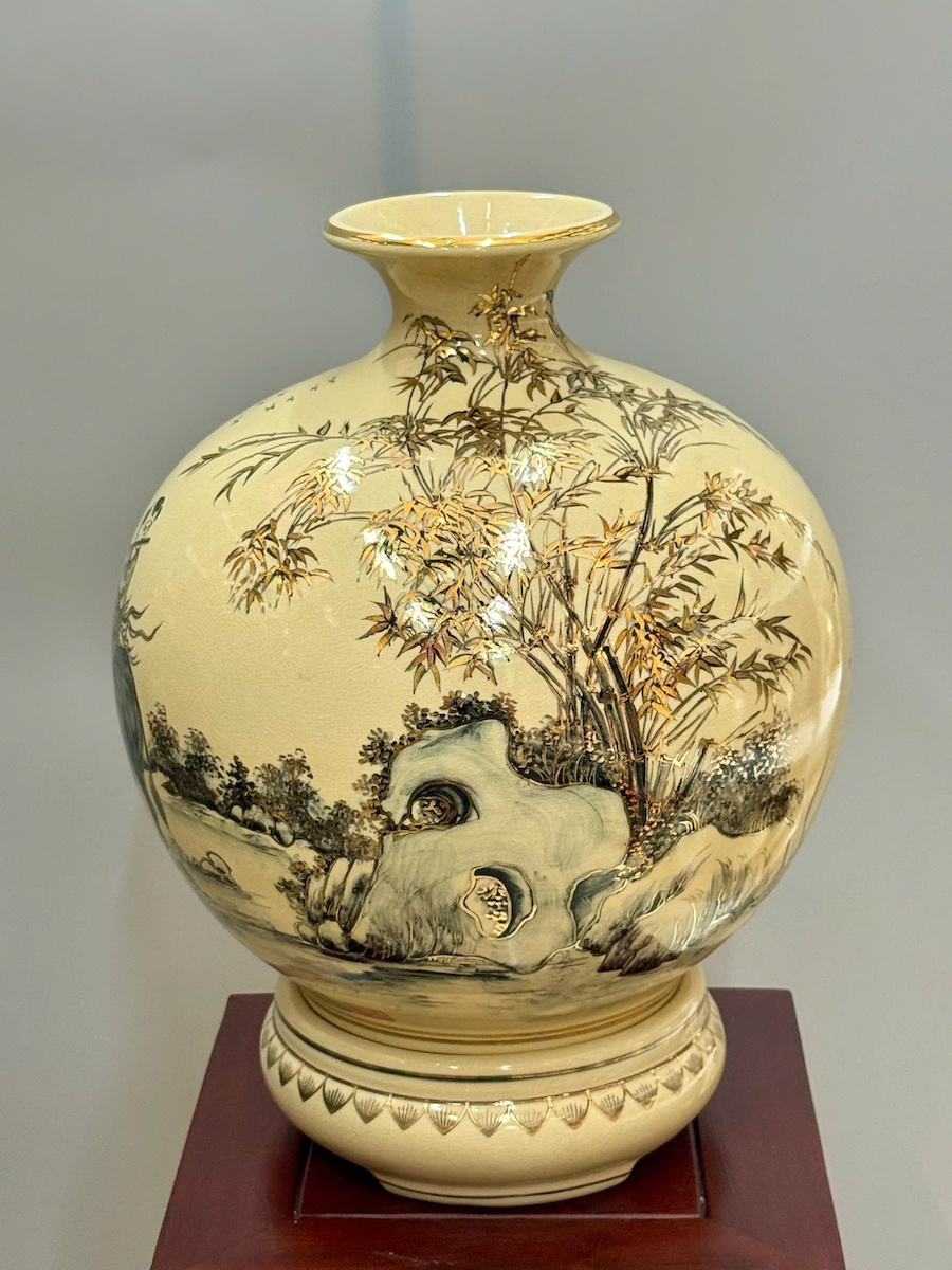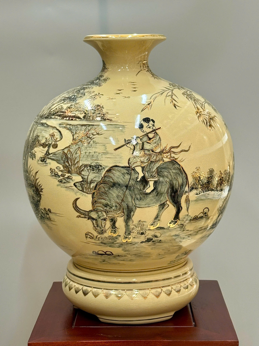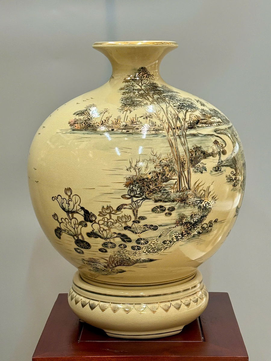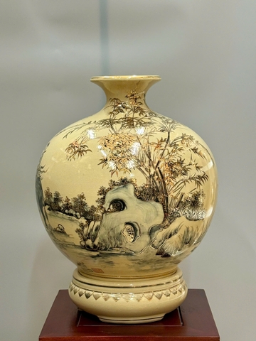 Bình Tài Lộc Phong Cảnh Vẽ Tự Do Cao 42cm Gốm Chu Đậu Vẽ Vàng