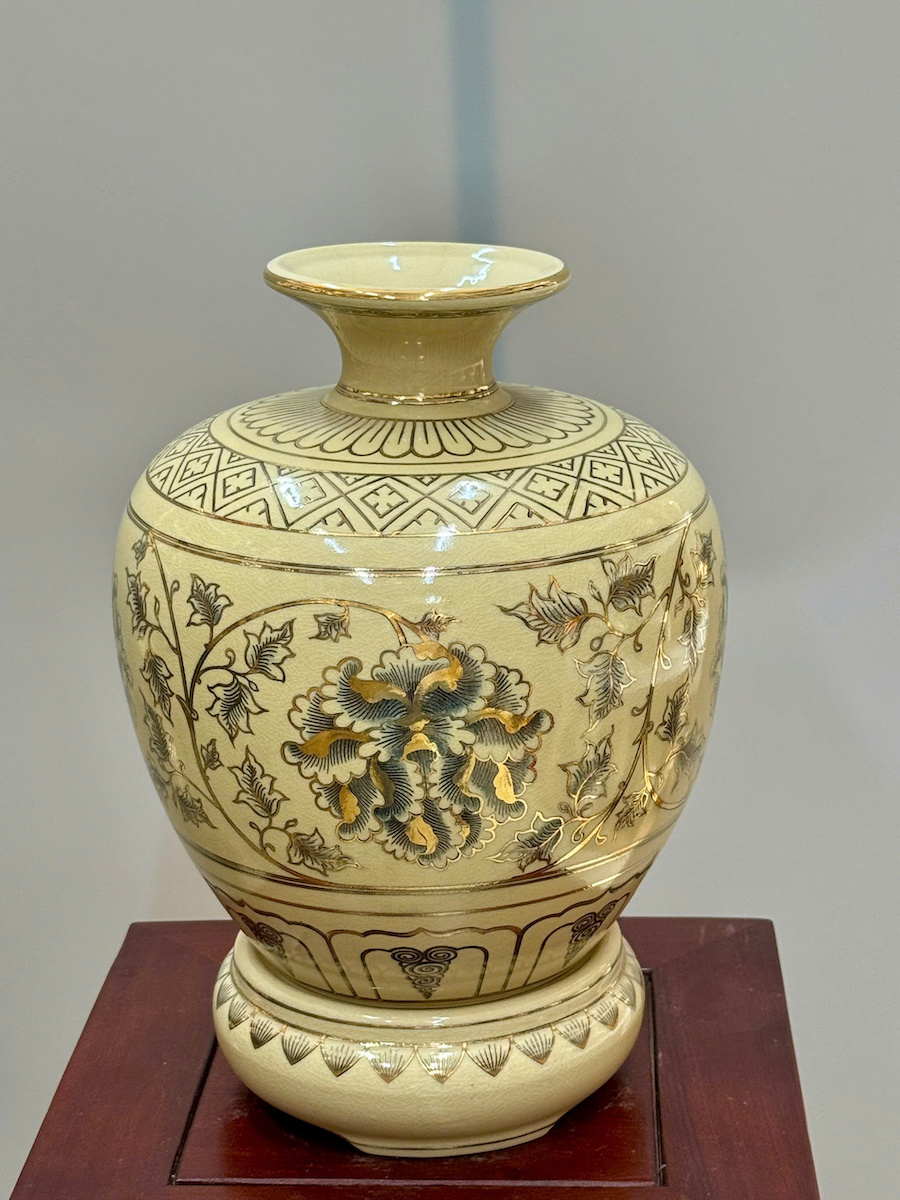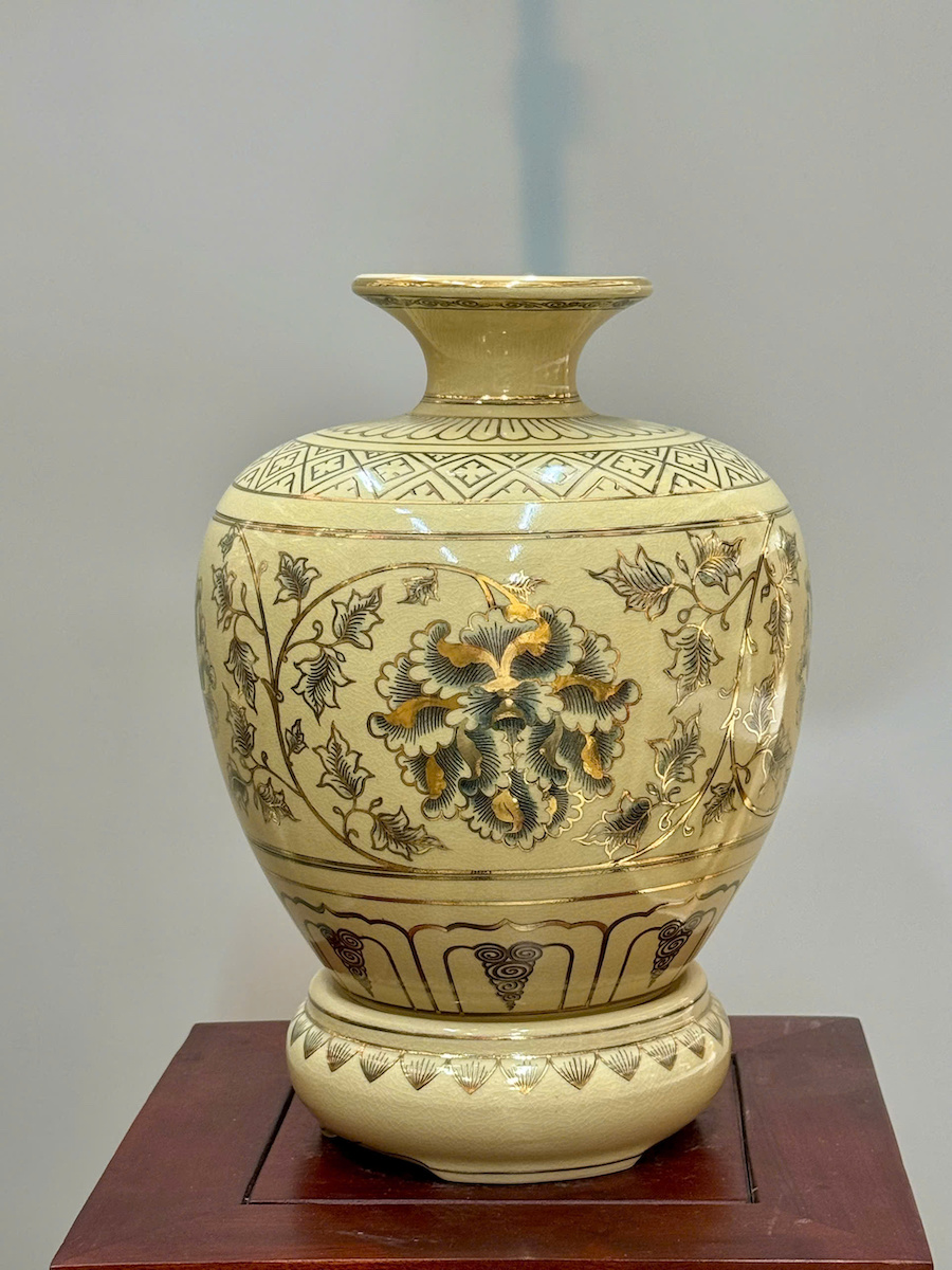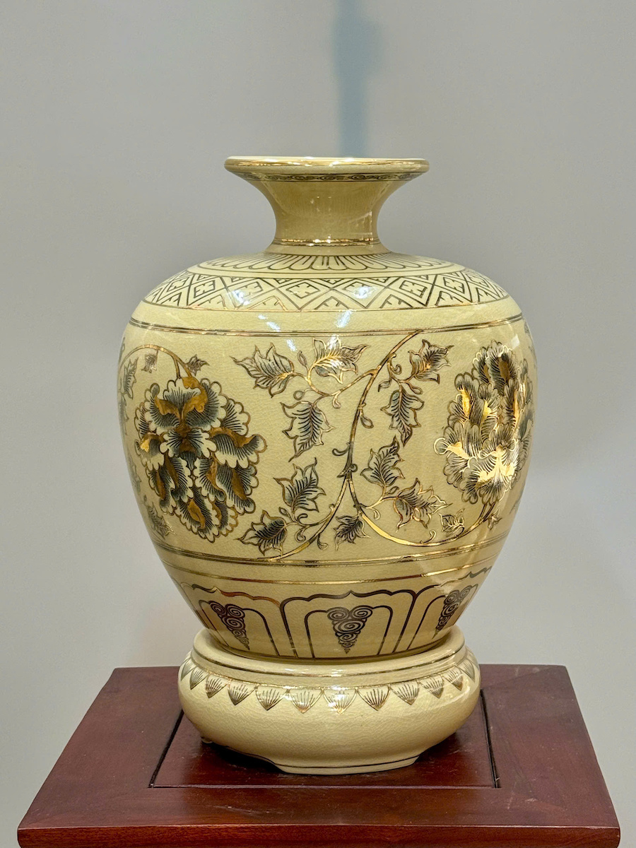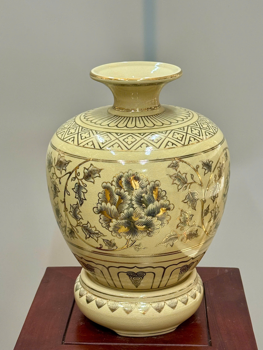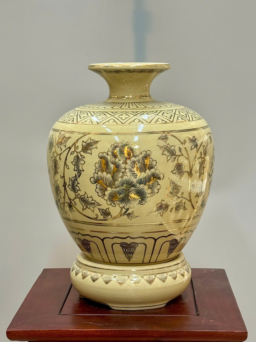 Bình Vạn Phúc Hoạ Tiết Hoa Phù Dung Cao 34cm Gốm Vẽ Vàng