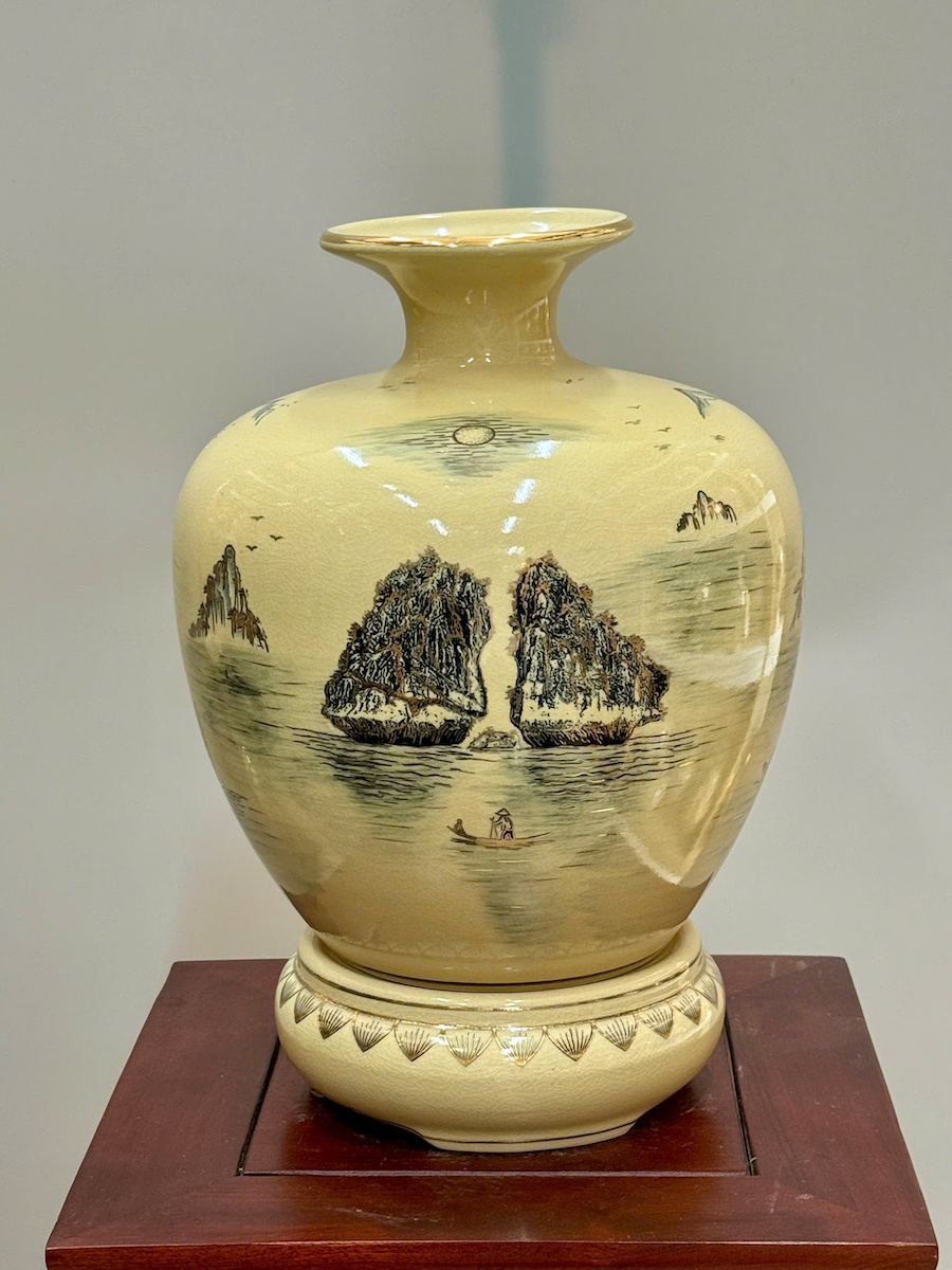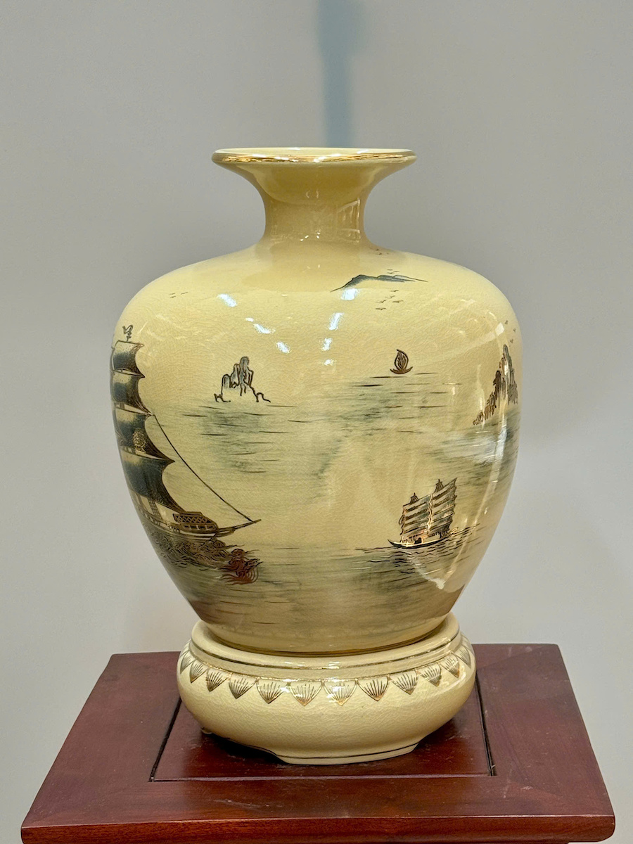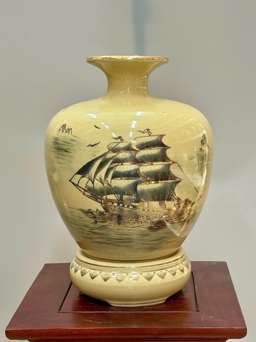 Bình Vạn Phúc Hoạ Tiết Thuận Buồm Cao 34cm Gốm Chu Đậu Vẽ Vàng