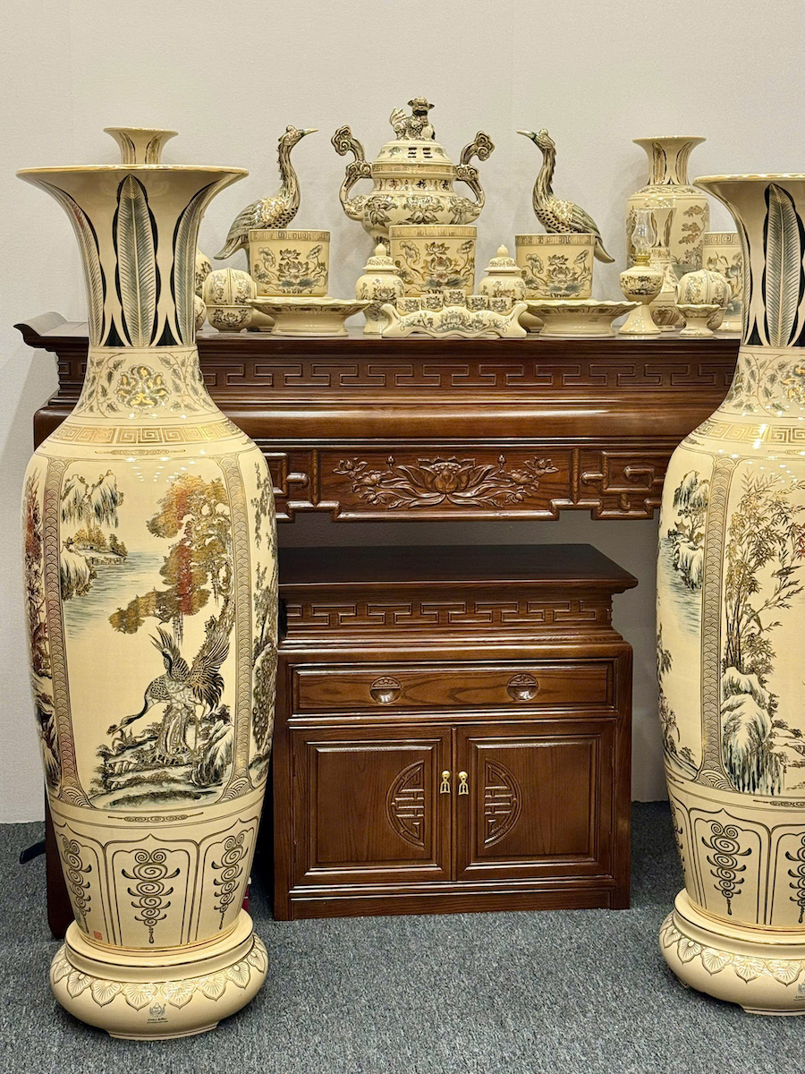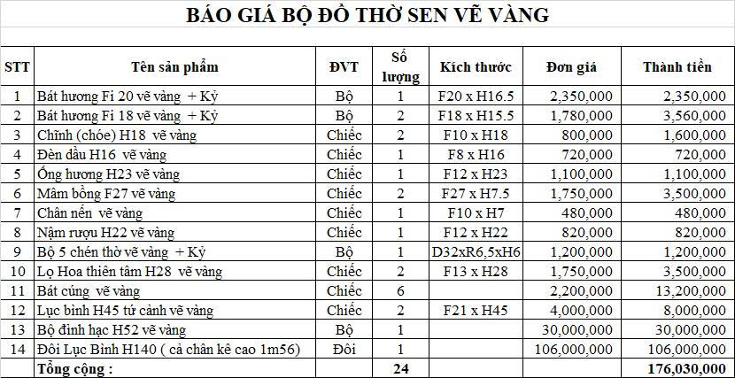 Bộ Đồ Thờ Bát Hương Hoa Sen Cho Ban Thờ 1,75m đến 1,97m + Đôi Lục Bình 2 Bên