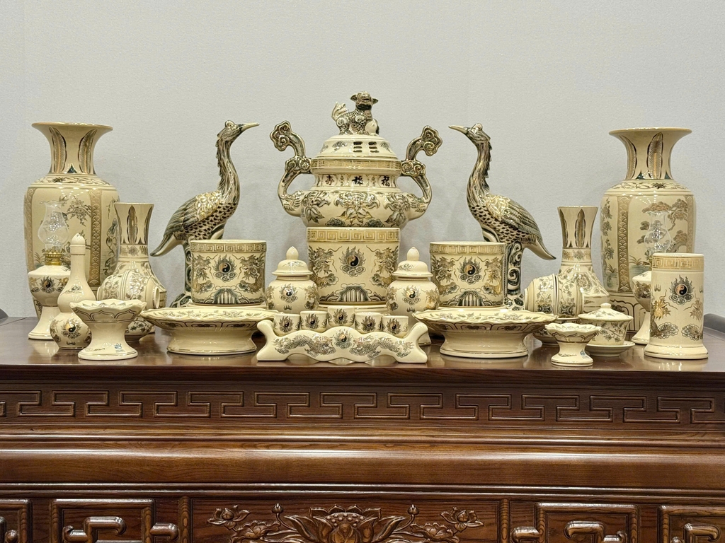 Bộ Thờ Ban 1m97 + Bộ Đỉnh Hạc Vẽ vàng 24K