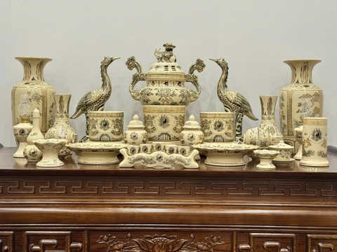 Chất liệu: Gốm men rạnvẽ vàng 24K