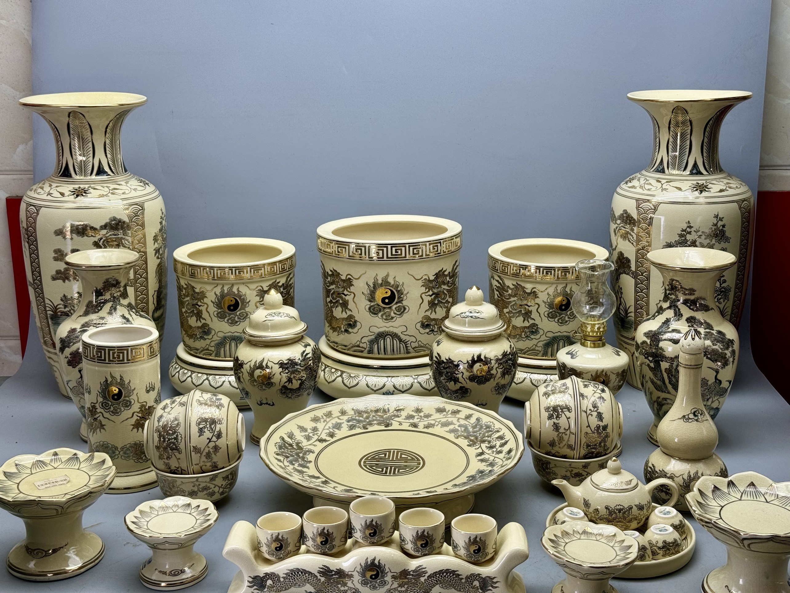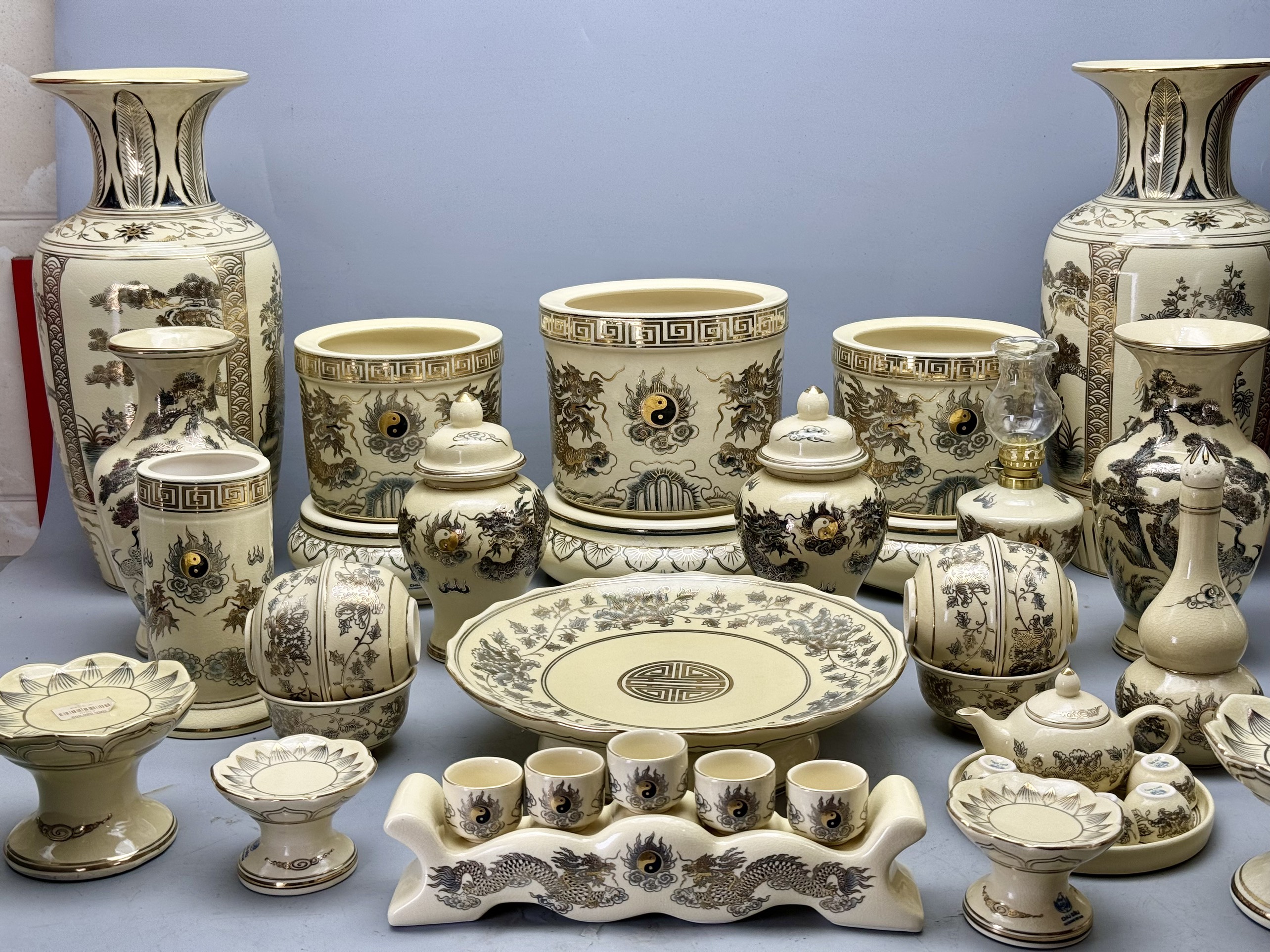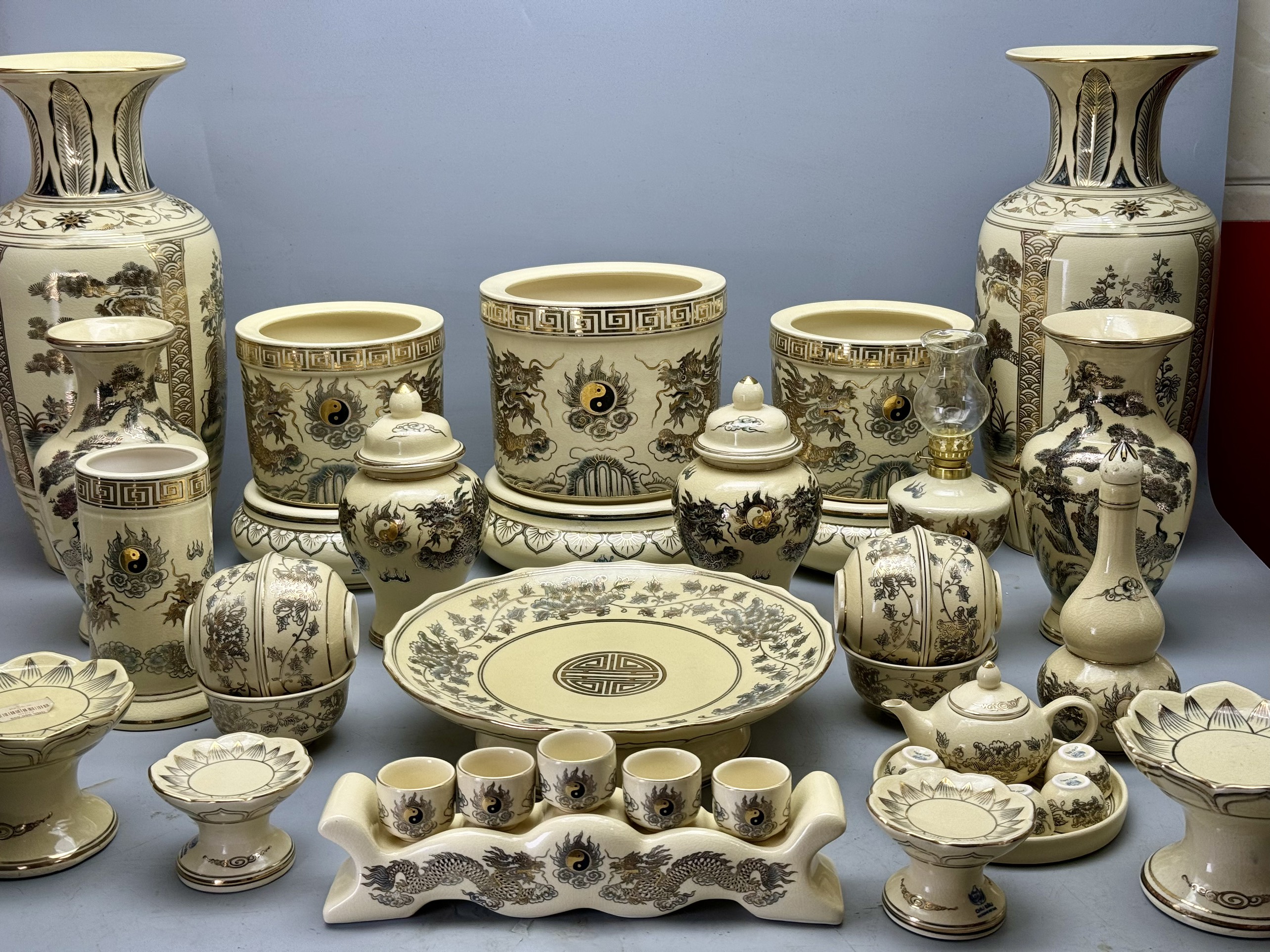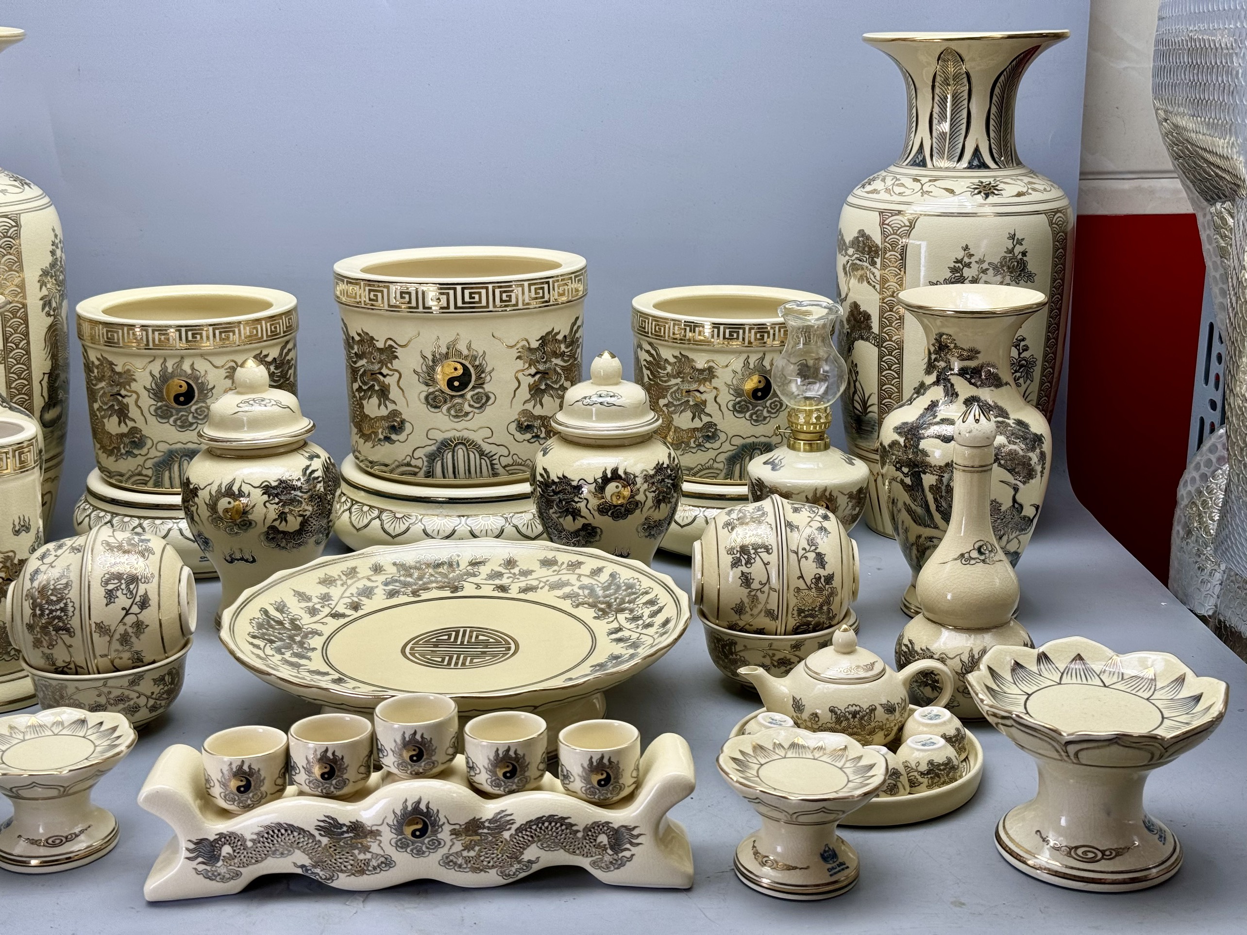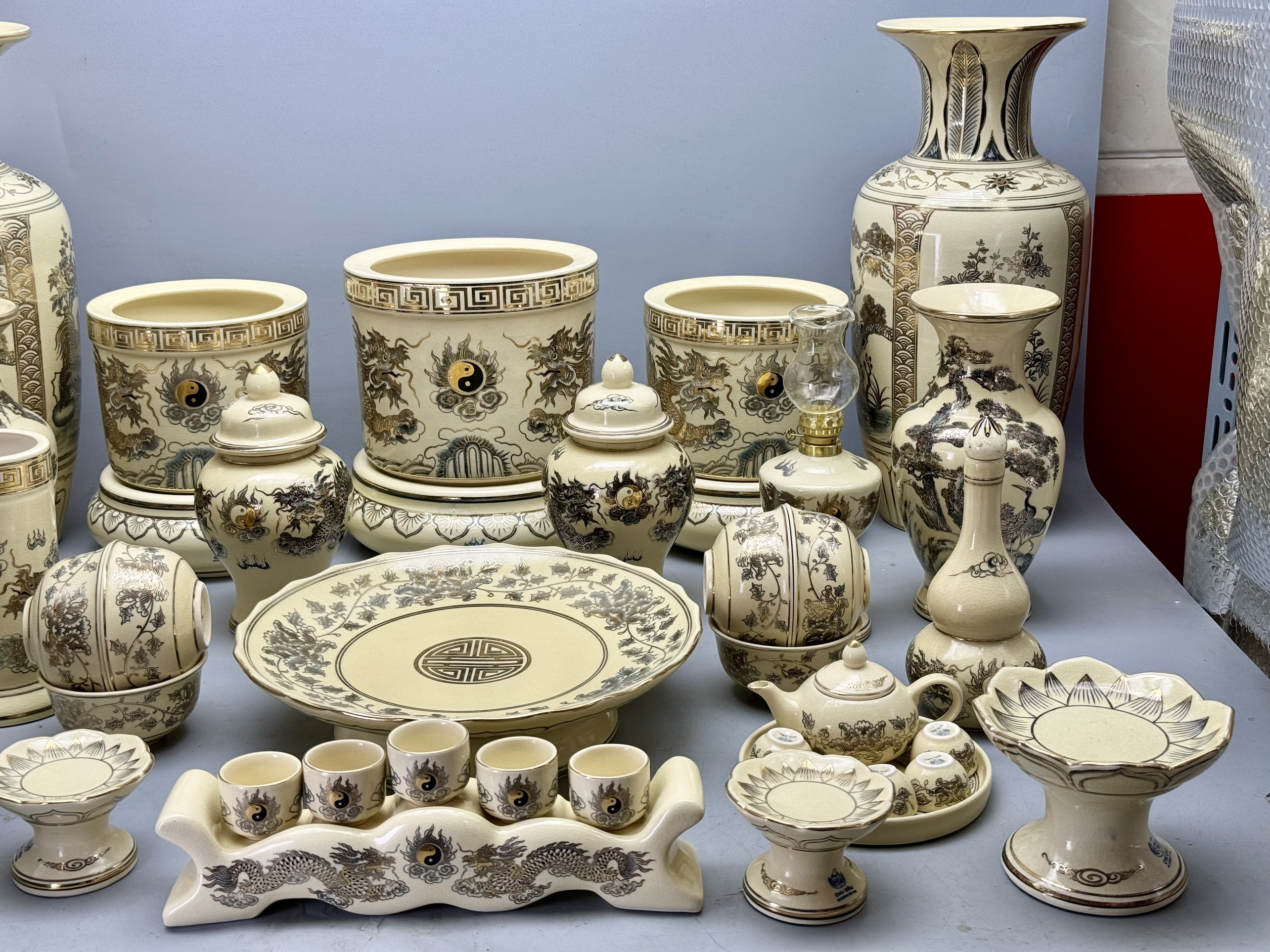 Bộ Thờ Cho Ban Thờ 1m55 đến 1m75 men rạn vẽ vàng 24K