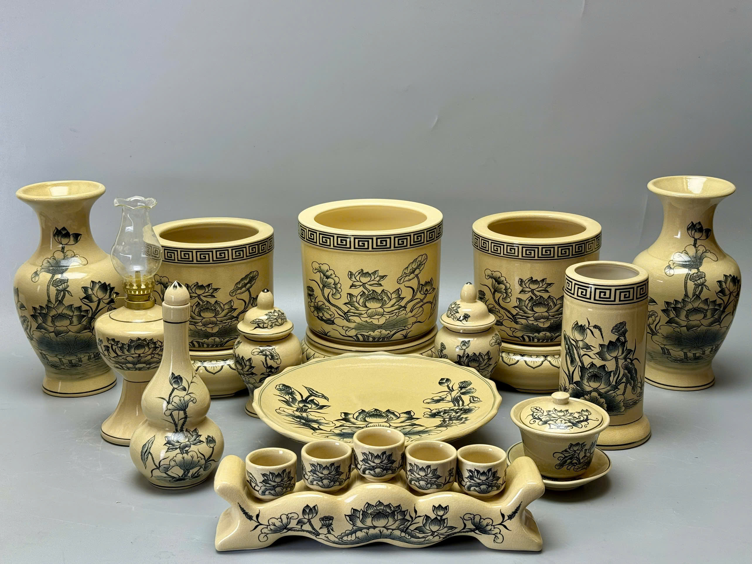 Bộ thờ hoạ tiết hoa sen ban thờ 1m57-1m75 men truyền thống