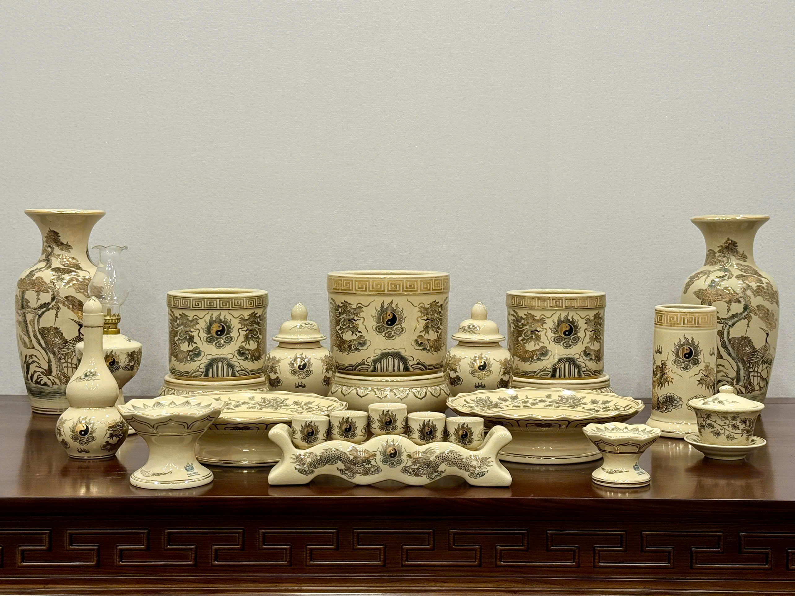 Bộ Thờ Ban 1m97 + Bộ Đỉnh Hạc Vẽ vàng 24K