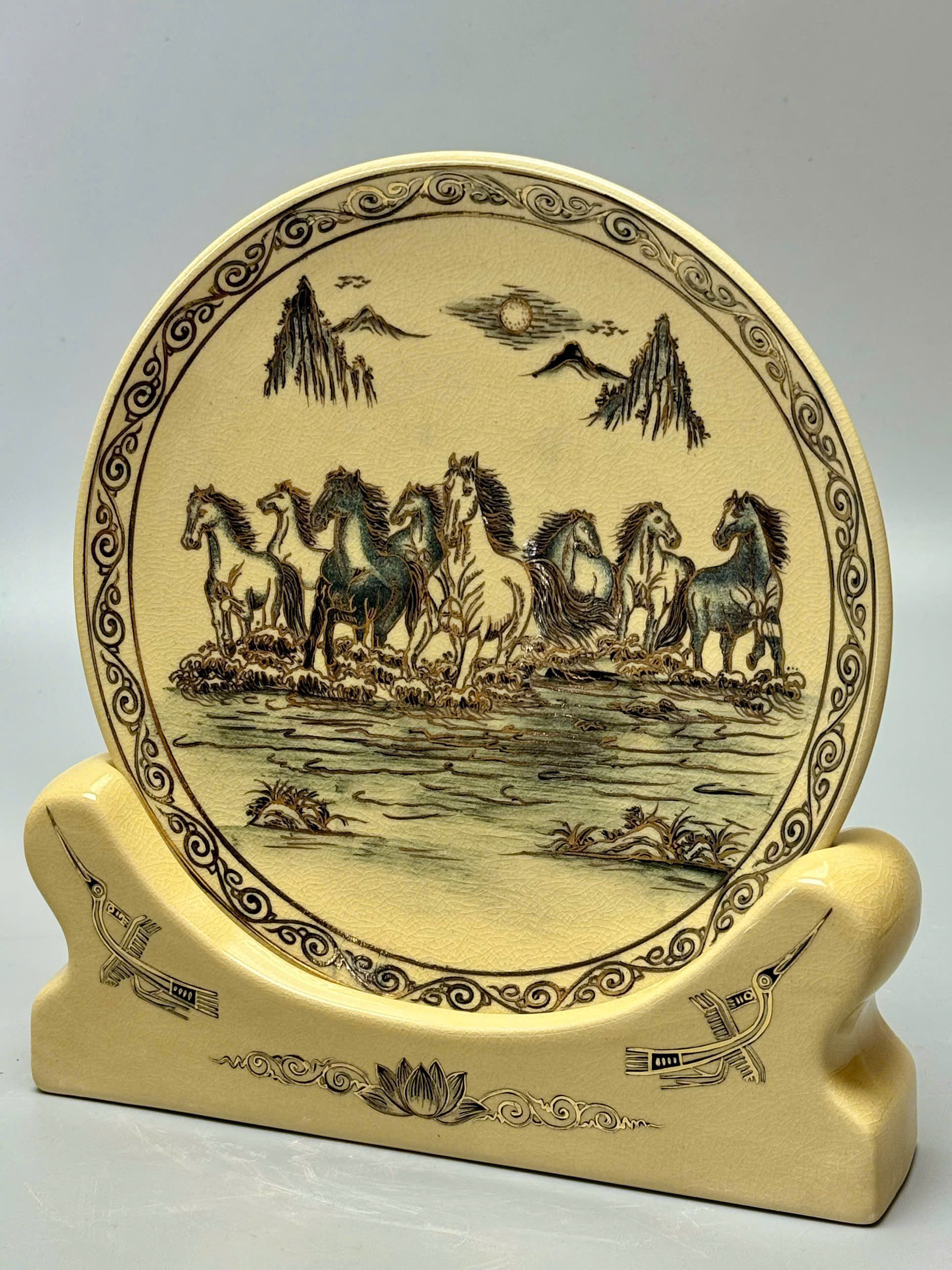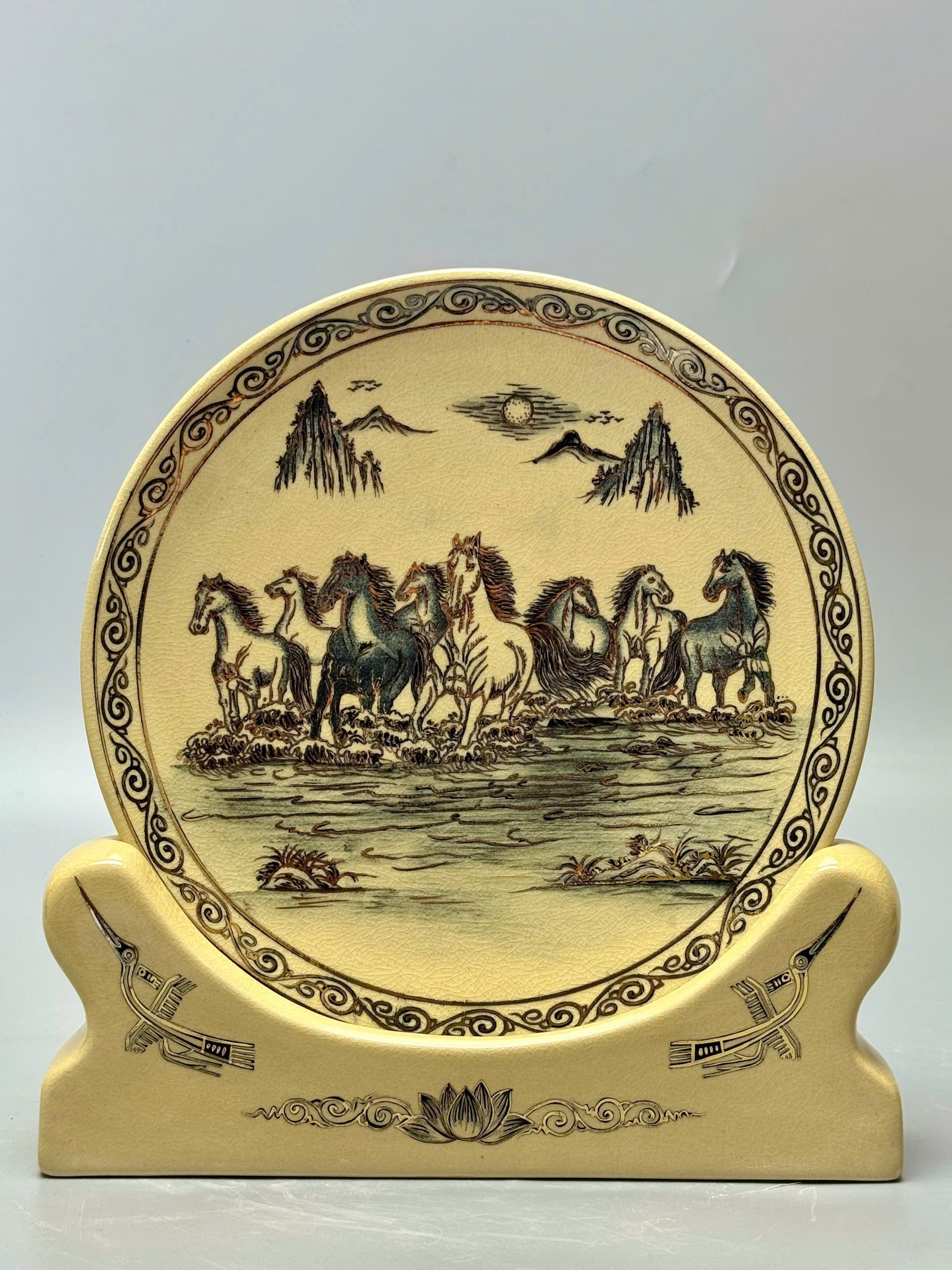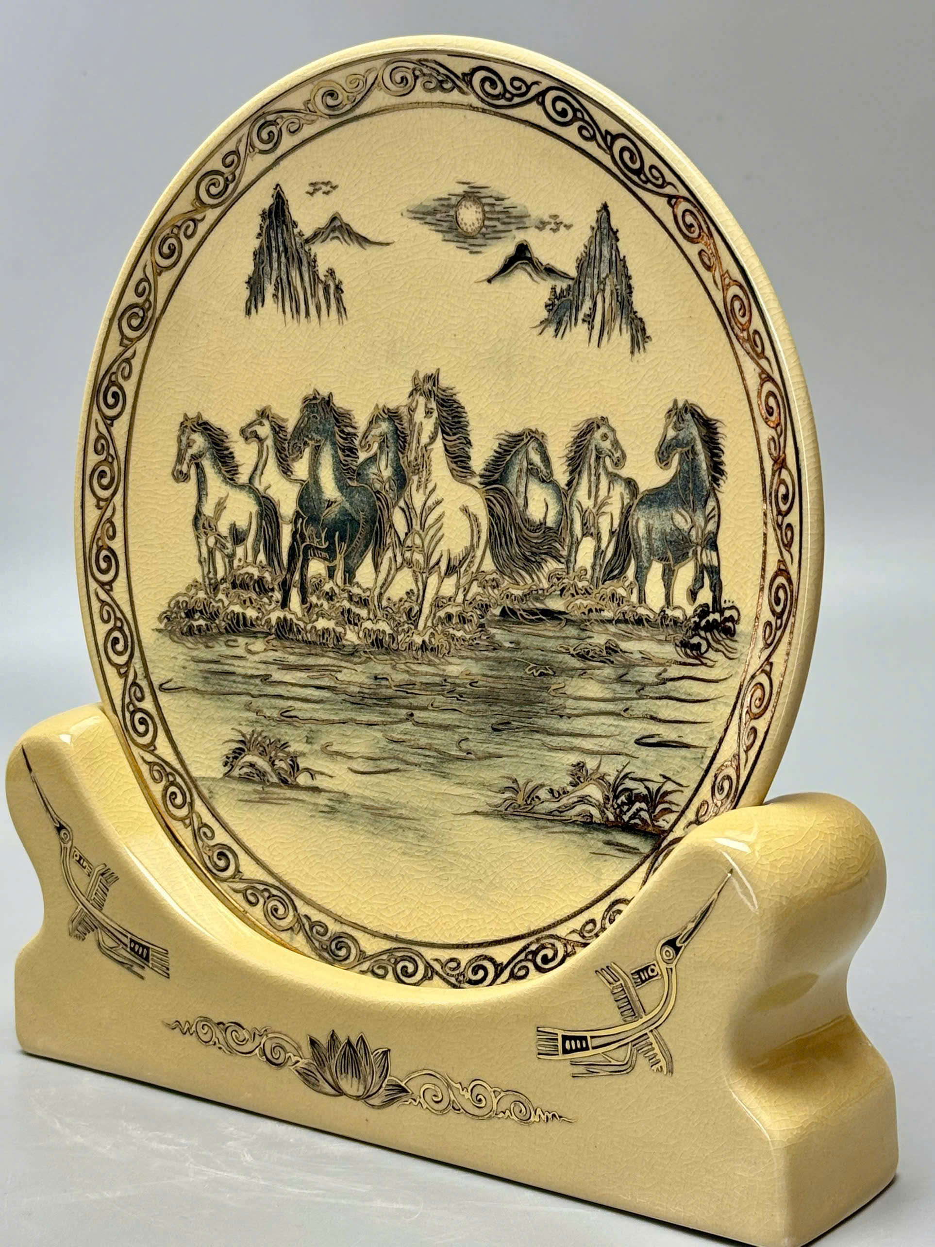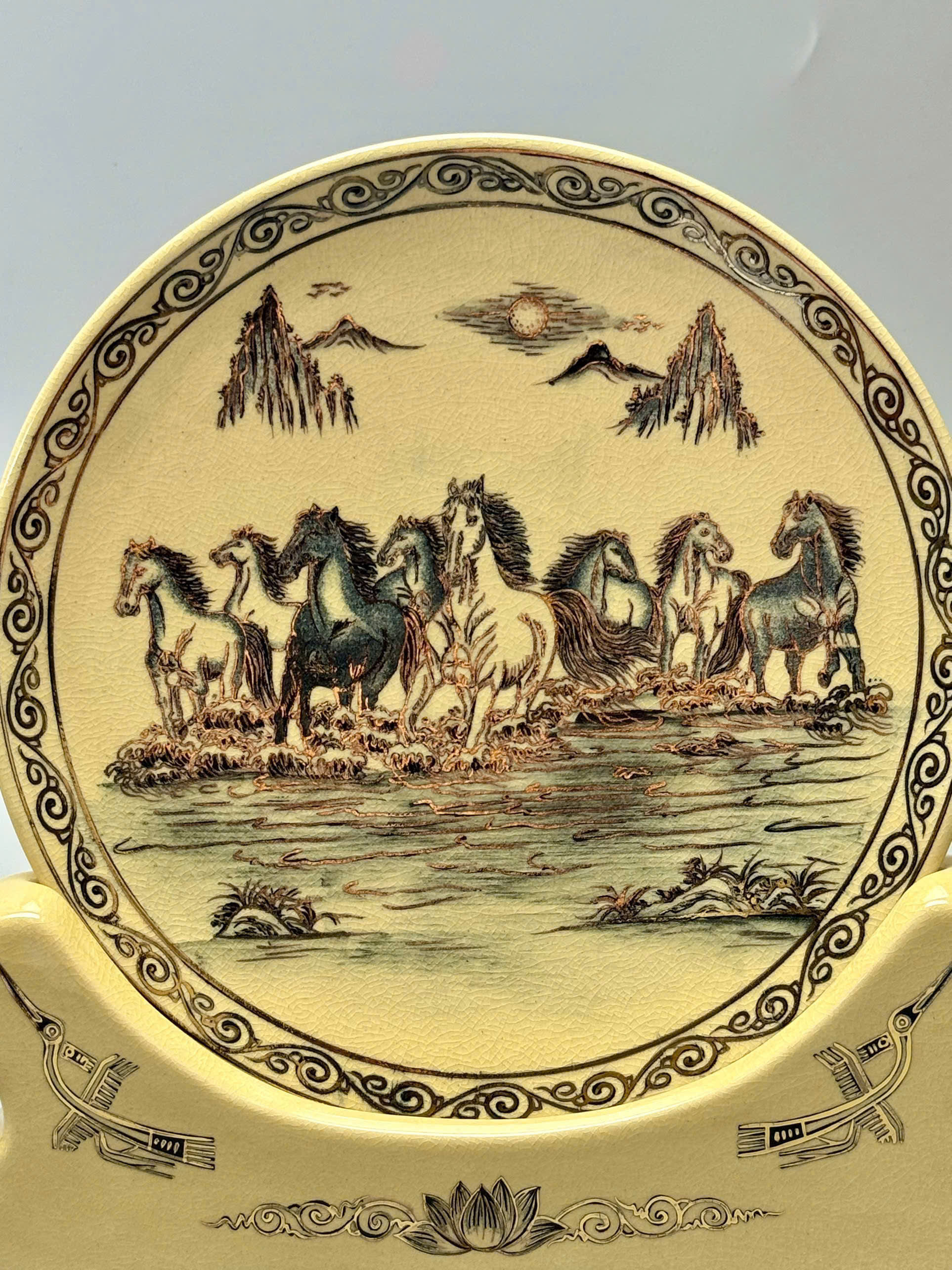 Đĩa cảnh Mã Đáo Thành Công 23cm Vẽ Vàng