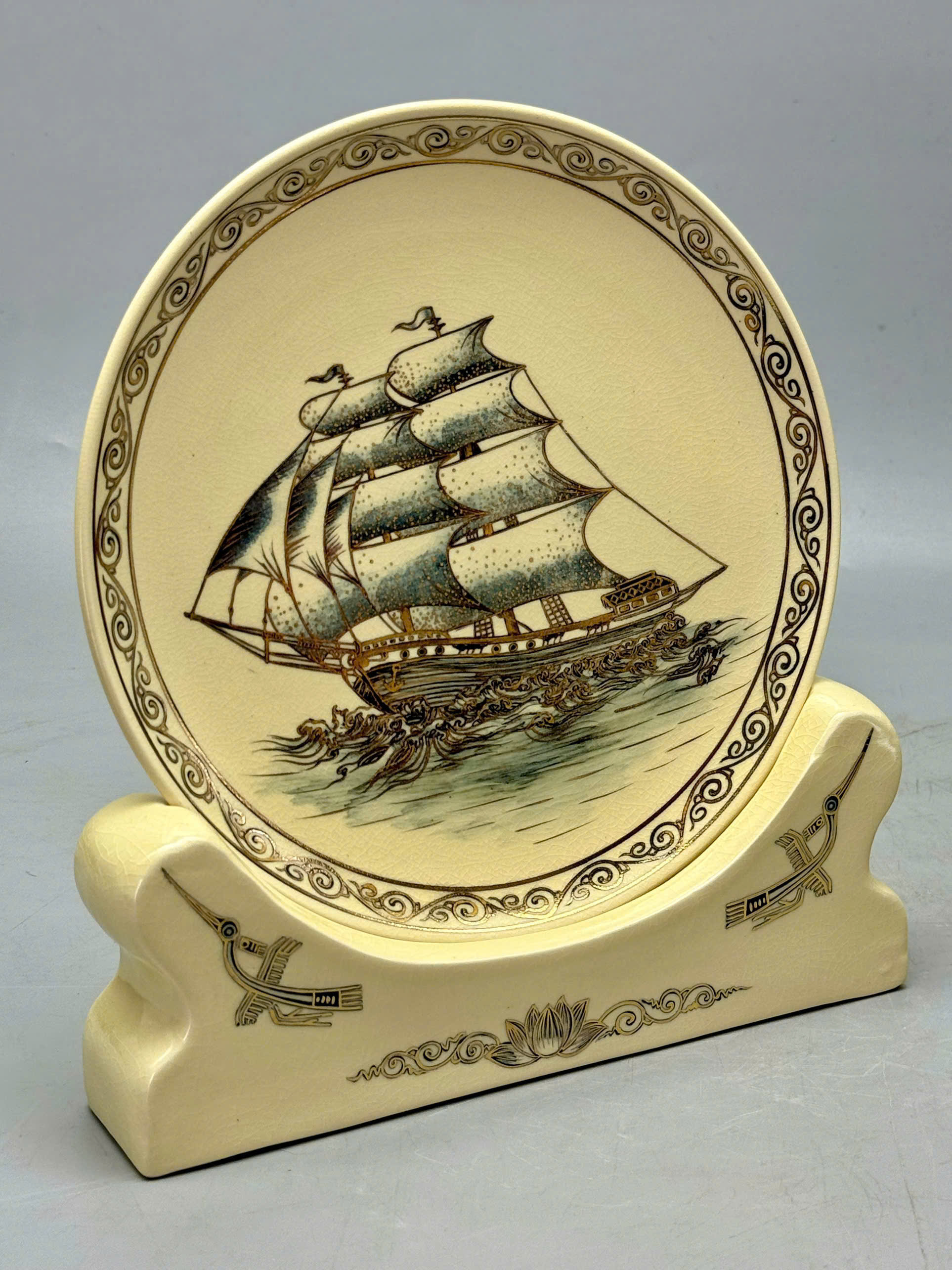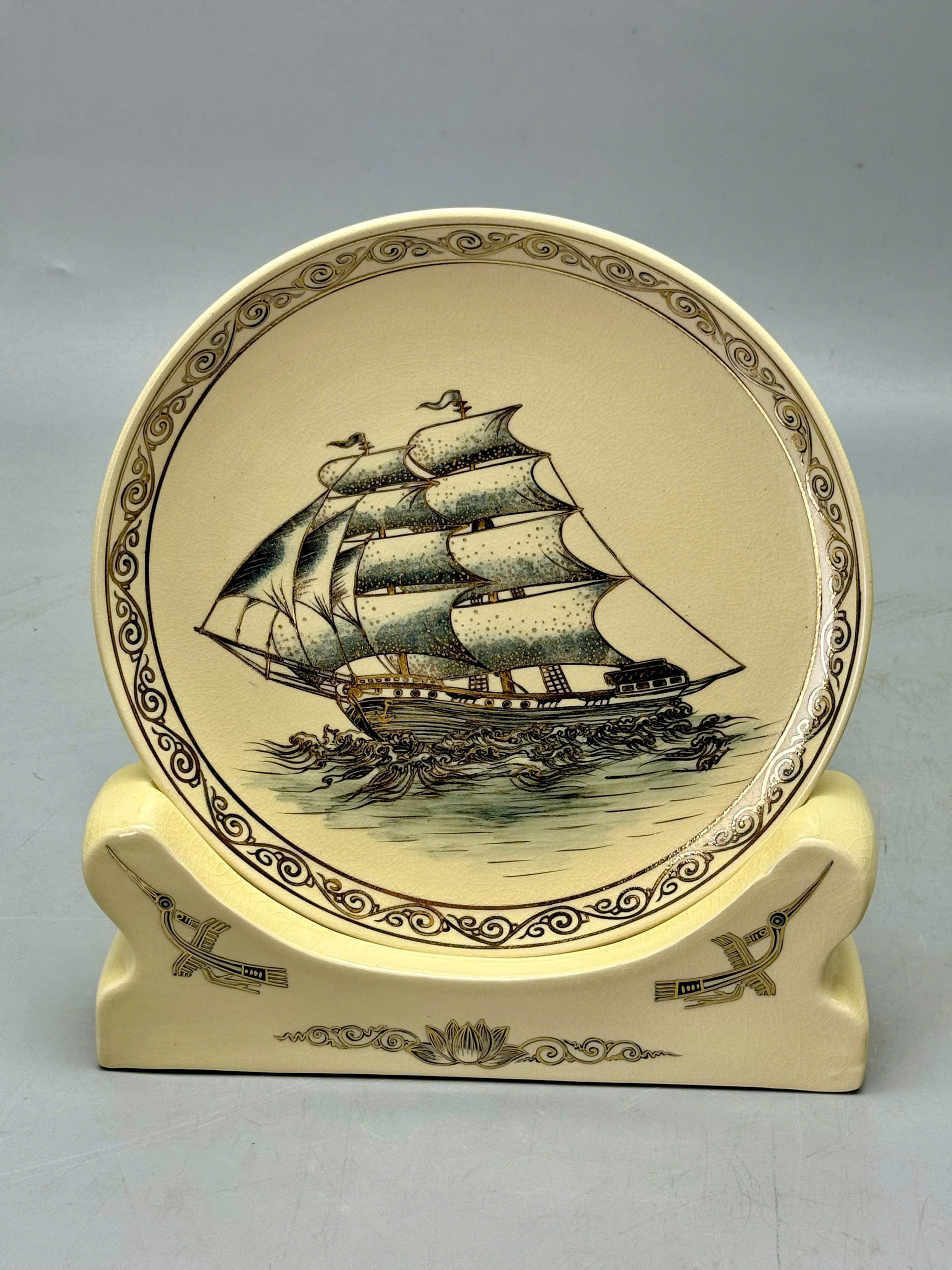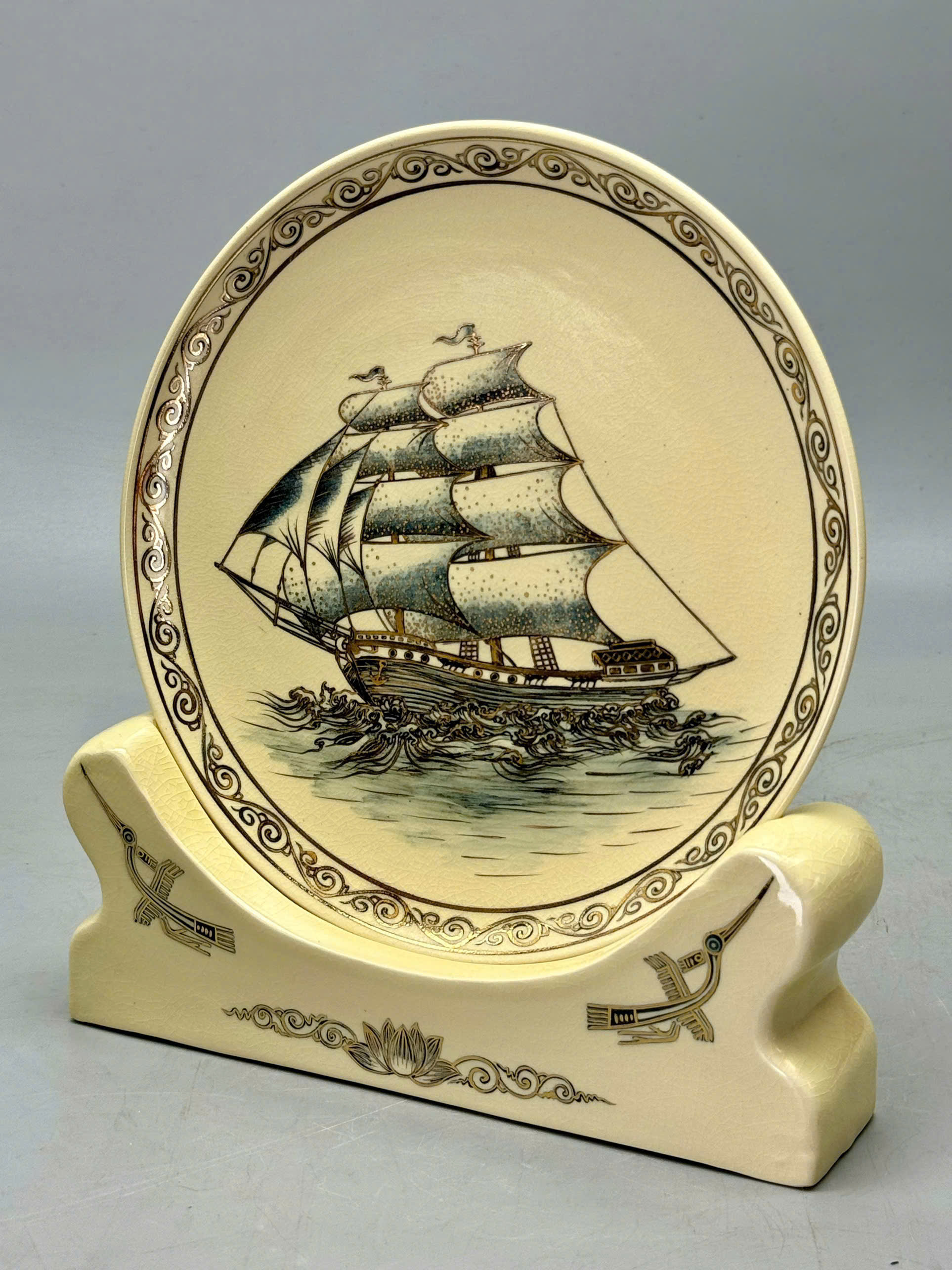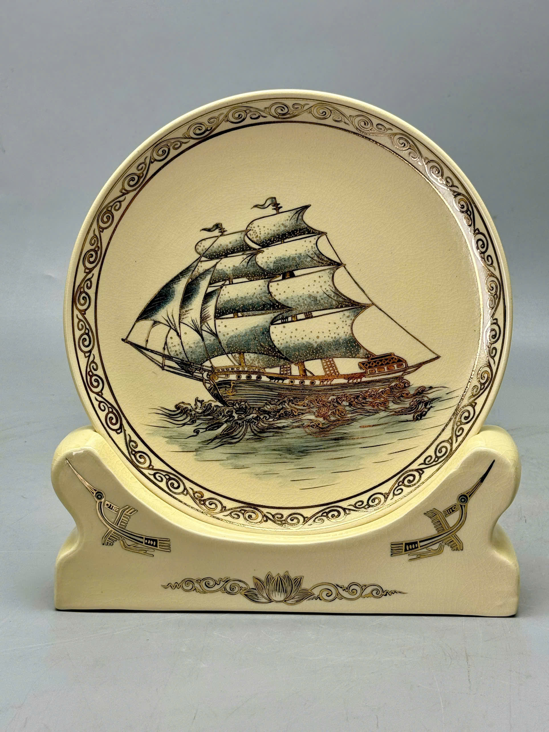 Đĩa Cảnh Thuận Buồm Xuôi Gió 23cm Vẽ Vàng