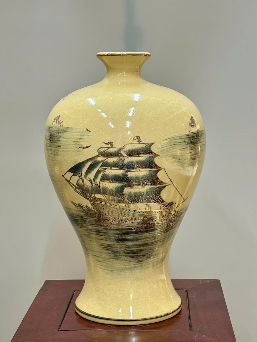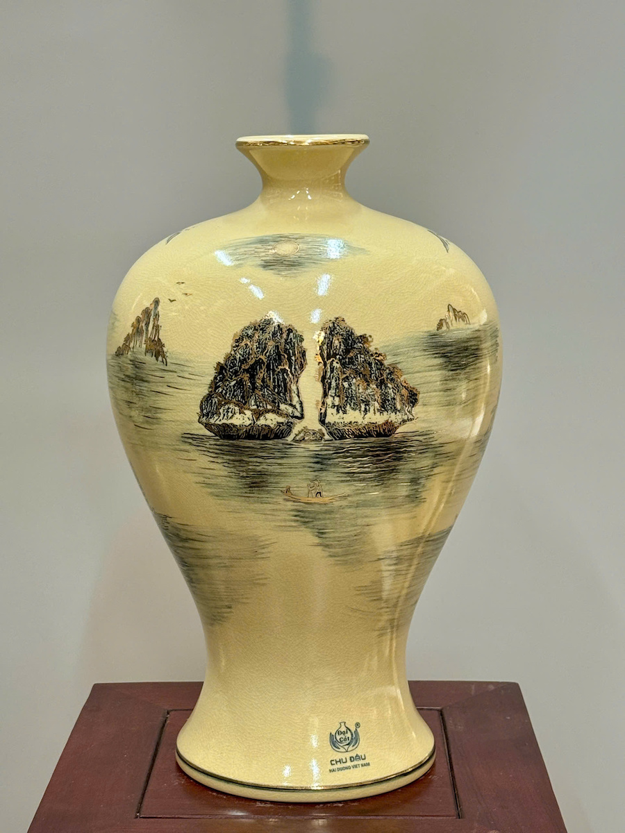 Mai Bình Thuận Buồm Xuôi Gió Cao 38cm Gốm Chu Đậu Vẽ Vàng